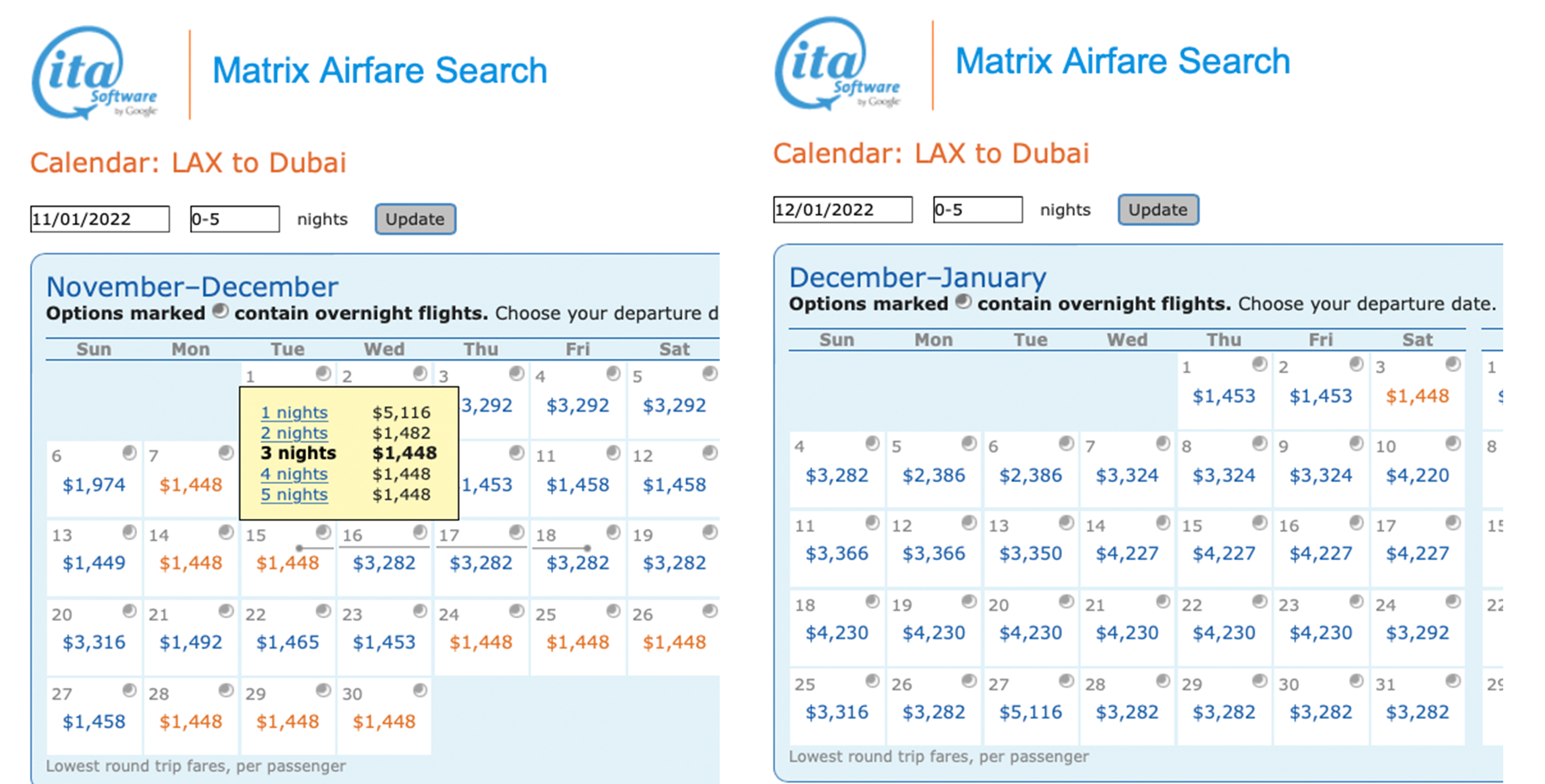 November has the most available dates. There are also options to spend a few days in Dubai and sightsee.