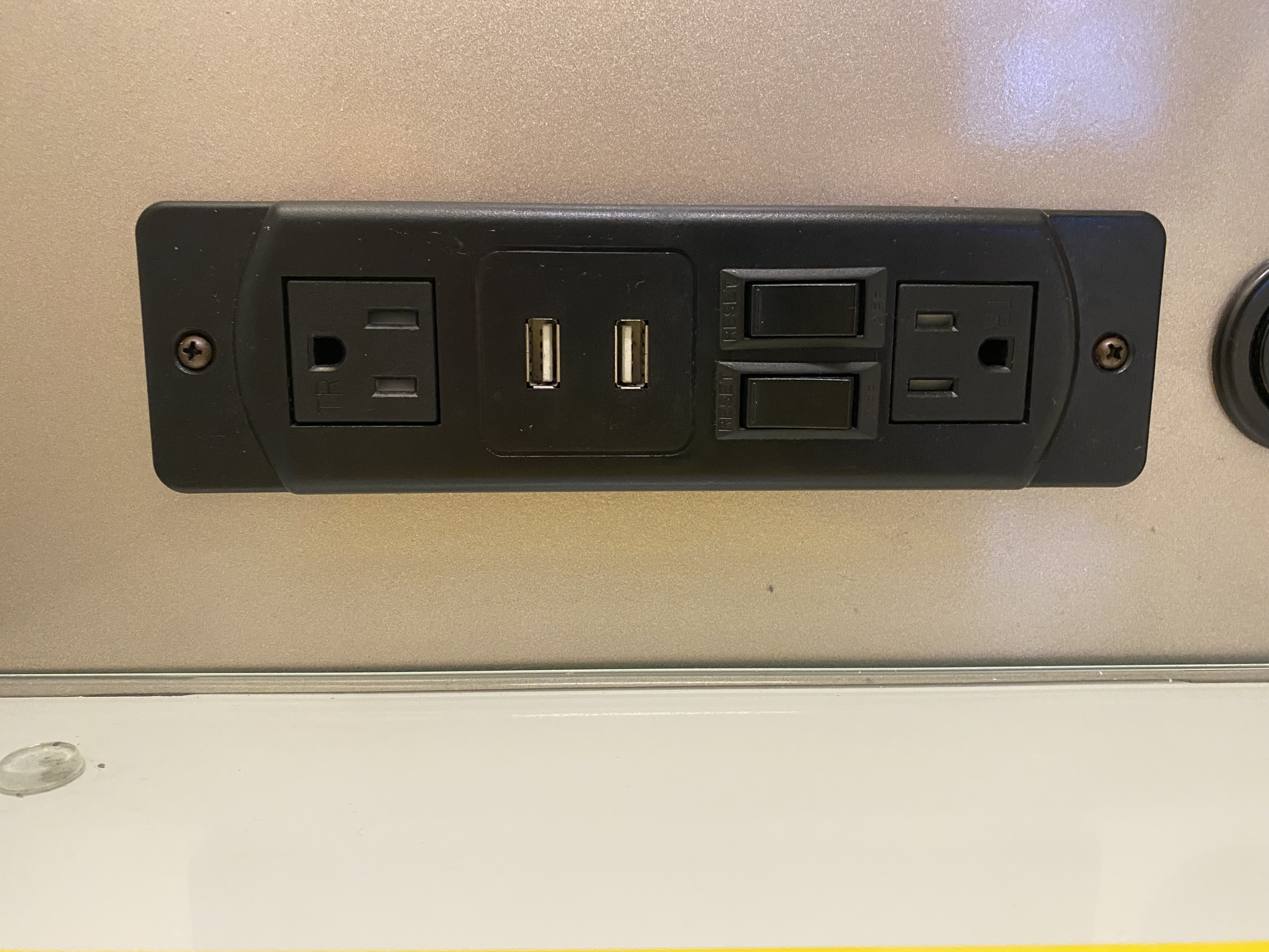 There are electrical outlets and USB ports above the nightstands on both sides of the bed.