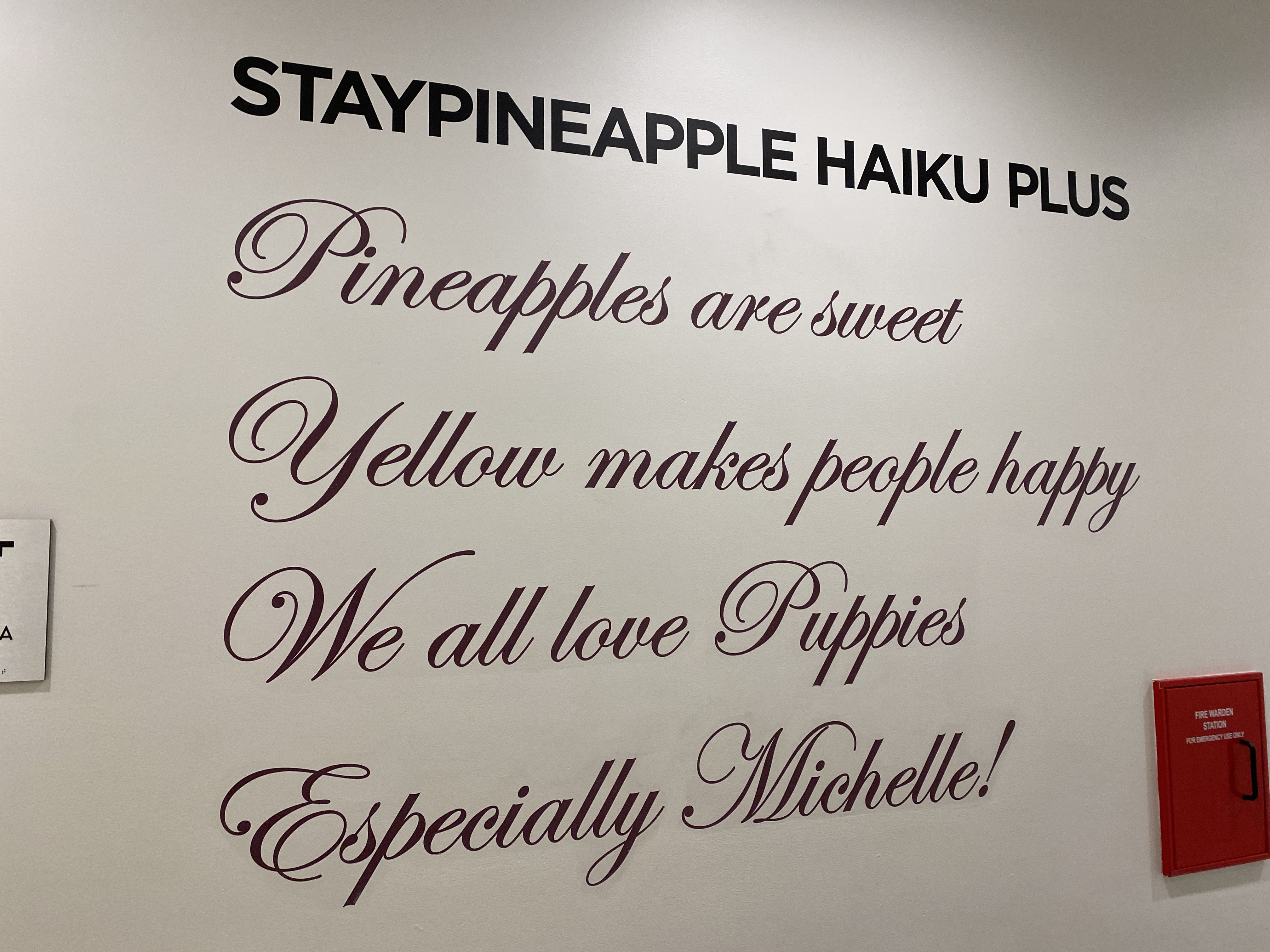 The Staypineapple door was locked. Of course it was. (Though I appreciate the security feature.) I rang a buzzer and it was remotely unlocked.