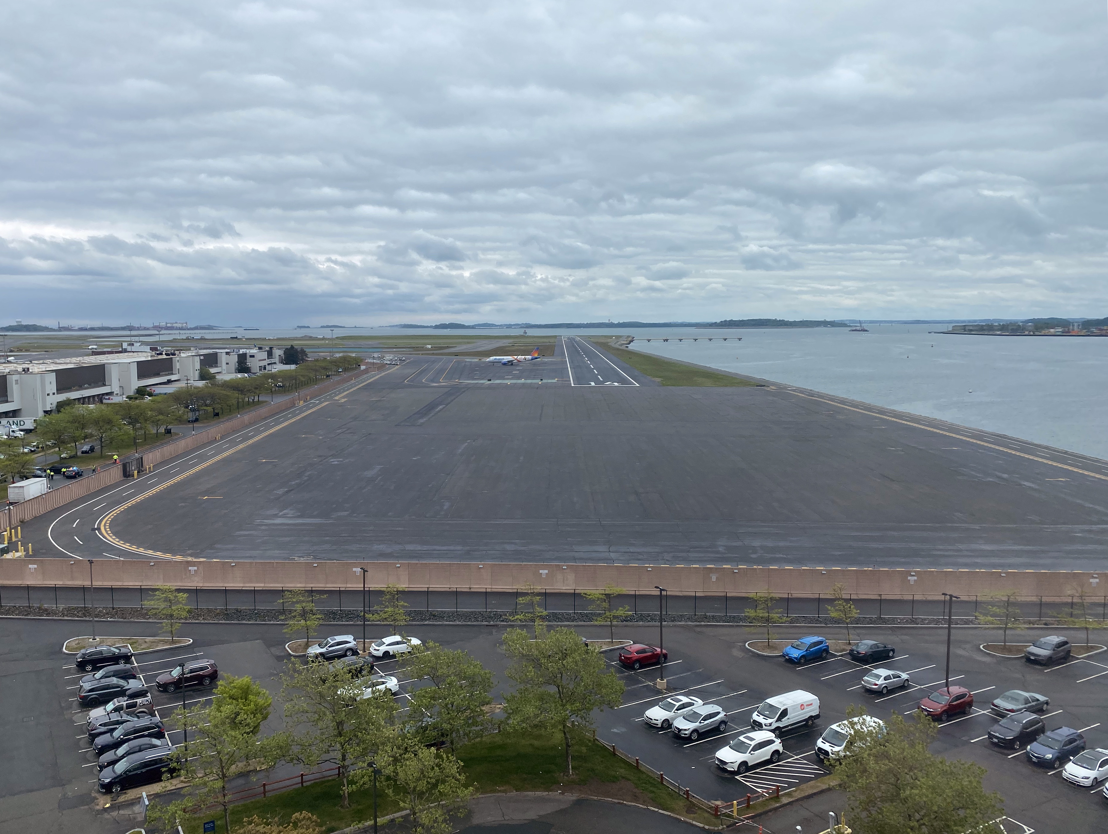 Some of the rooms (and the elevator lobbies) have a view of operations at Logan. Here’s runway 14. (Don’t worry: it can only be used from takeoffs from 14 and landings from the other end, runway 32!)