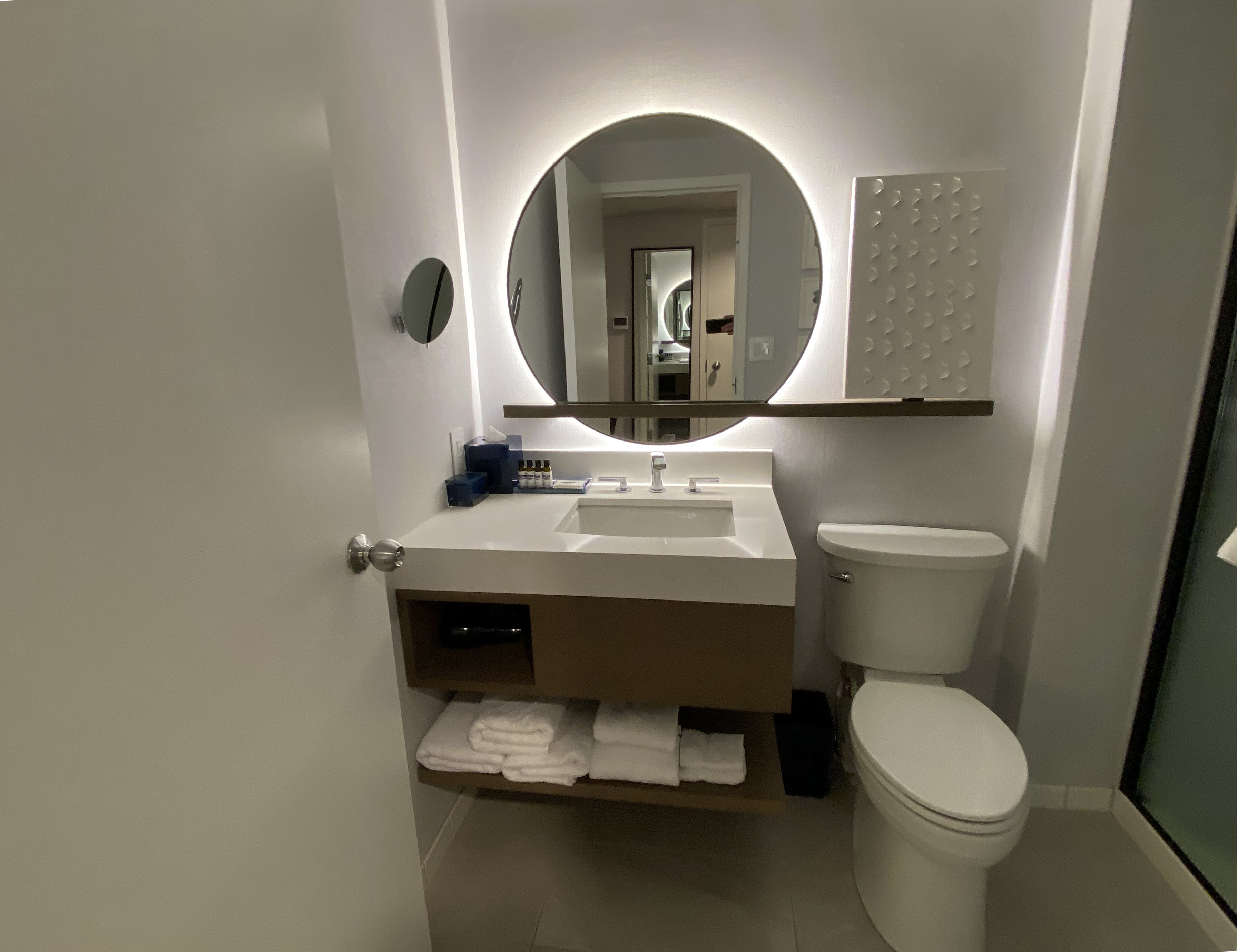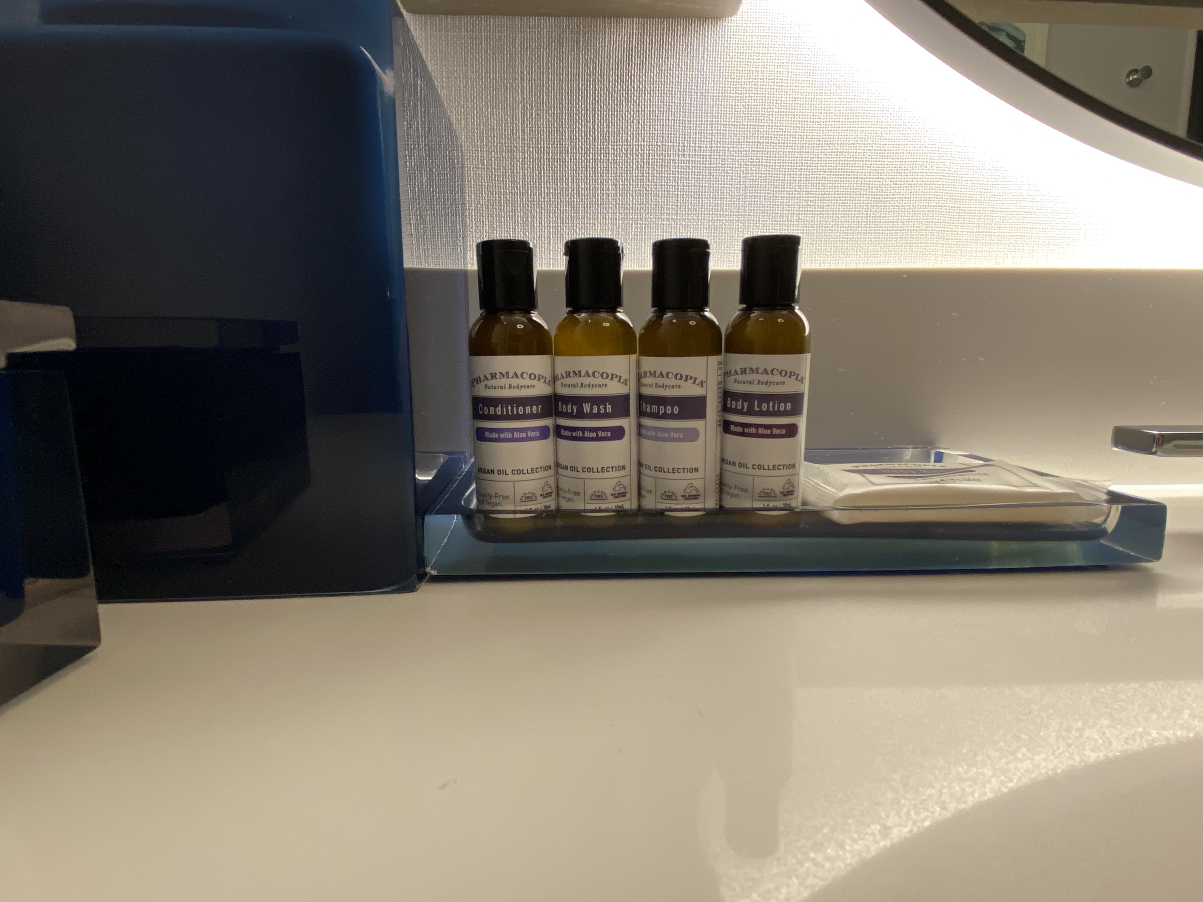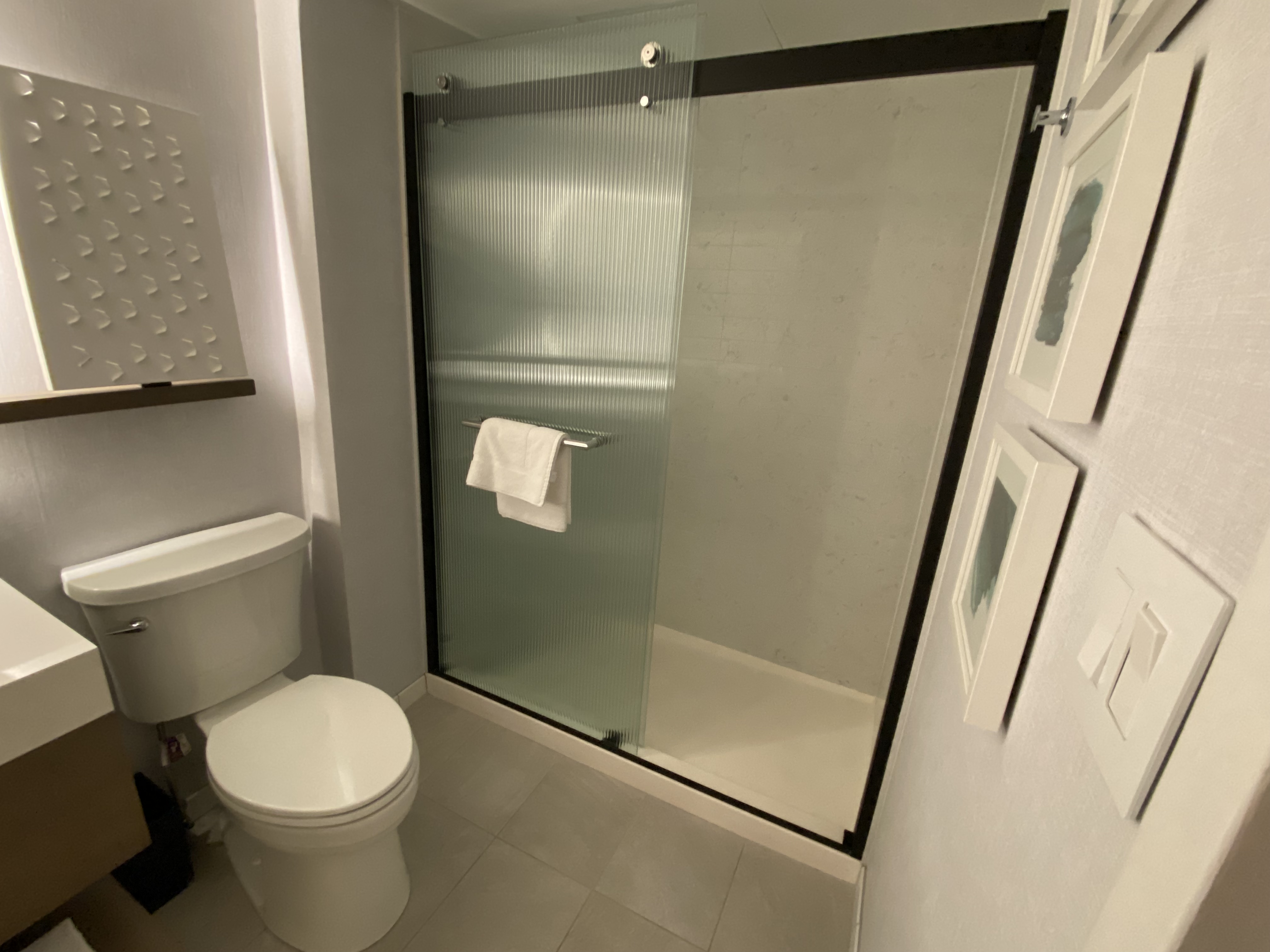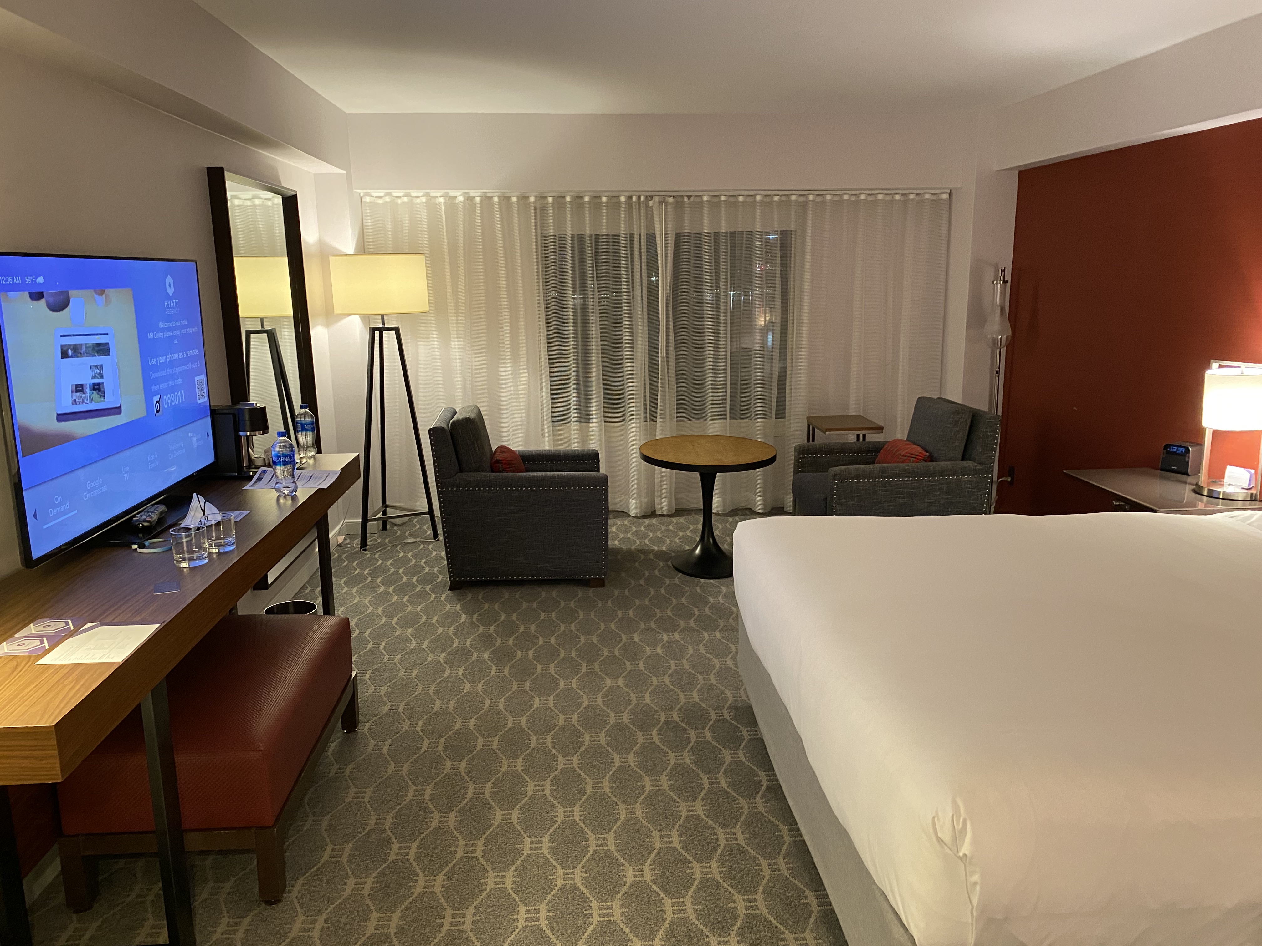 The bathroom was nice. Good water pressure, clean, good towels. Hyatt hasn’t (yet) jumped on the wall-mounted toiletry bandwagon like Marriott and IHG.