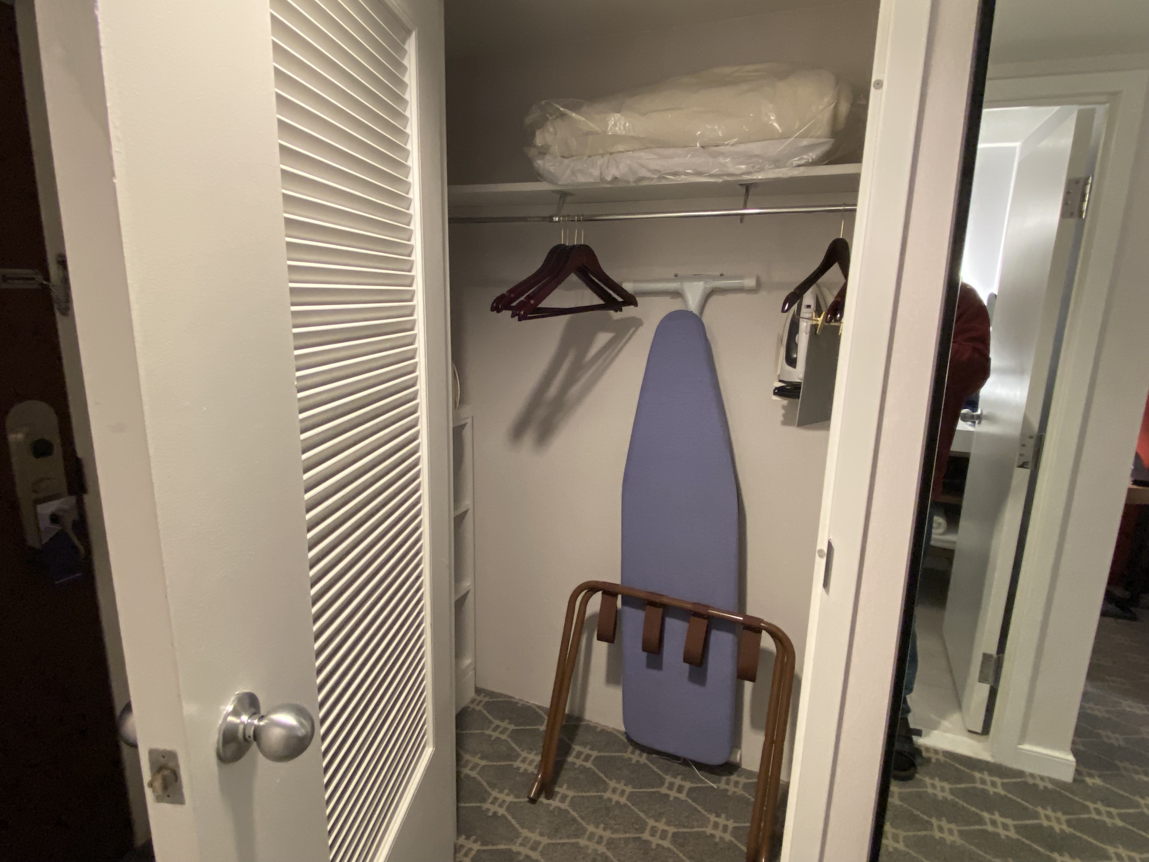 The front desk was polite and welcoming. Behind them was a shelf with four or five mini-bottles of liquor, some beers, and some wines. Why? Well, the hotel bar closes at 11 PM. So, if you need to get a quick fix, the front desk will sell you booze.