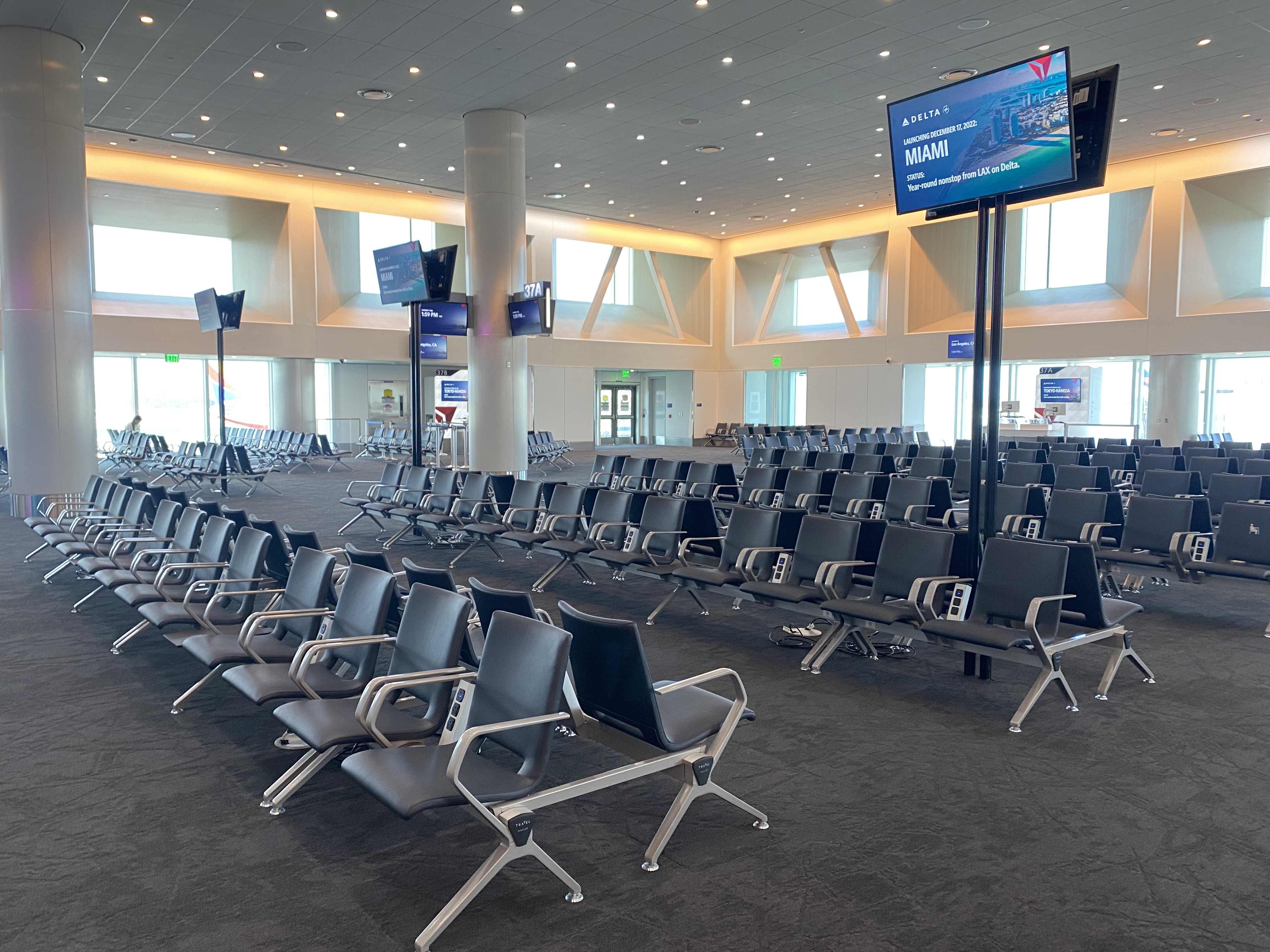 It’s very different from the old Terminal 3. (Here’s a reminder, if you dare.) I found the area somewhat similar to the new LaGuardia gates. Lots of natural light and a decent amount of space. I told some Delta’s corporate staff this could be the first holiday season I actually look forward to flying out of LAX.