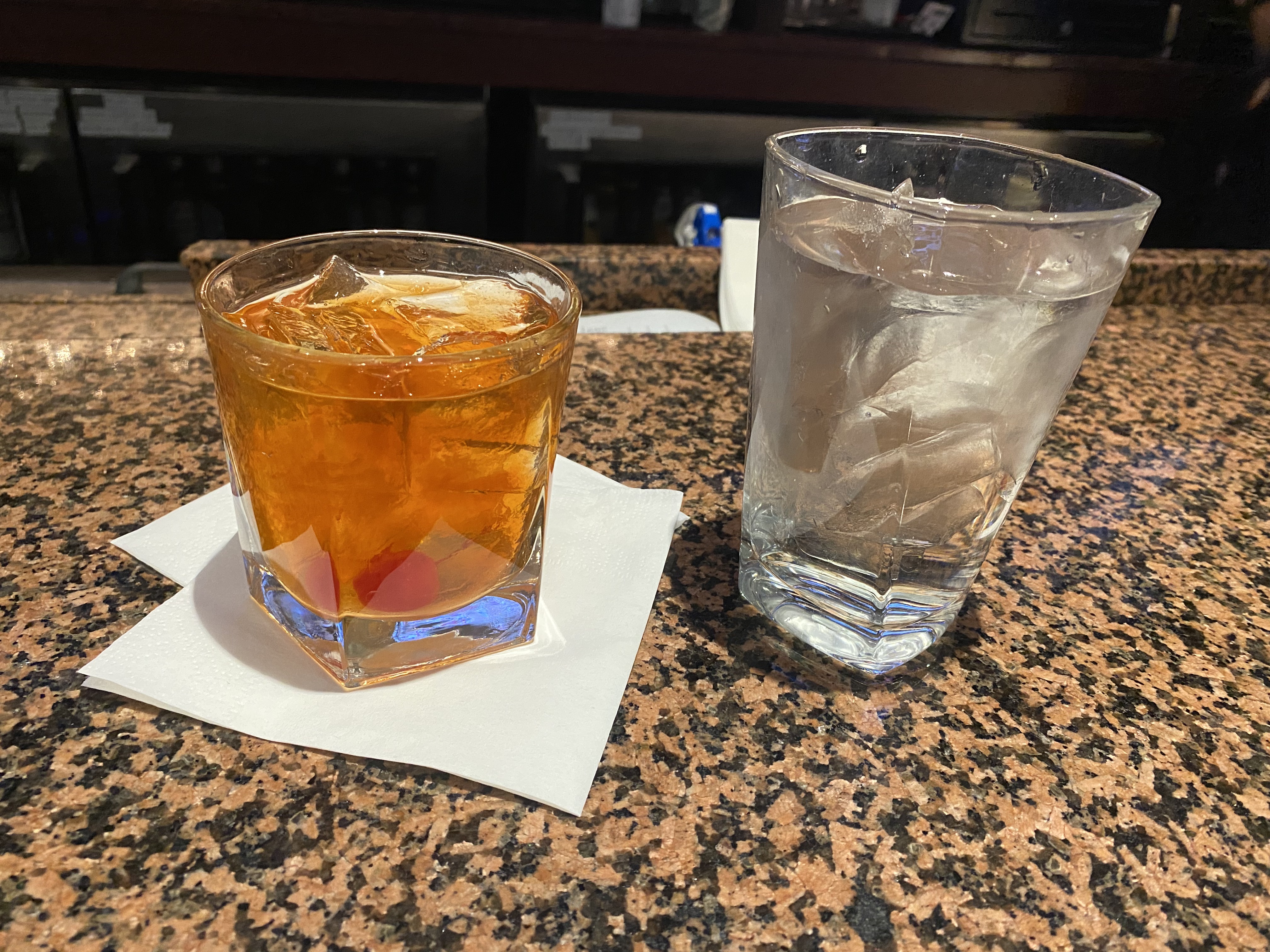 I think the bartender overdid it with the sugar or simple syrup and bitters ratio. (I later learned their well bourbon is Jim Beam — I should’ve ordered it with Maker’s Mark.)