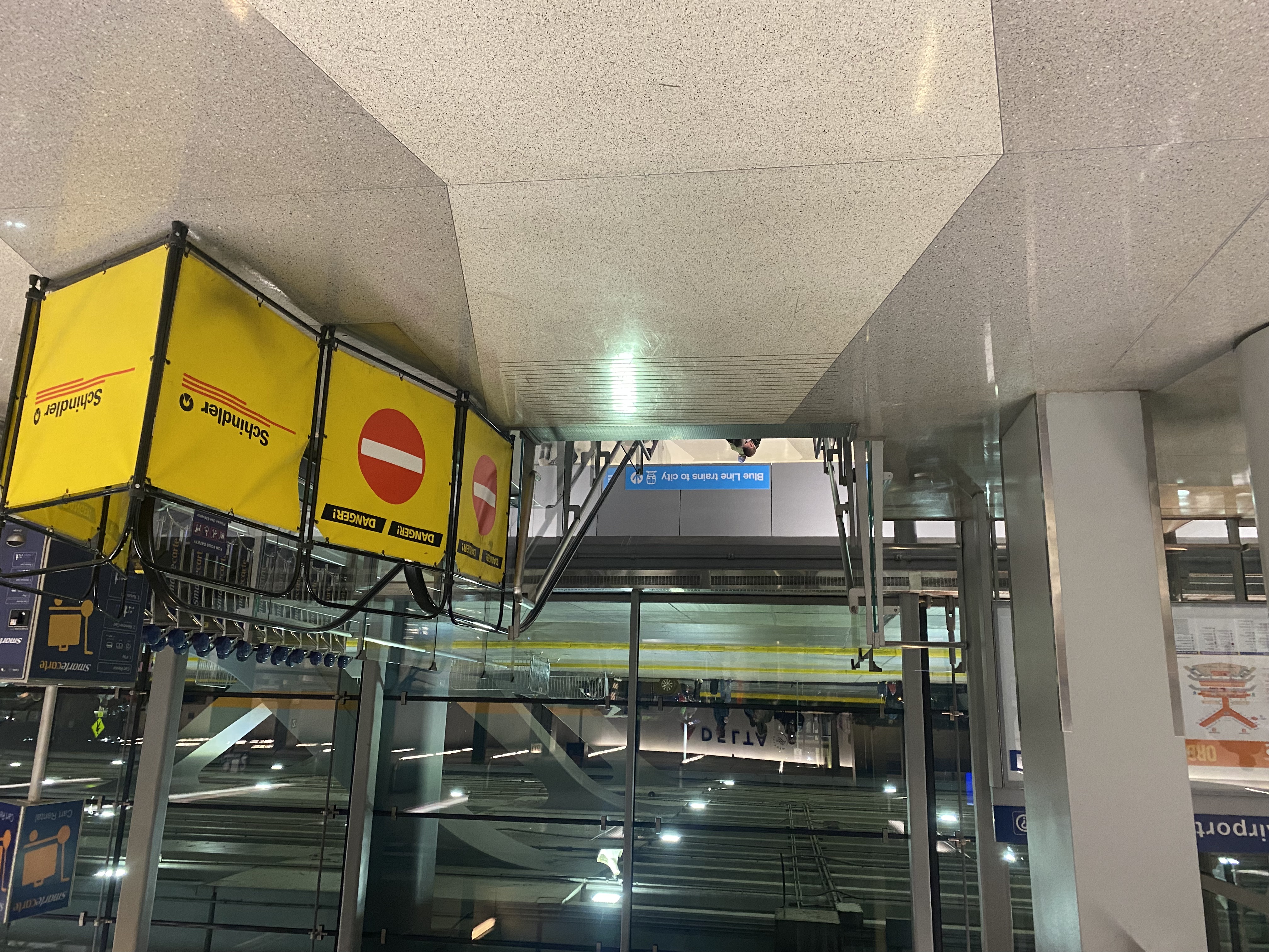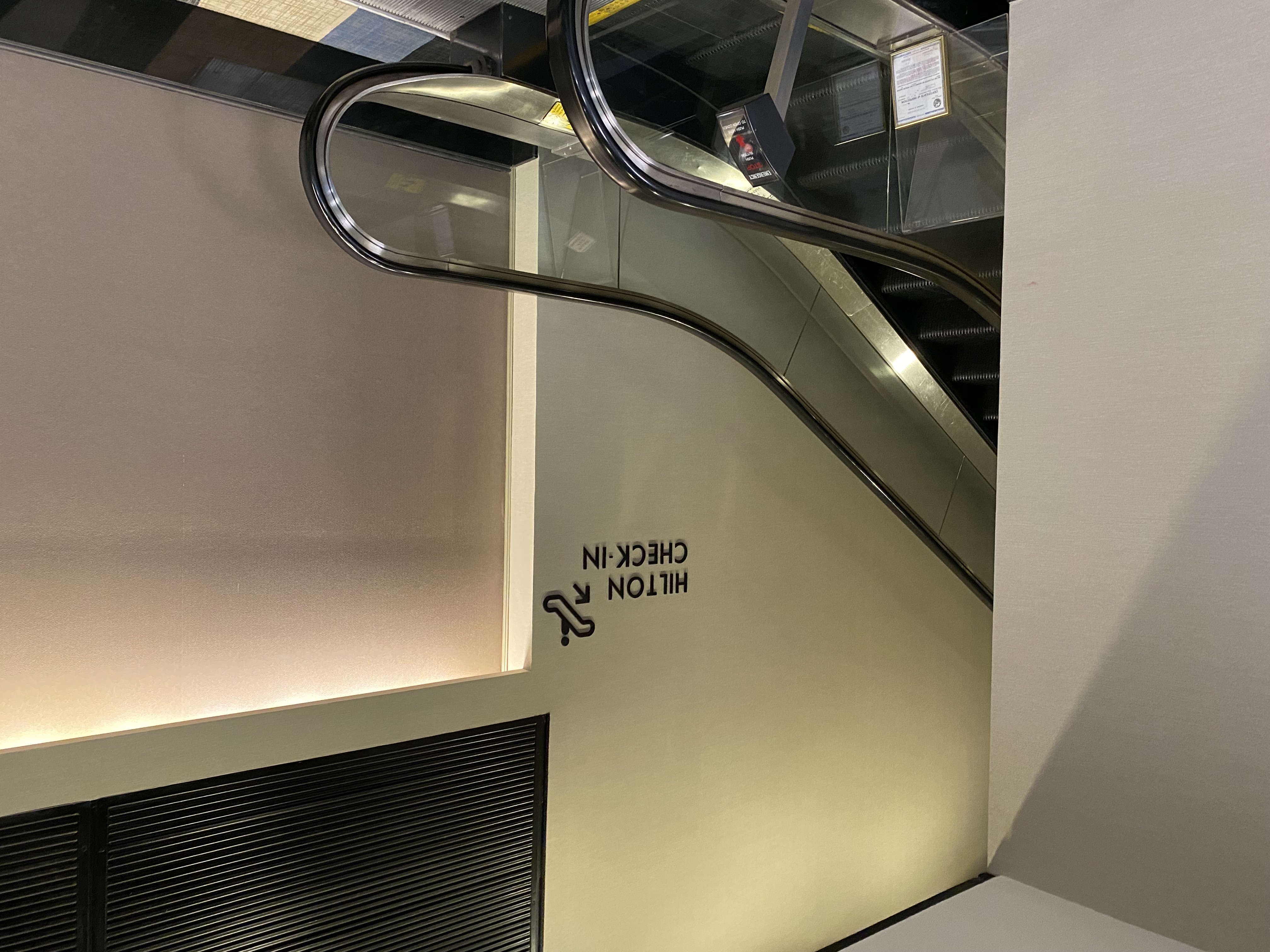 Once you reach the Hilton “connector” you have a couple of multiple options to reach the lobby: an elevator or escalator.