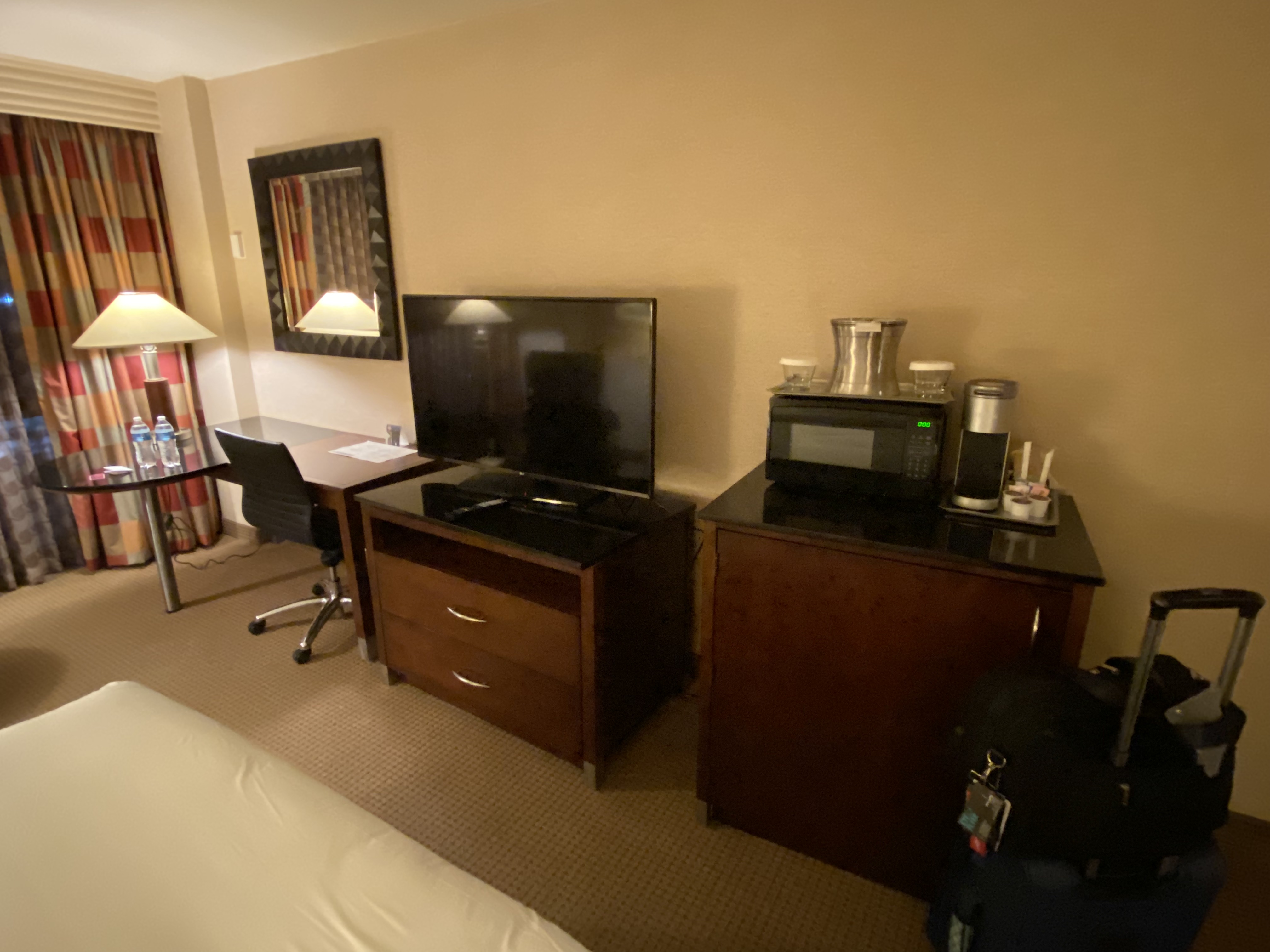 Checking in was a breeze. The gentleman at the front desk confirmed my upgrade was, indeed, a runway view room. (Yay!) He also offered me a couple of bottles of water.