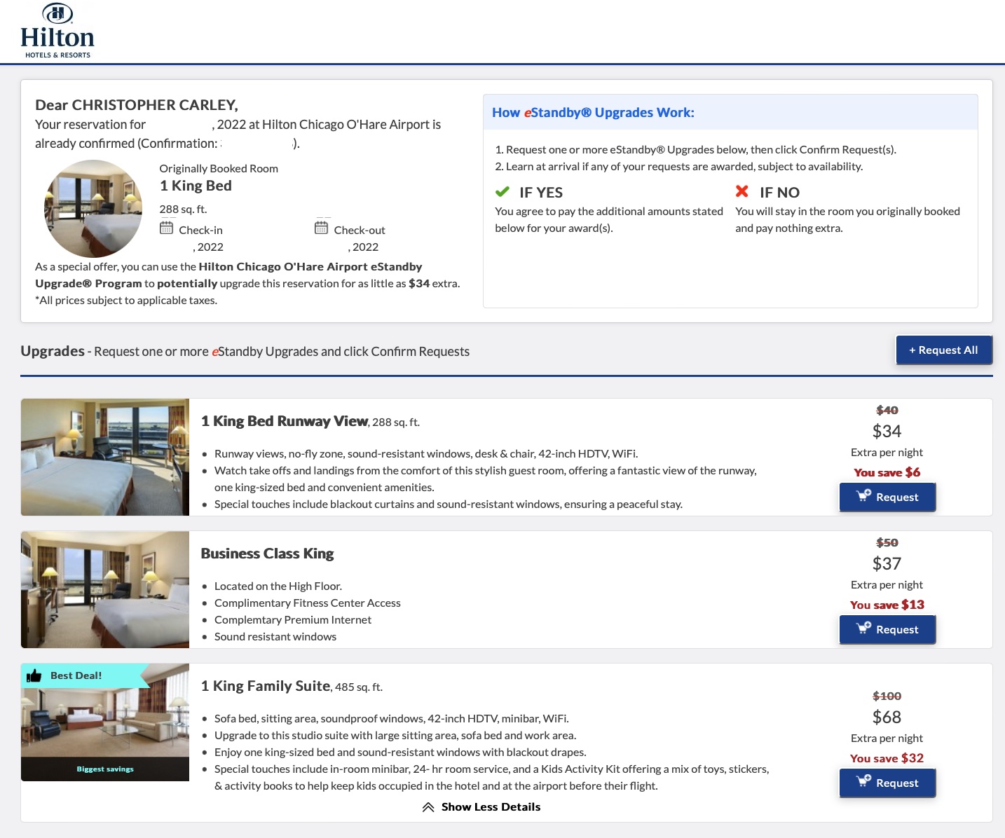 I received several upgrade offers shortly after completing my reservation.
