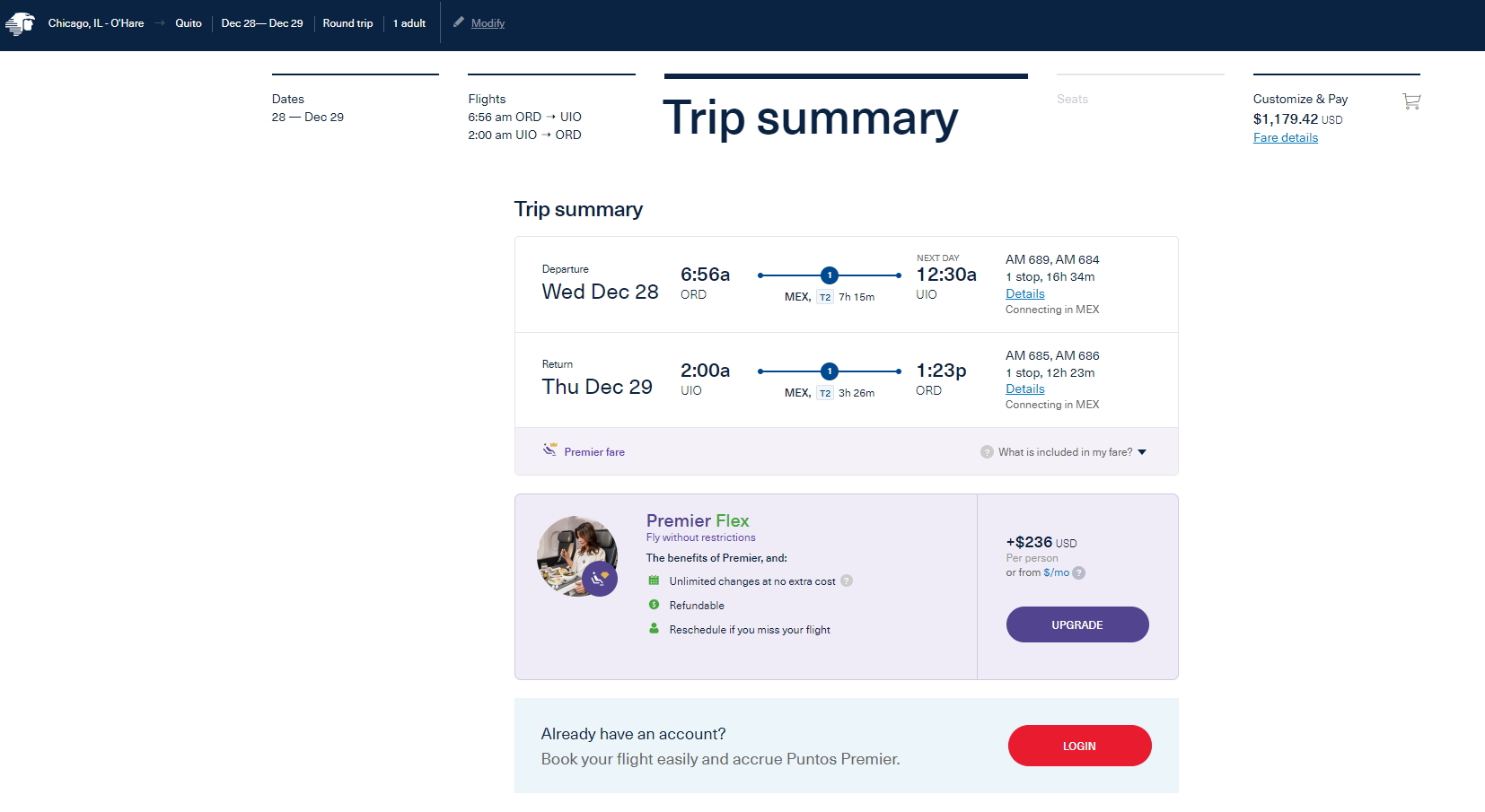 This one is bookable directly on AreoMexico’s website. Before we have questions, the time in UIO is more than plenty to clear immigration and get back to the gate for the flight home (I have done this run in the past fyi). It is a true “I” fare (as you can see from ITA Matrix fare rules) so there should be no issues on “Y-Up or UP Fares” messing things up.