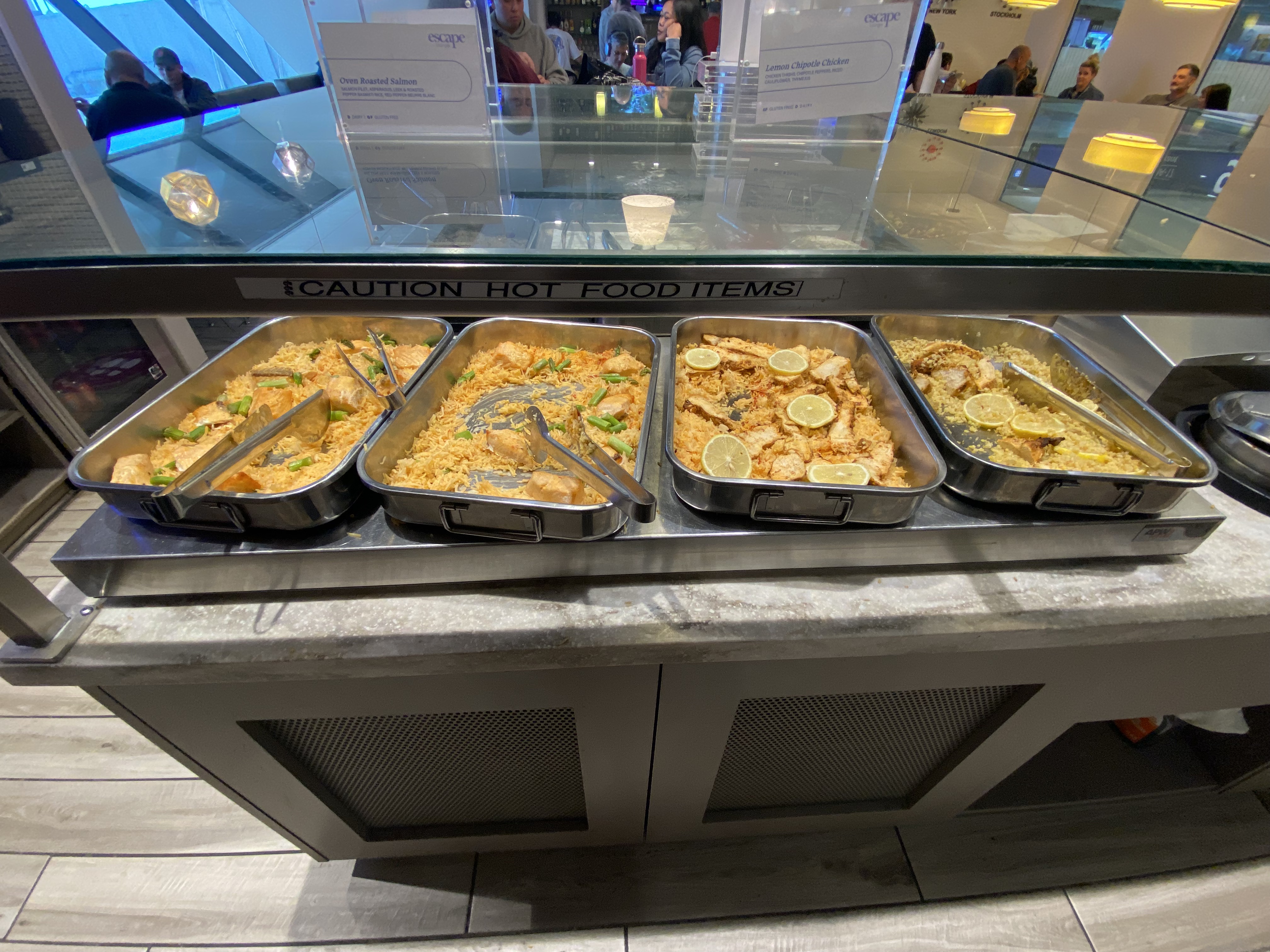 Salmon filets and rice were offered on the buffet. They feature a bit of a kick but nothing this bland enthusiast couldn’t handle.