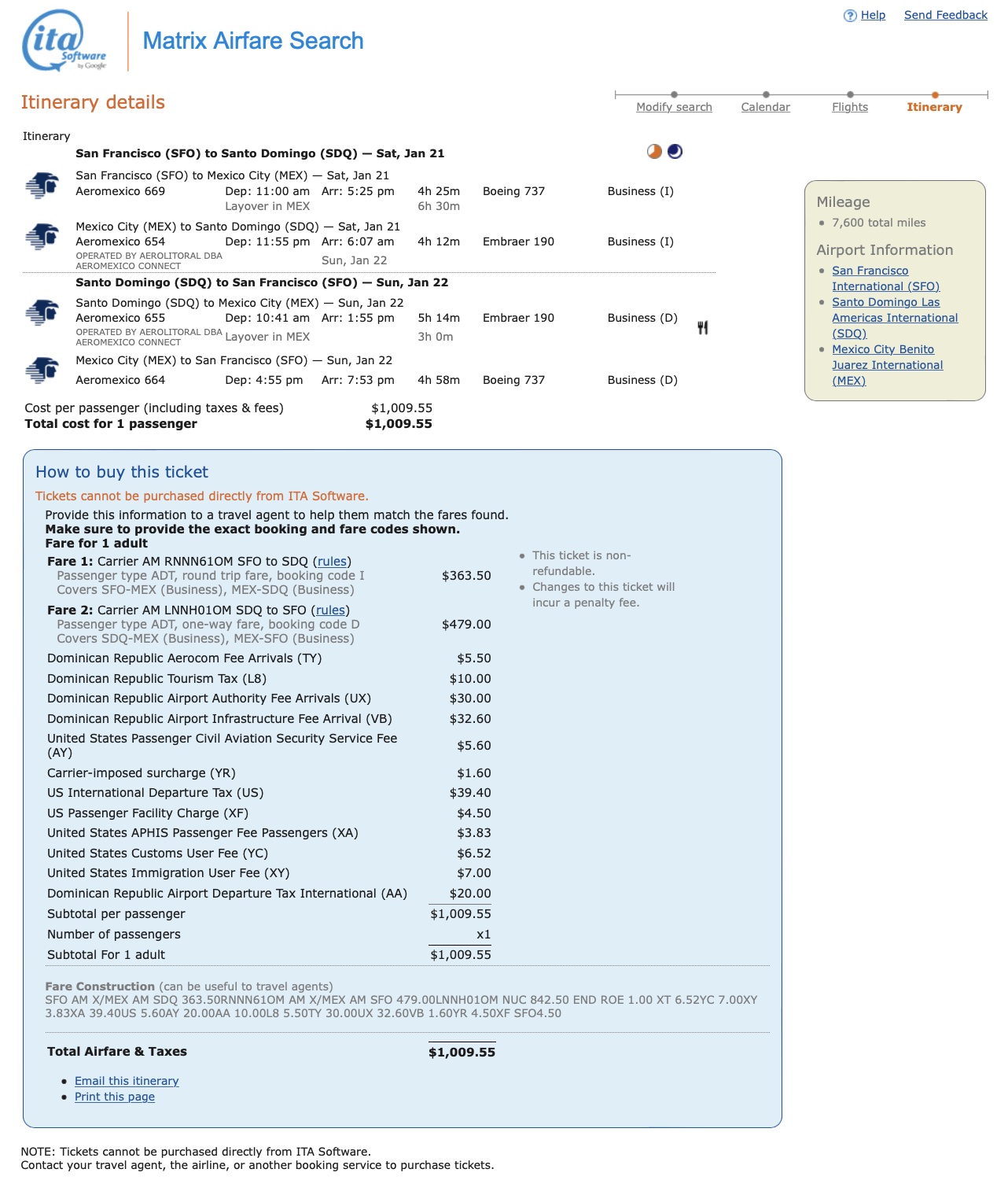 But if you don’t have that kind of time, check out this run for $1,010. The general routing is SFO-MEX-SDQ-MEX-SFO.