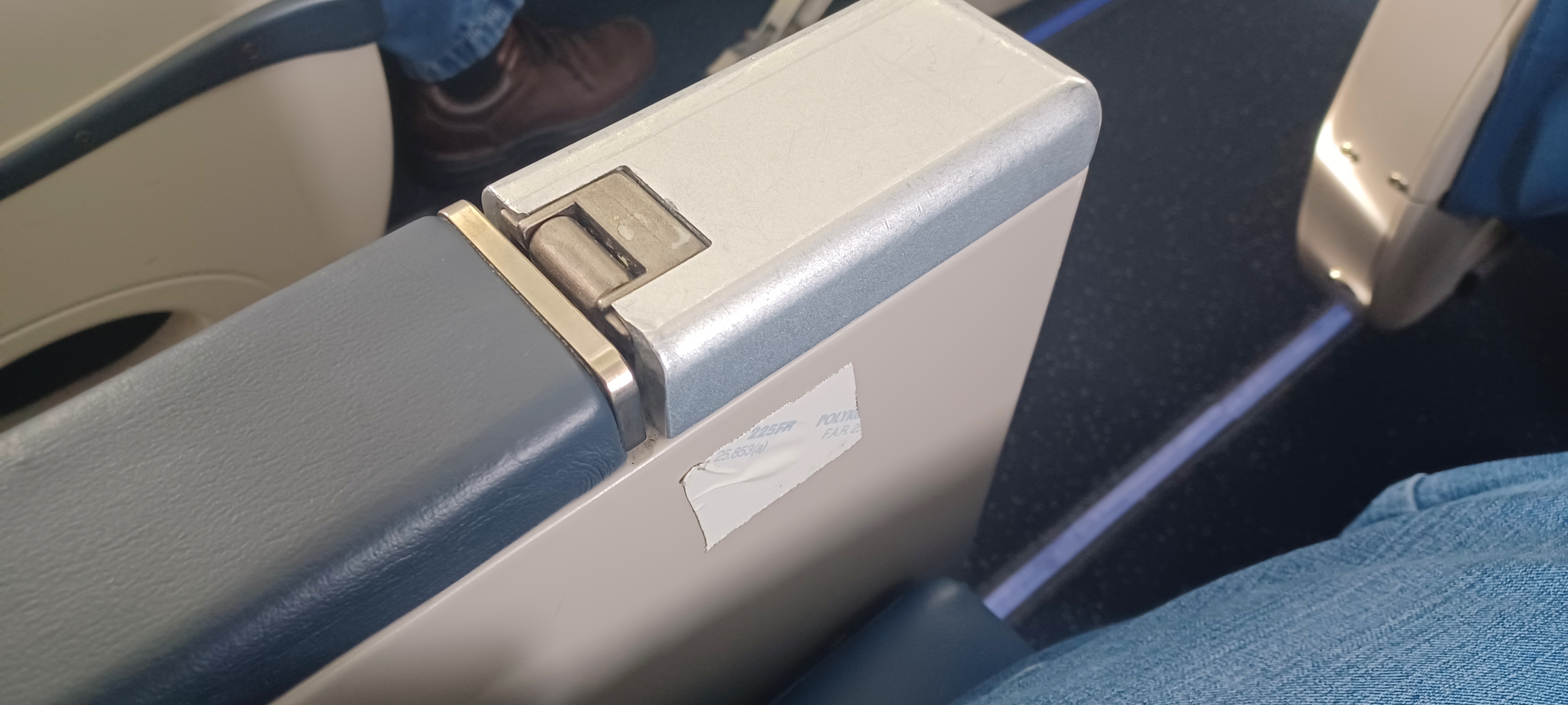This was my recline button on my flight home to South Bend from Atlanta earlier this week. Yeah, even these better than CRJ200 jets are showing their age.