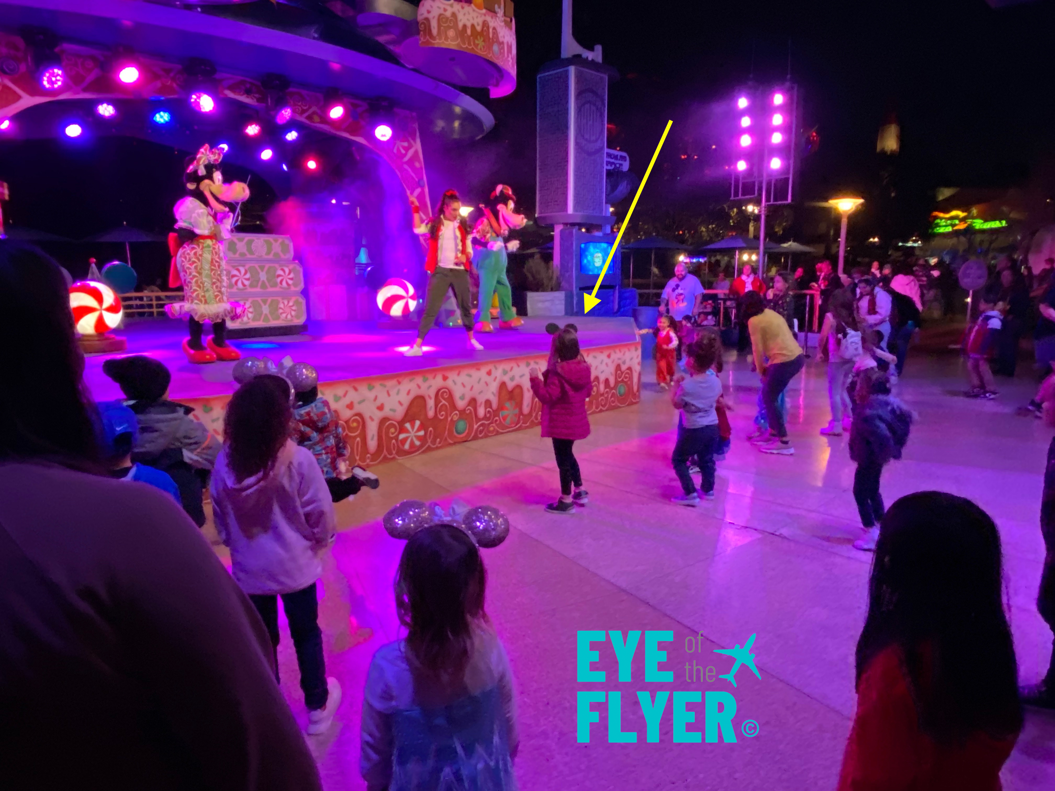 We headed to Tomorrowland. My wife and sister-in-law ordered dinner while my daughter found a dance party. She loves dancing!