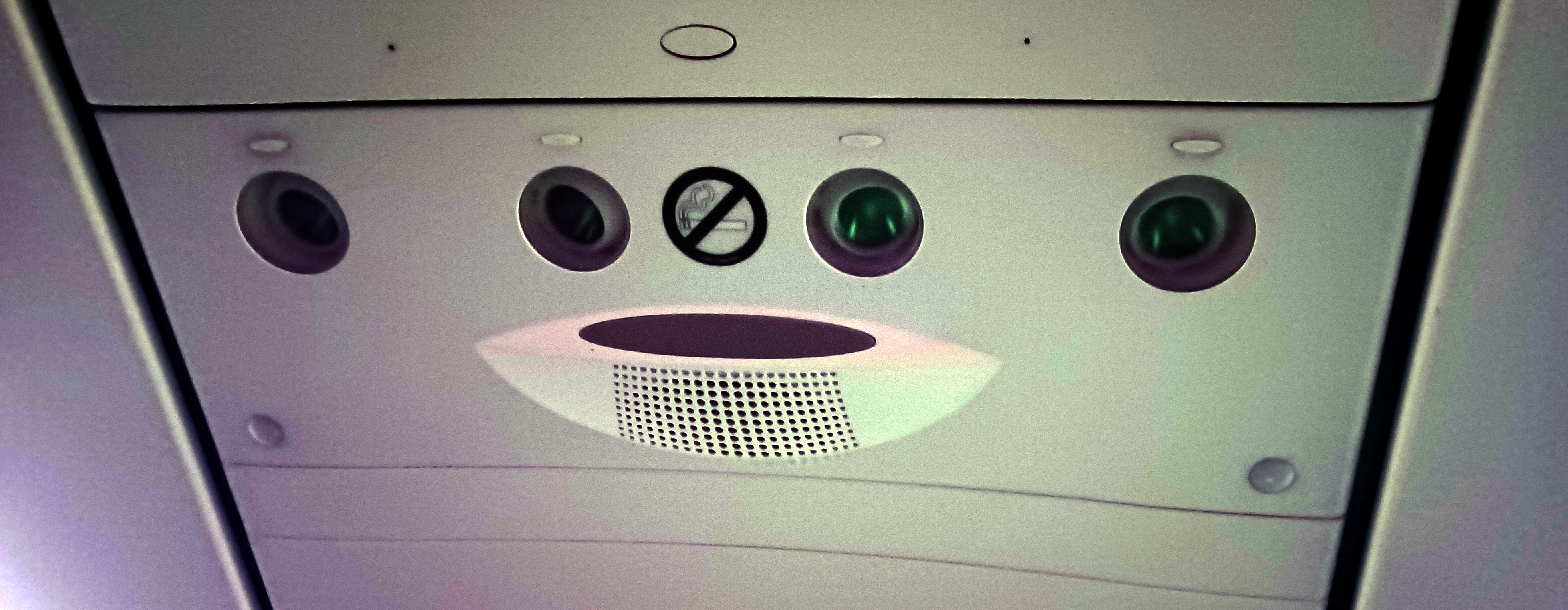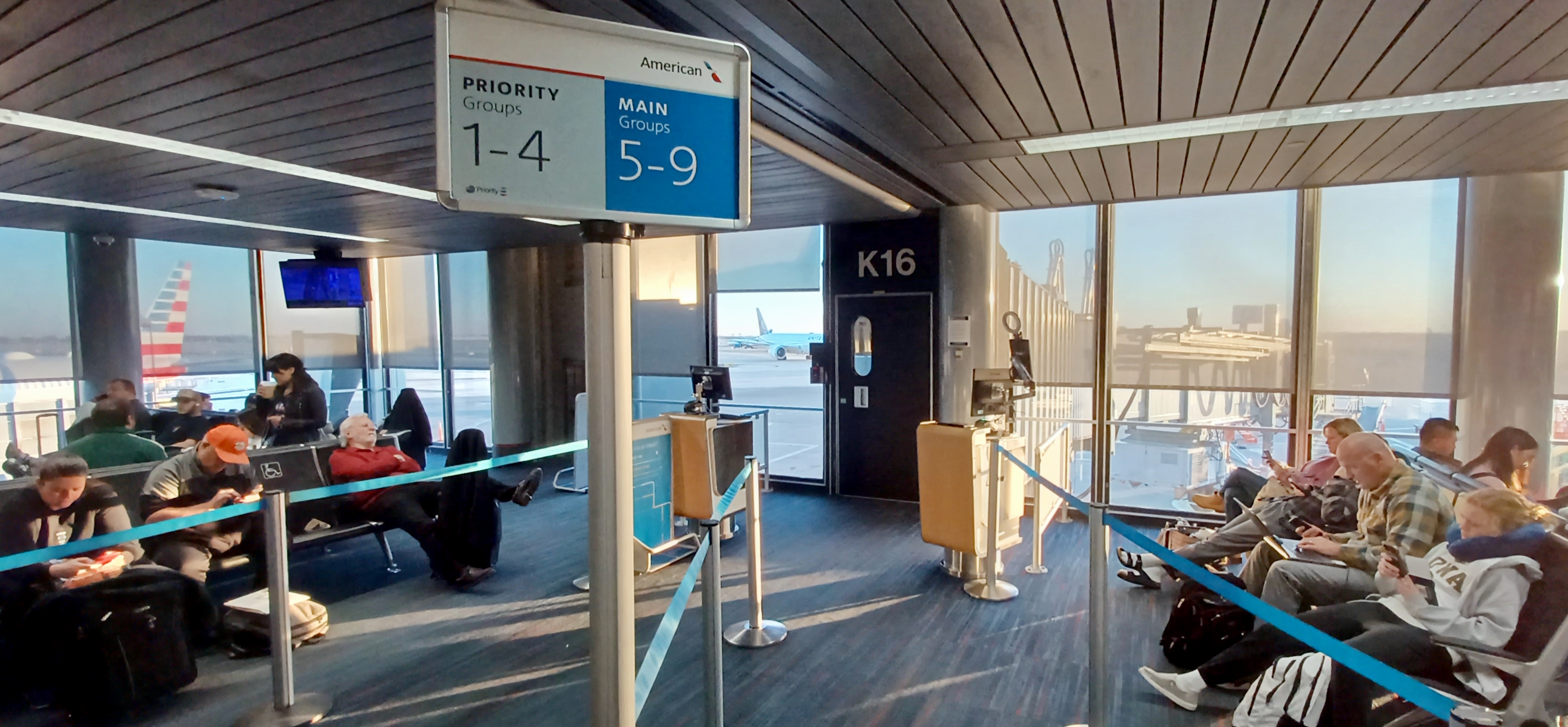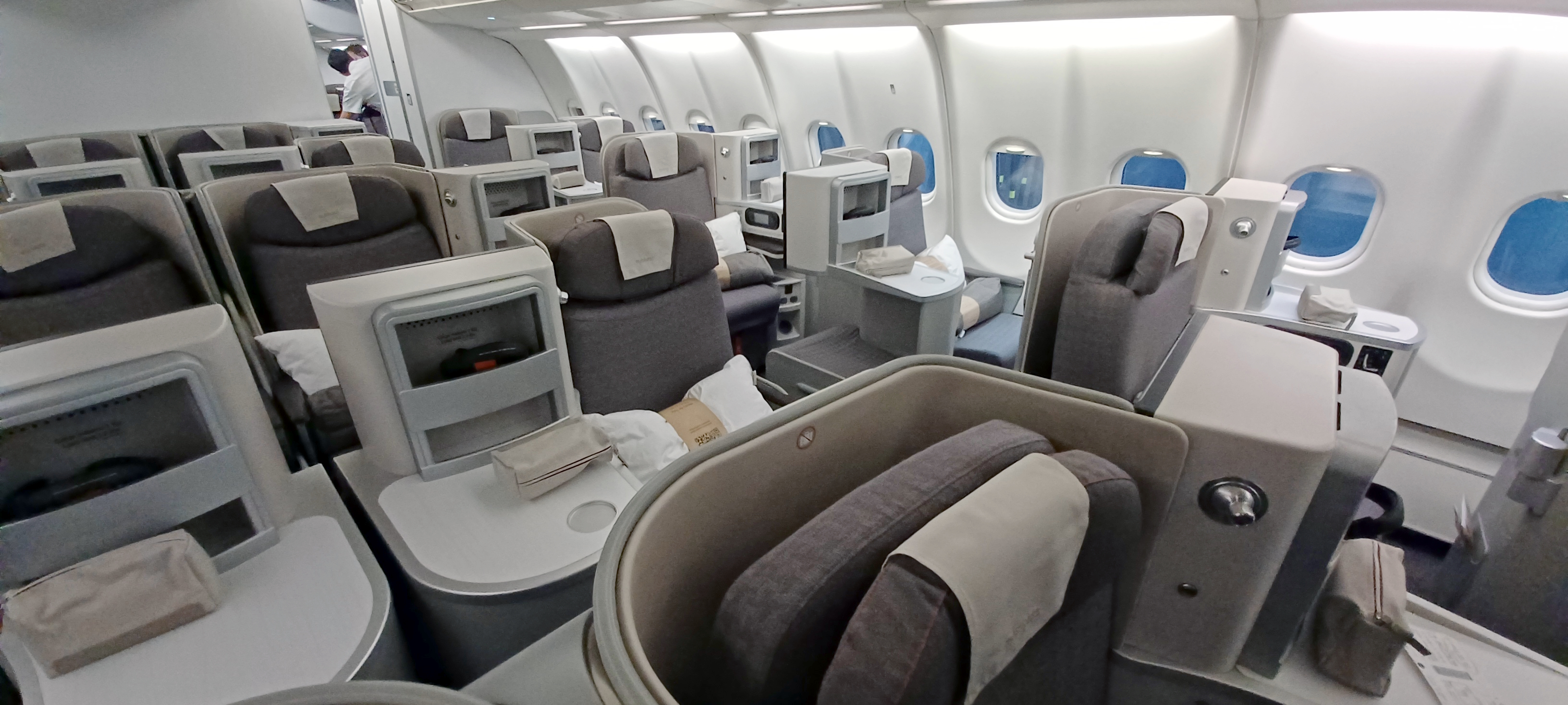 Our inbound jet was delayed due to strong head winds so we could have stayed in the lounge for almost an extra hour but we wanted to be the first to board for some mostly clean cabin photos. The strange gate area layout did not make this easy. Now some cabin shots: