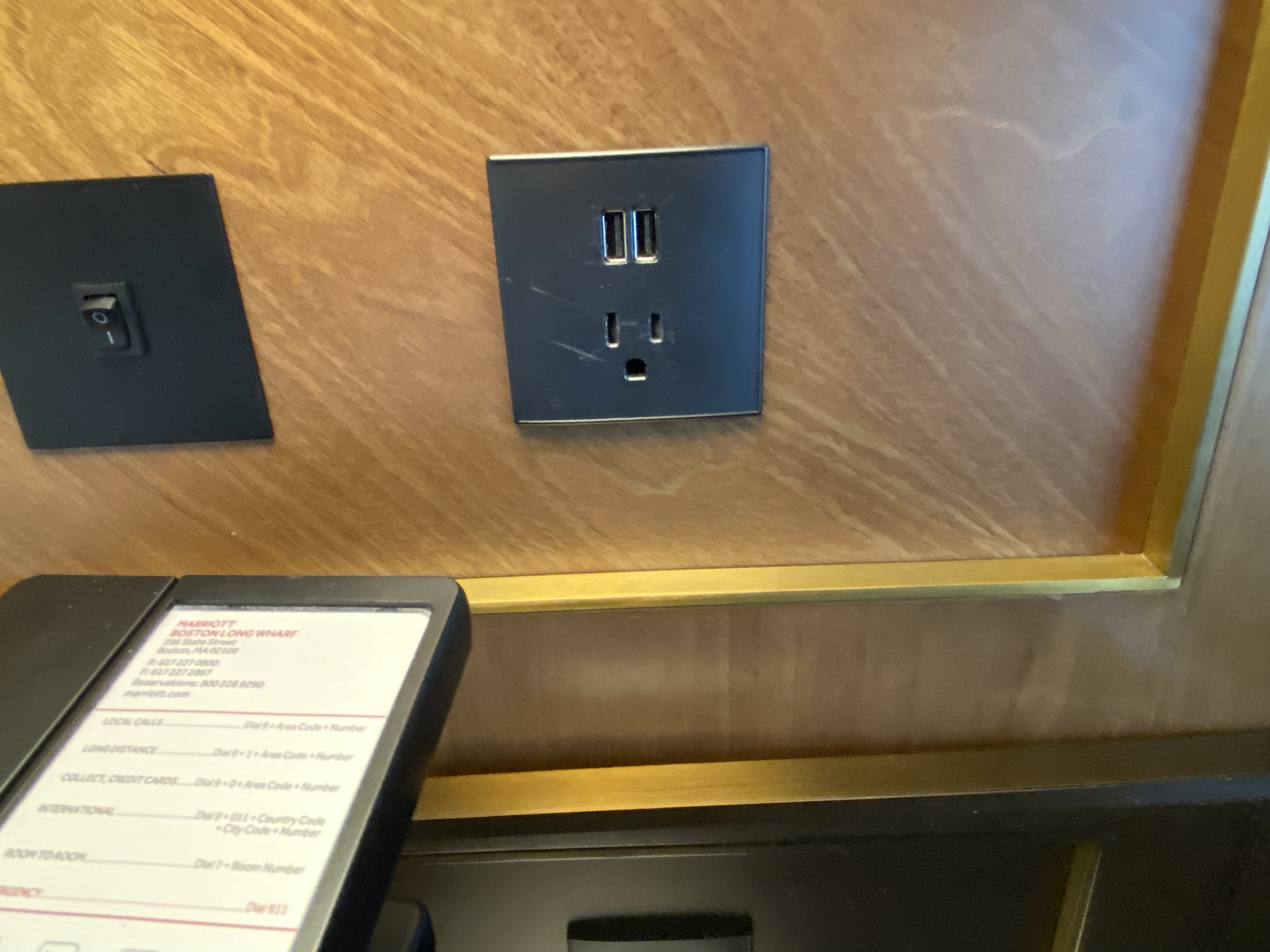 On either side of the bed are electrical outlets and USB power ports.
