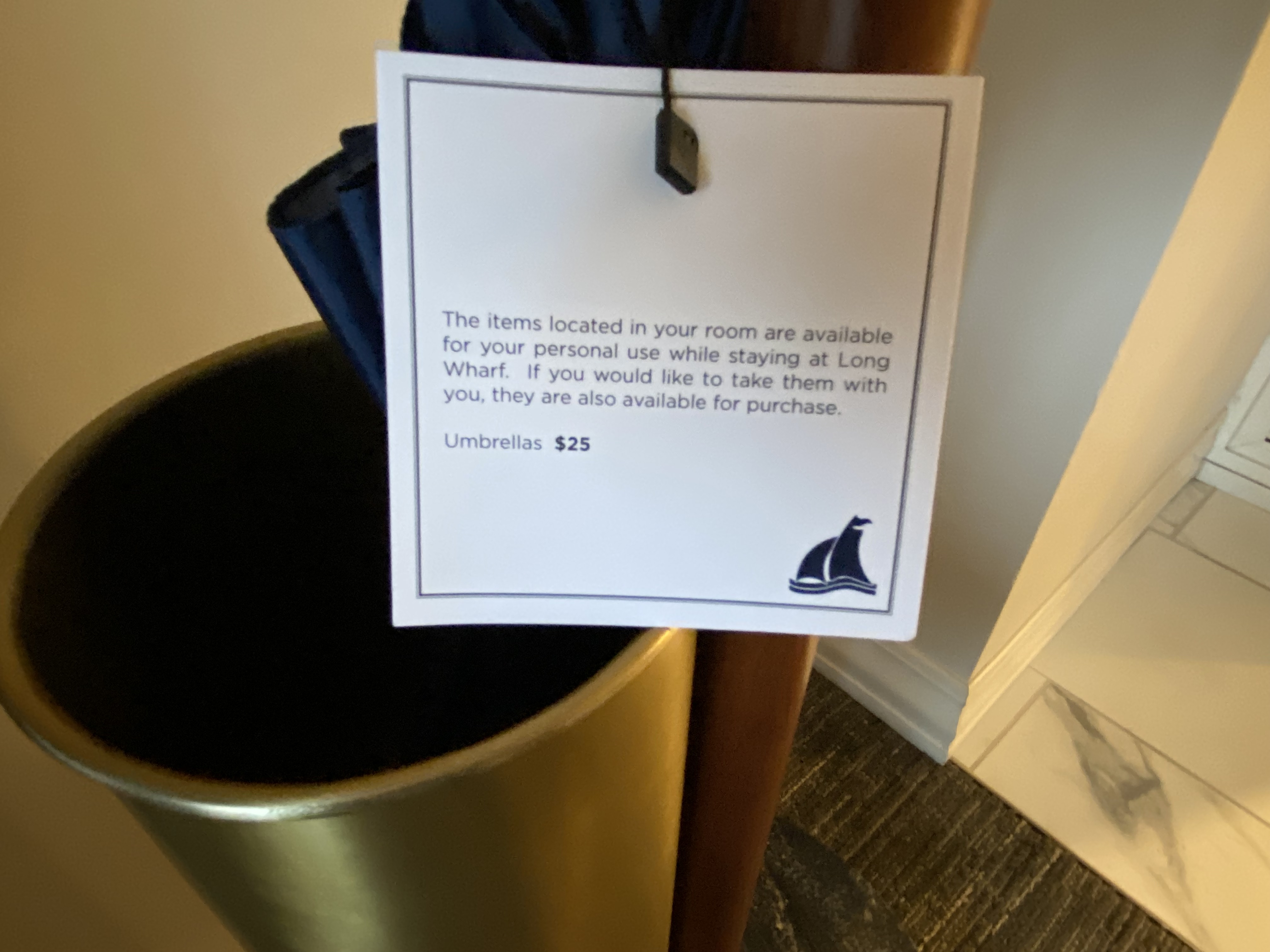 The hotel provides you an umbrella during your stay — which you can keep for $25 if you want.