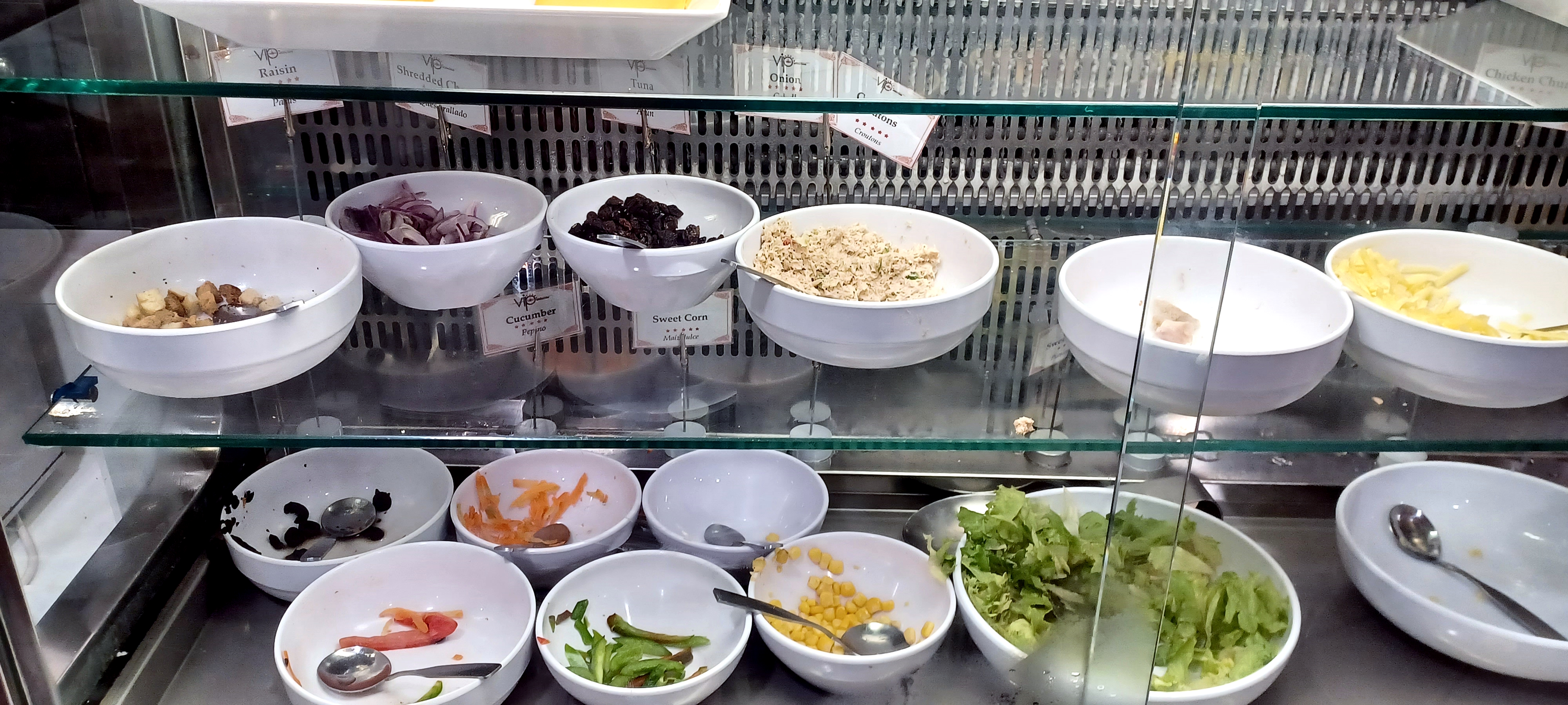 In my experience, food and drink options are very good and include a la carte menu items as well as the buffet. They offer far more options than I encounter at many lounges — Jamaican patties, soup, sandwiches, salads, pastas, quesadillas, plantain chips, etc.