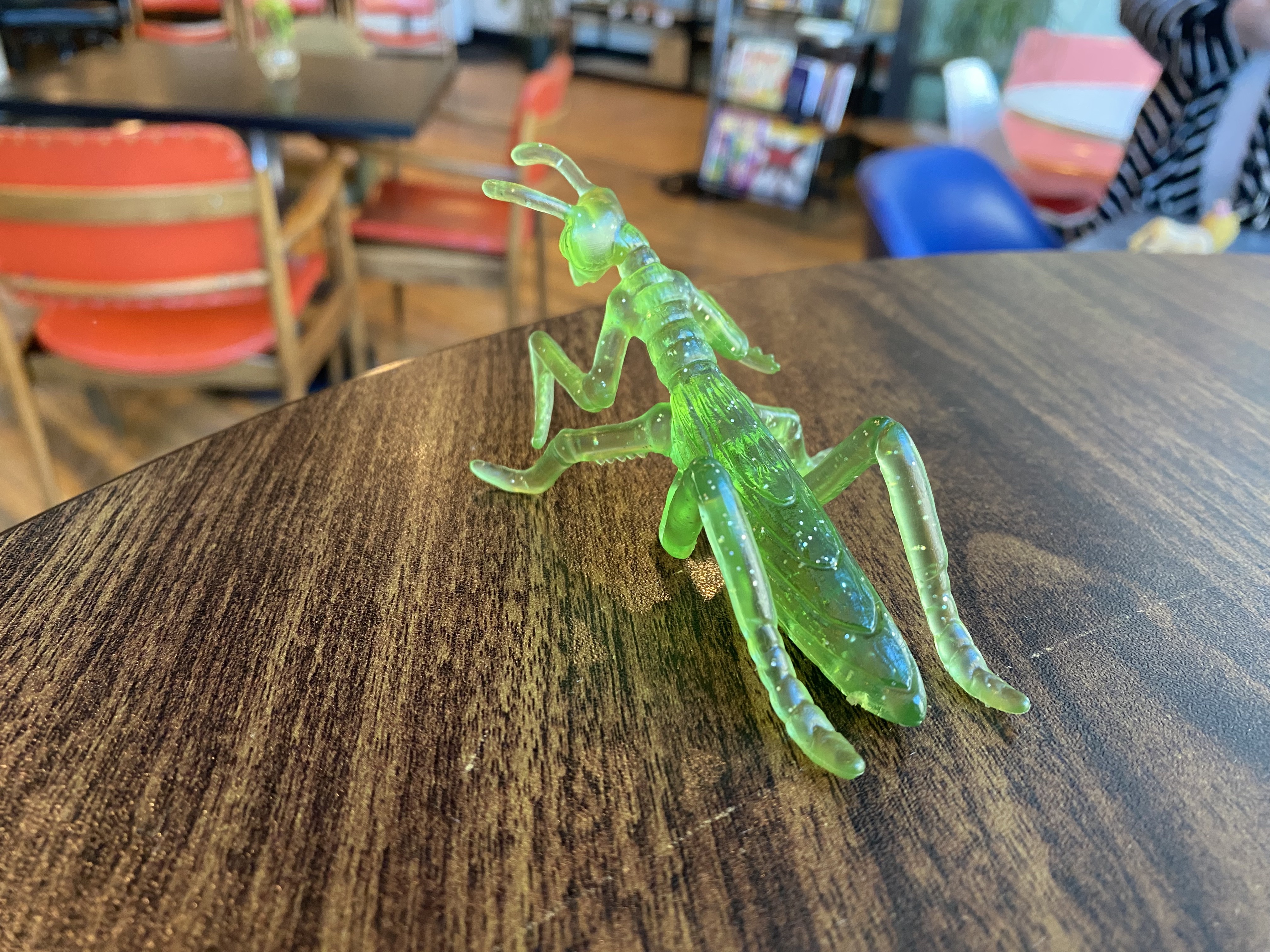 We placed our lunch order at the walk-up counter and received this grasshopper praying mantis toy (thanks, GreggB57!). We placed it on our table so restaurant staff knew where to deliver our food when it was ready.