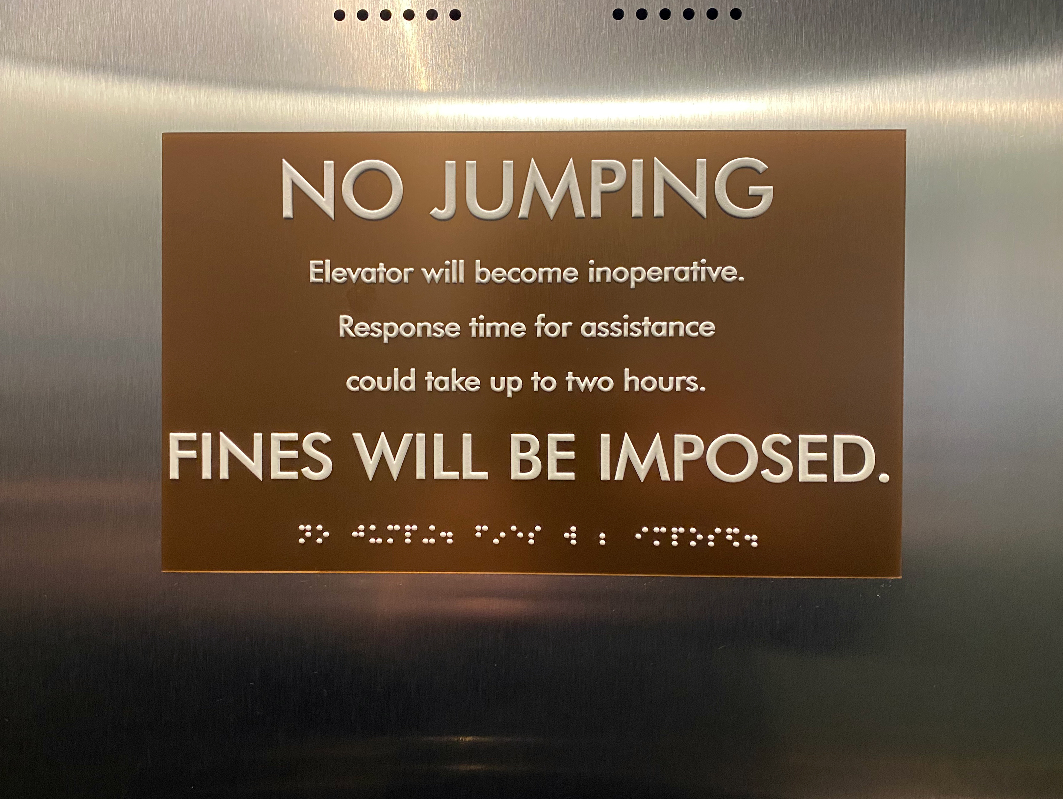 Quick note: there is absolutely no tomfoolery allowed in the elevators! 🙂
