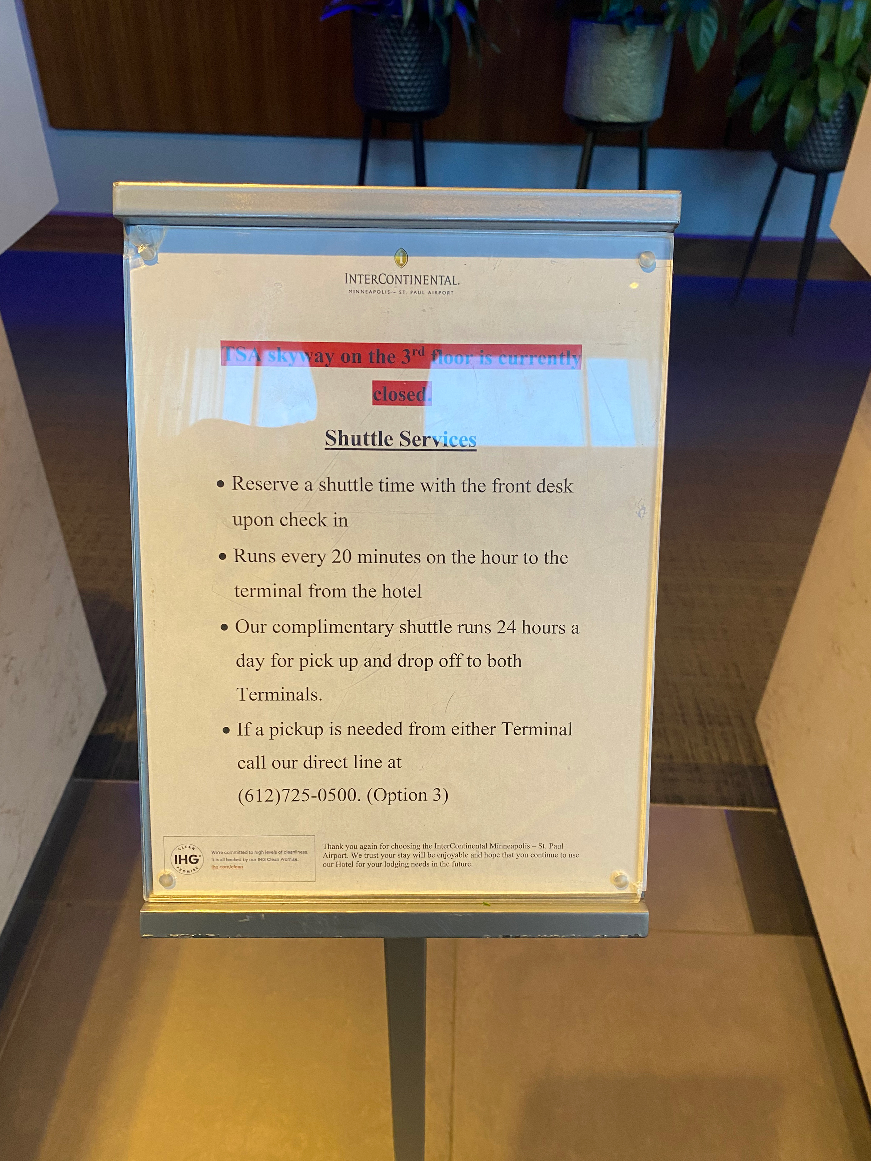 The InterContinental MSP is kind of whacky when it comes to accessing the hotel from the airport itself. It’s connected airside (past security) to MSP’s C Concourse. That’s convenient if you travel with only carry-on/hand luggage.