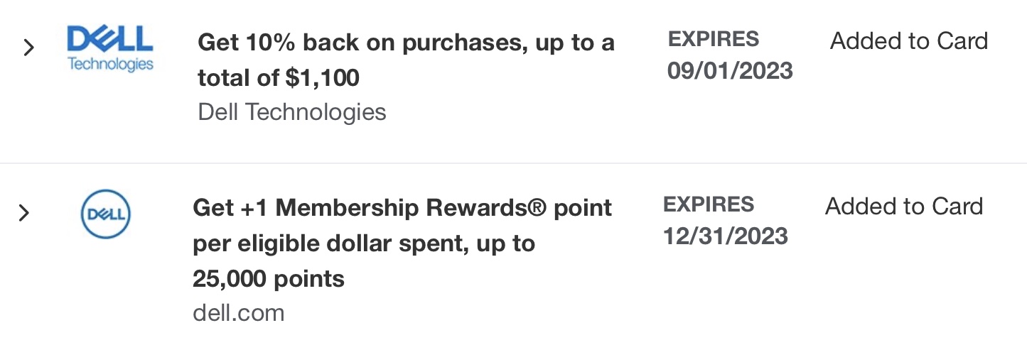 But wait — it gets better. Check out these Dell Amex Offers I added to my Amex Business Platinum.