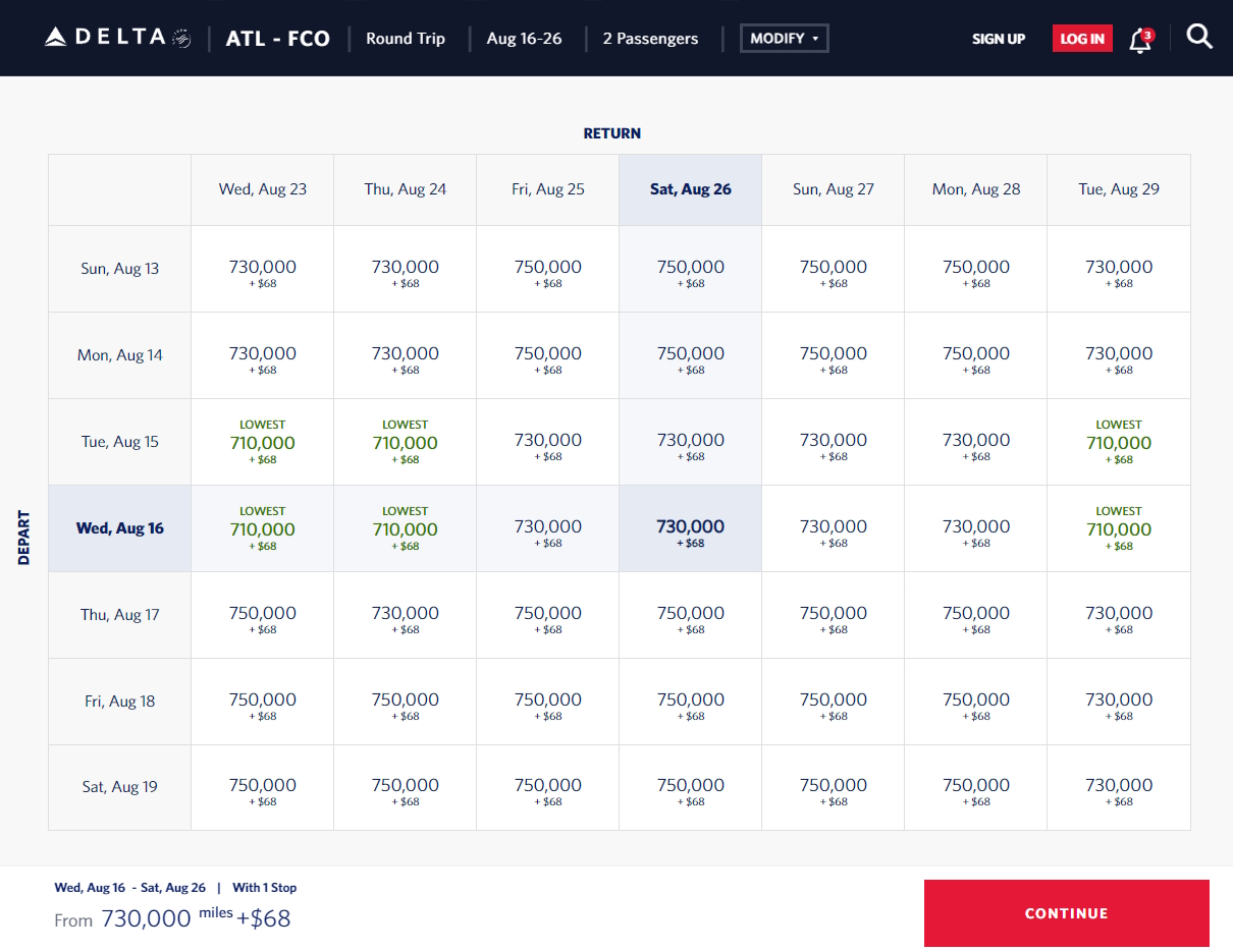 I mean this is the price in Delta one from Atlanta to Rome, Italy before the new school year begins for 10 days away. Is there anything about 1.4M+ SkyPennies that screams award winning anything I ask you?