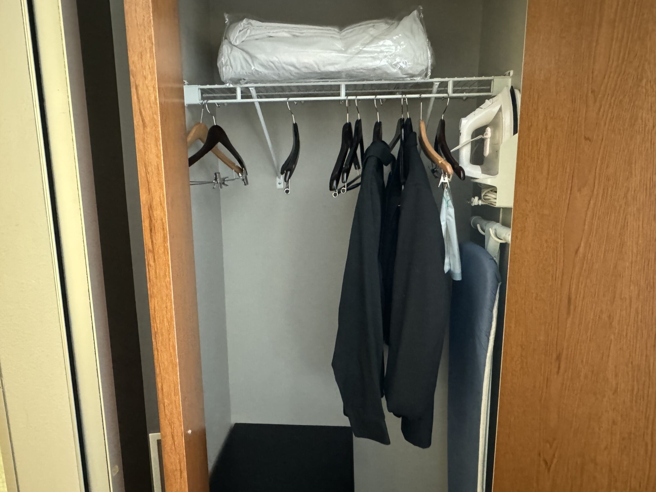 Here’s a view of the TV from the bed. I didn’t love that it was off-center. Then again, I didn’t exactly have a ton of time to watch television while lying in bed.