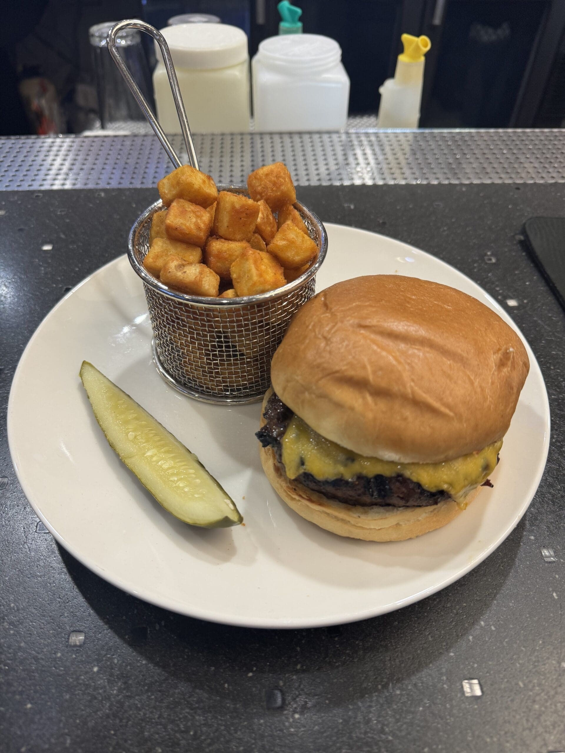 On the first day, I enjoyed some delicious chicken wings. On day two, I ordered a cheeseburger. They were out of French fries, tater tots, and sweet potato fries. Ugh.