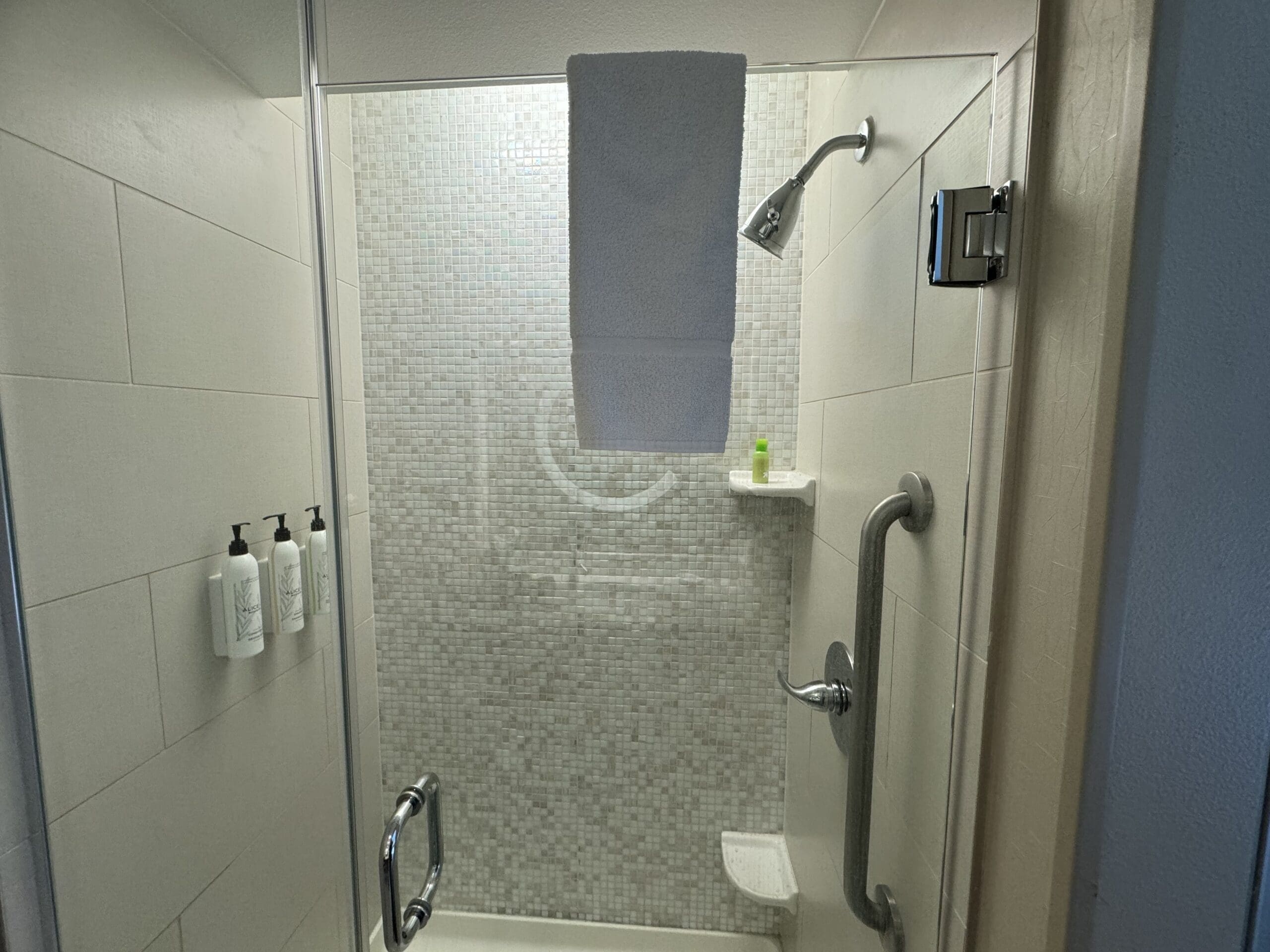 The vanity’s sink was slow to drain. The water pressure and temperatures were great in the shower and both faucets. No complaints there!
