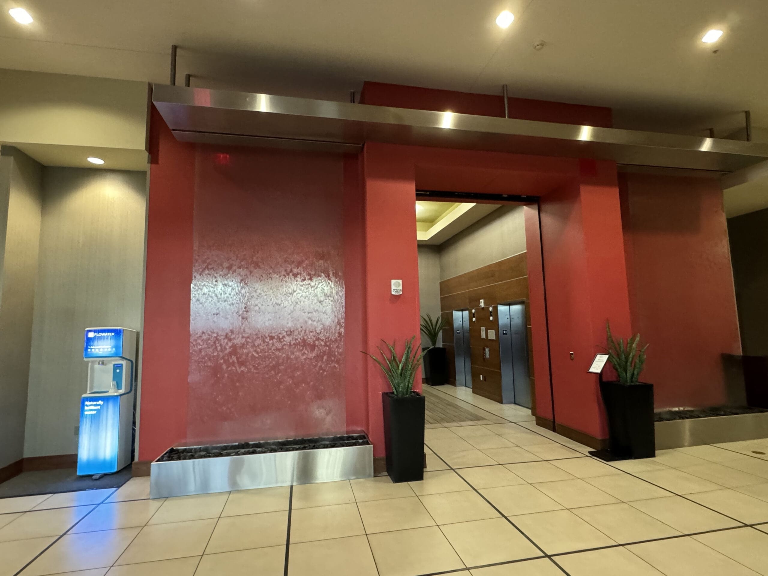 Next, there’s a water bottle refilling station in the lobby. I drink a lot of water — which can quickly get expensive if you buy bottles from hotel stores. (I usually make trips to convenience stores — if at all possible — when I travel.)