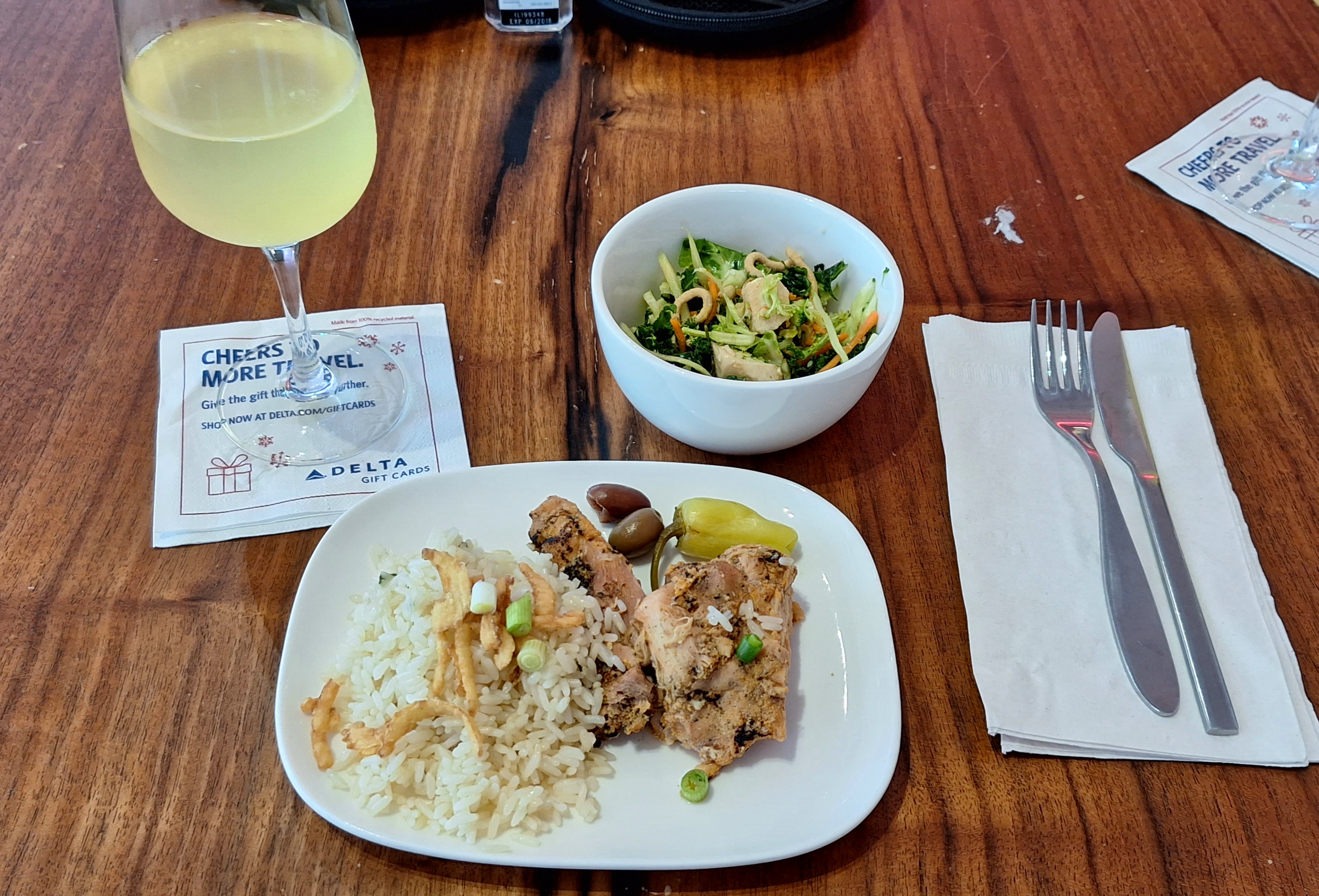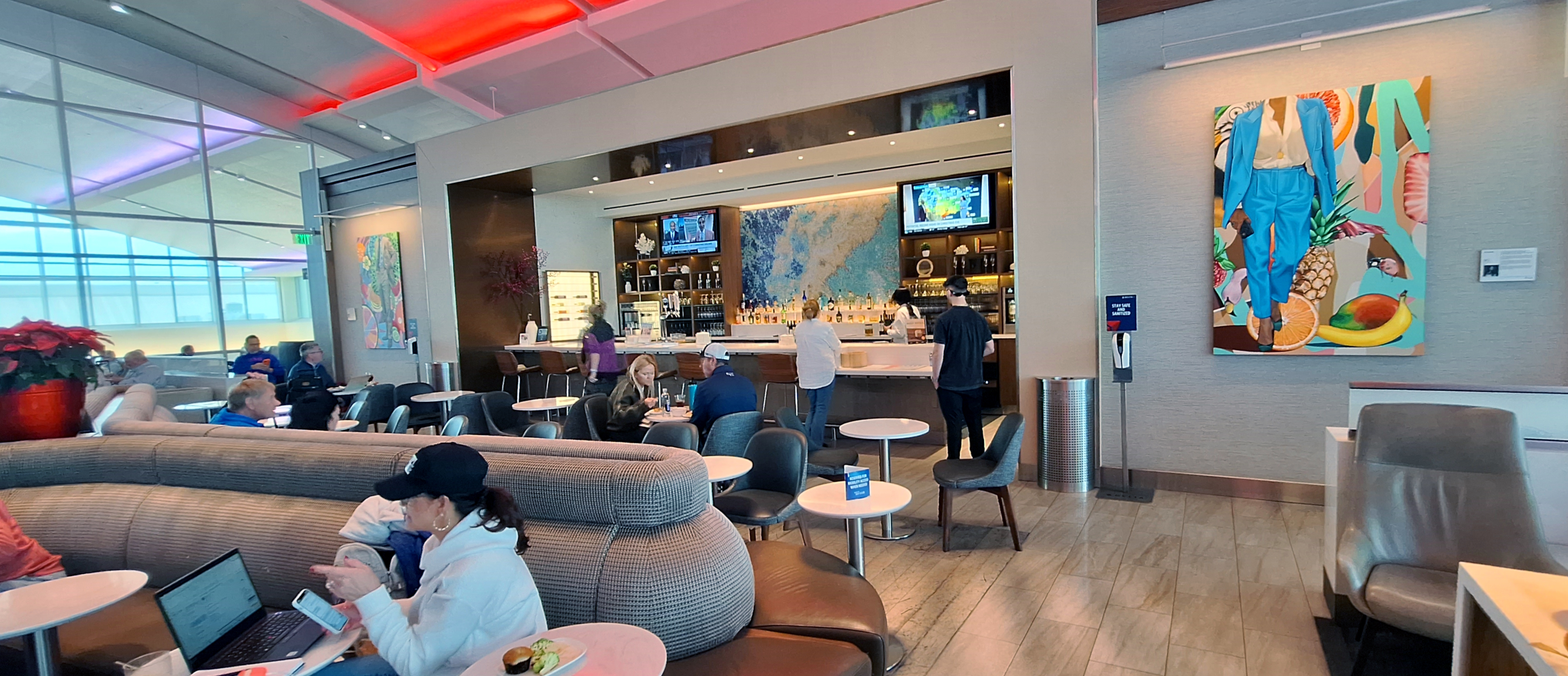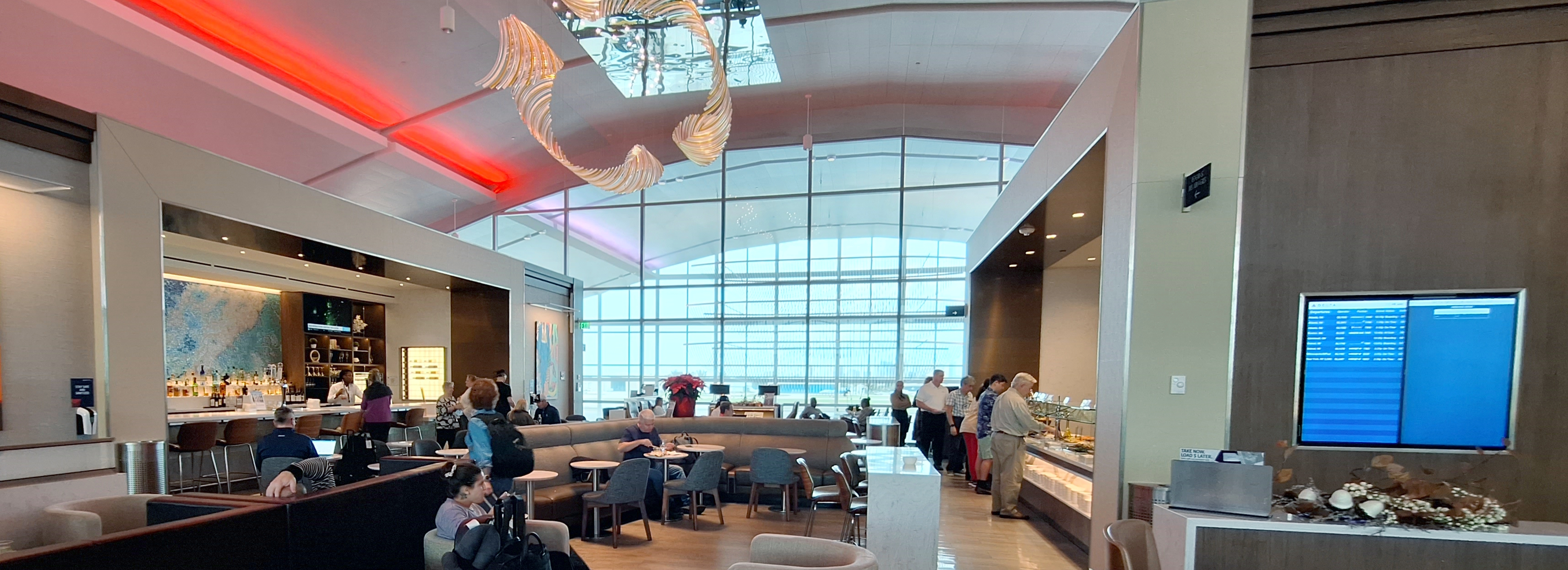 After duly waiting for an hour, now with a mild headache from all the noise and distractions, we made our way to the Delta Sky Club again. The dragon was gone and despite being a bit outside the three-hour window at this point we were welcomed in.