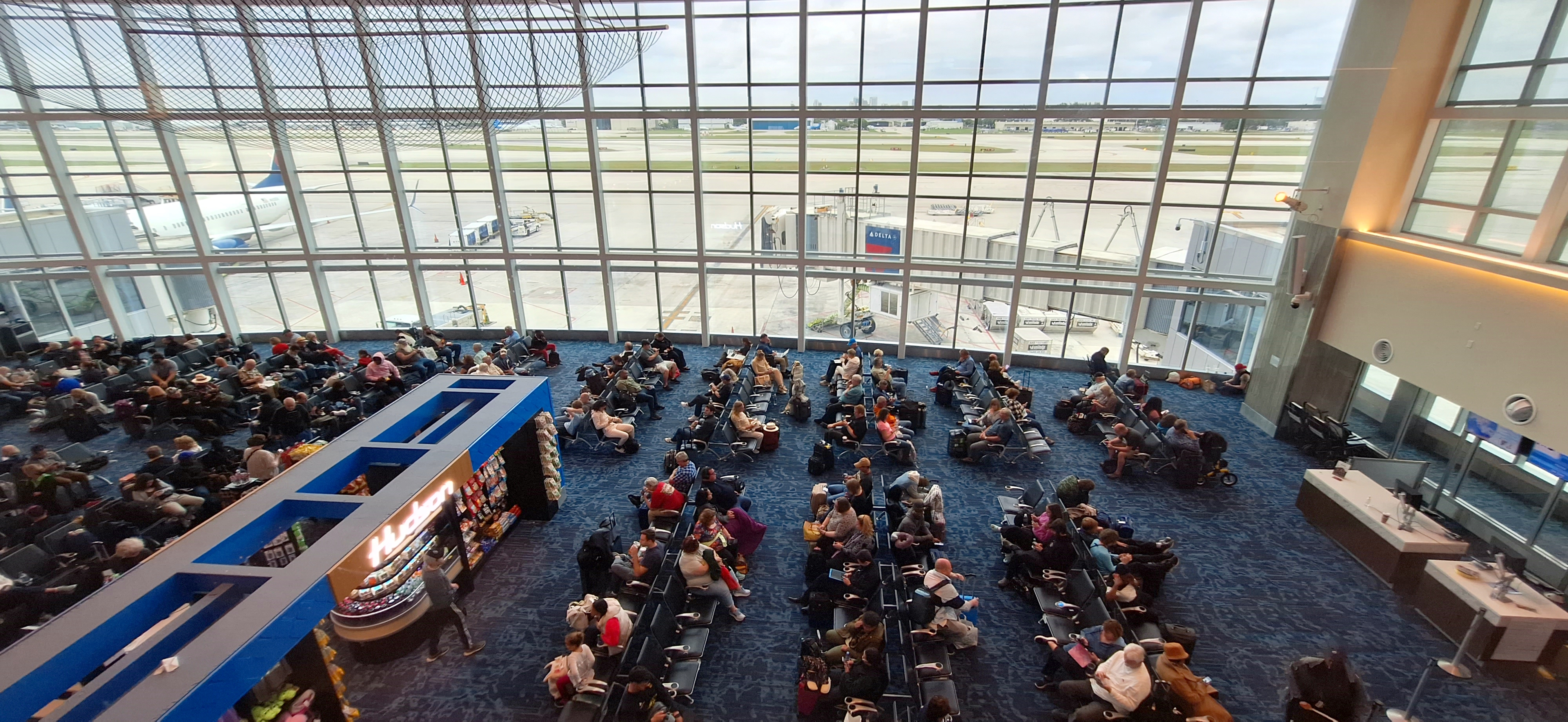 We tucked our elite heads low and wandered off into the packed Delta terminal 2 (a big box) at Fort Lauderdale and tried to find a seat to charge up our devices and get some work done.