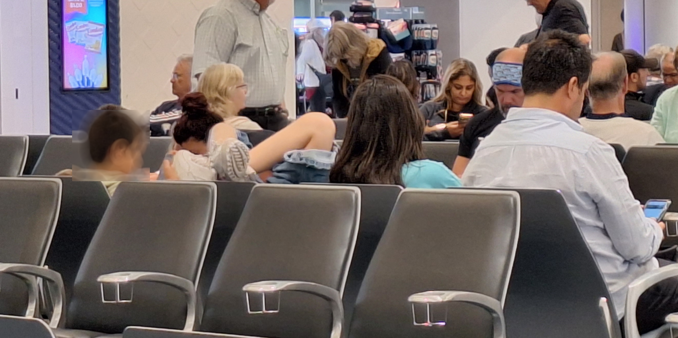 What we got to enjoy was nearly an endless stream of loud gate announcements and folks watching movies without headphones and competing music from overhead and bars around the area. So relaxing.