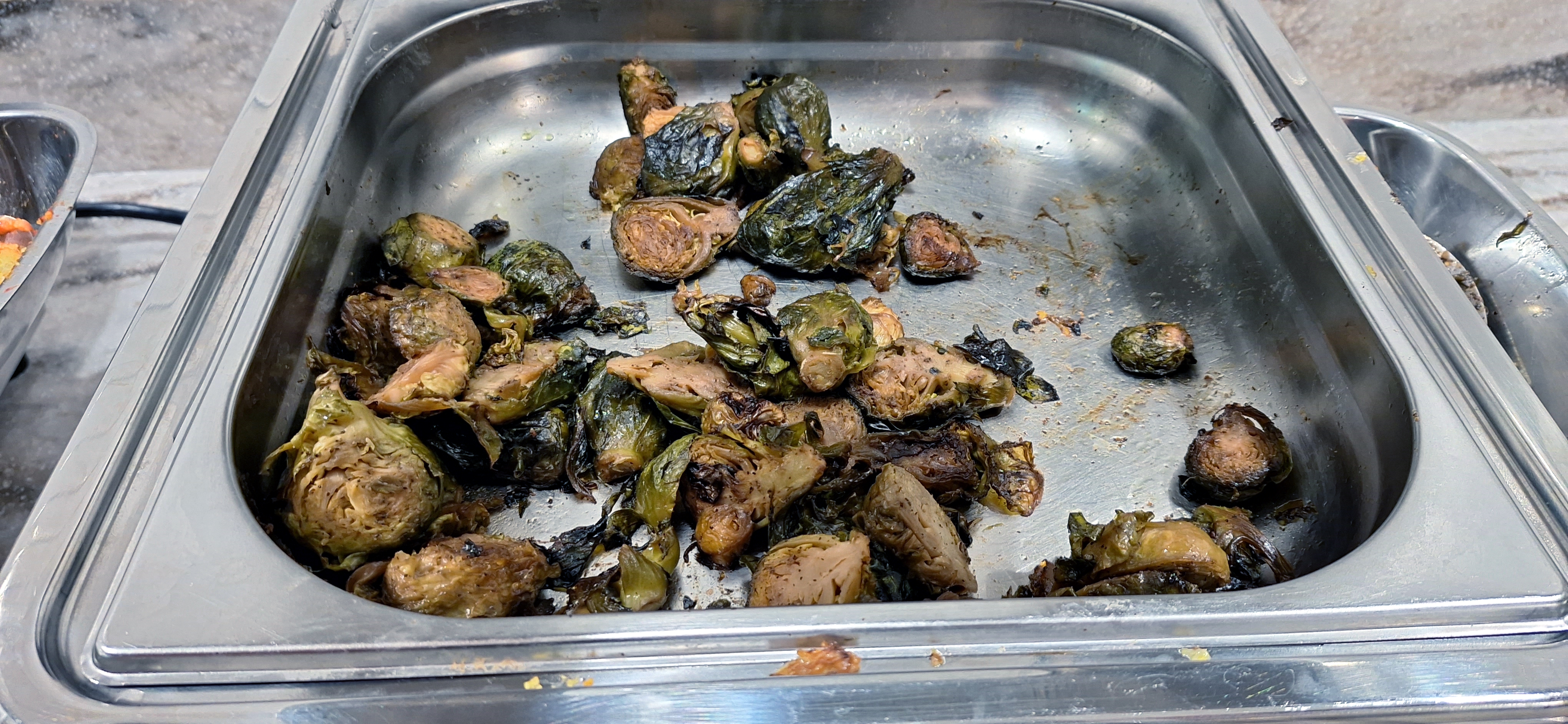 Does this chicken dish look appetizing to you (no – I did not try it – shudder). How about those Brussels spouts? Do they make your mouth water?