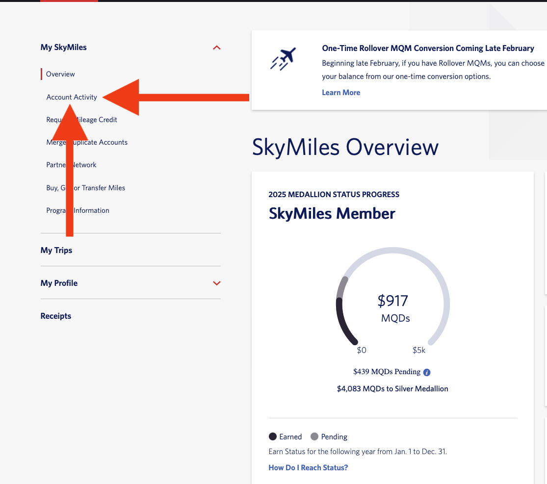 Once you’re on the “My SkyMiles” page, click “Account Activity.”
