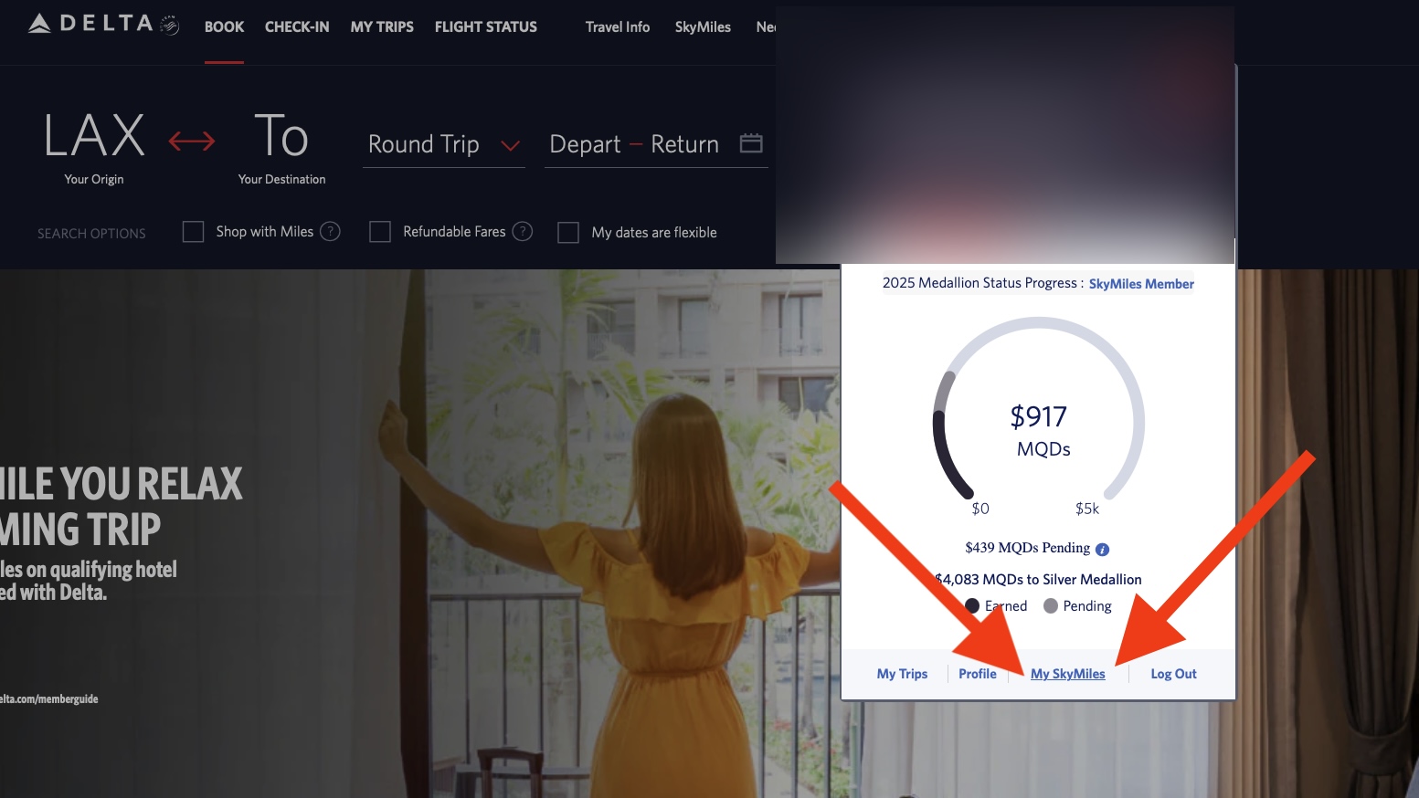To see your total, log in to your SkyMiles account at Delta.com. Click “My SkyMiles.”