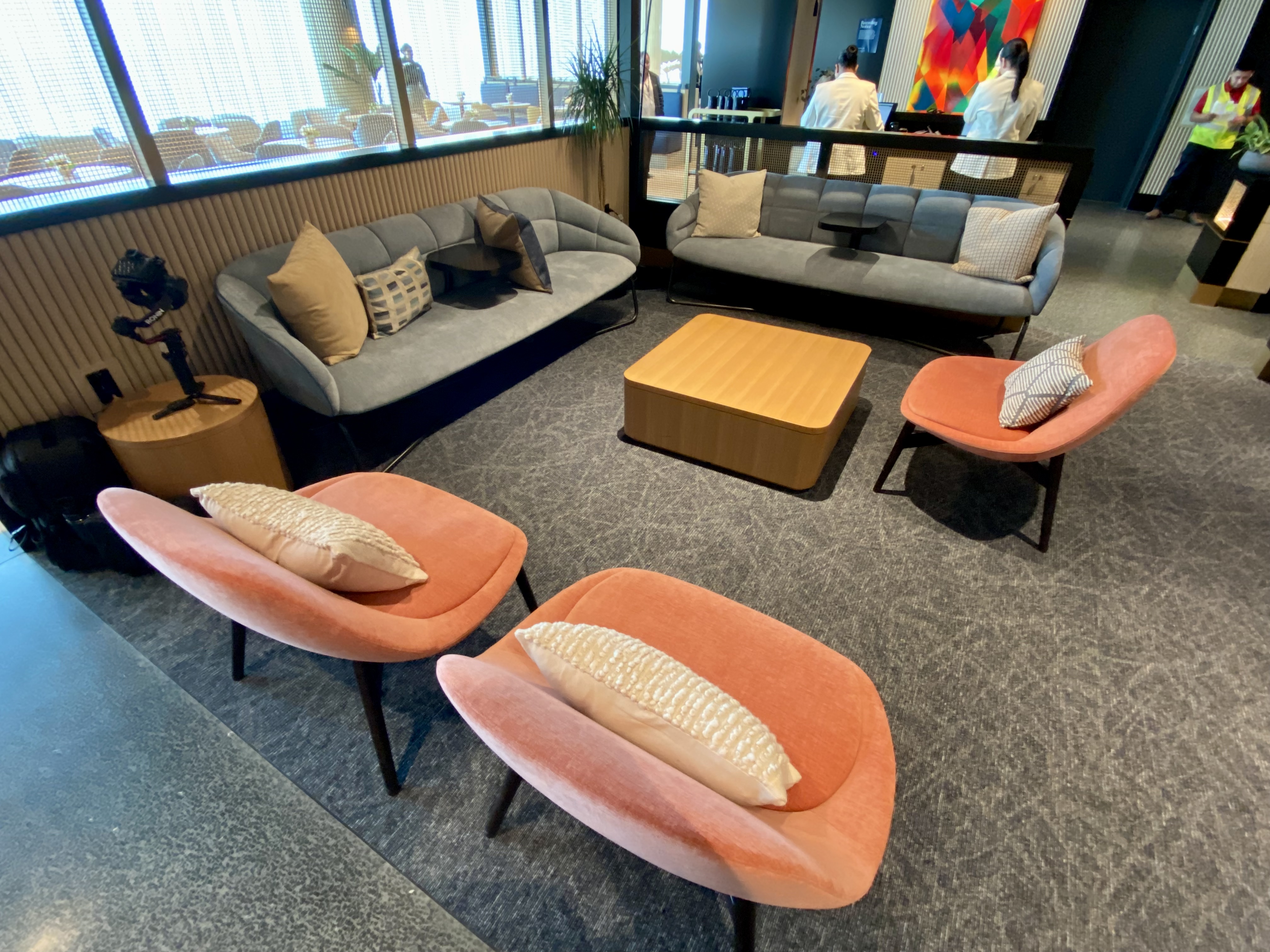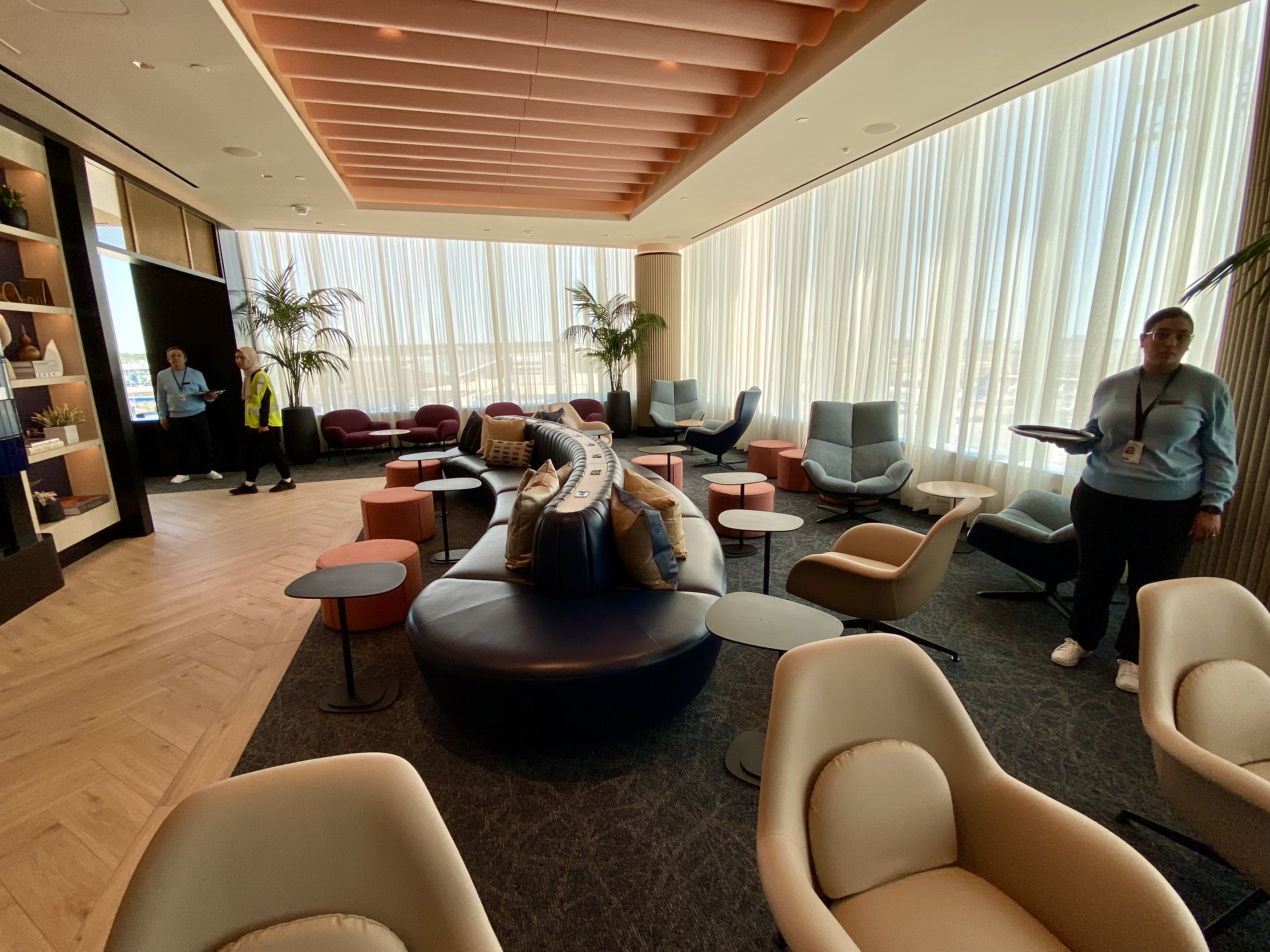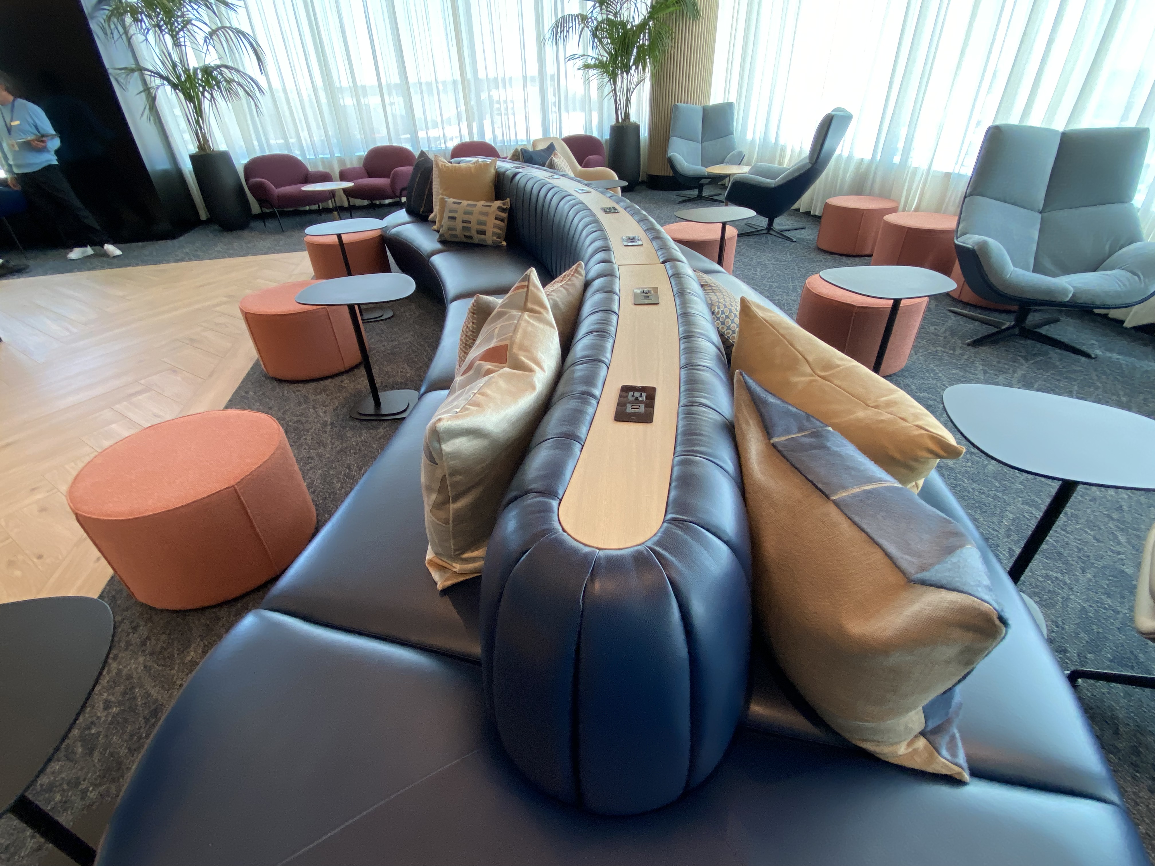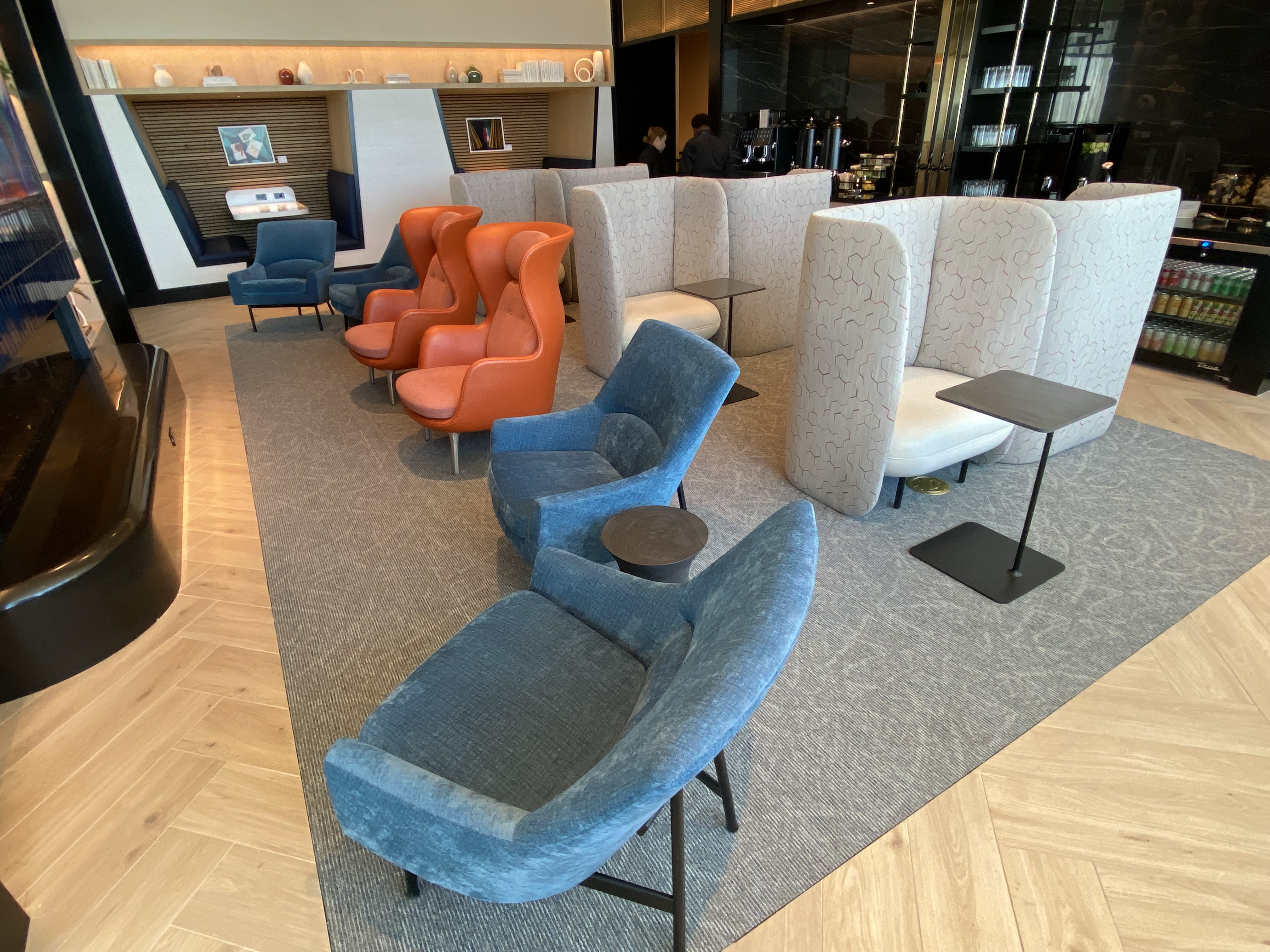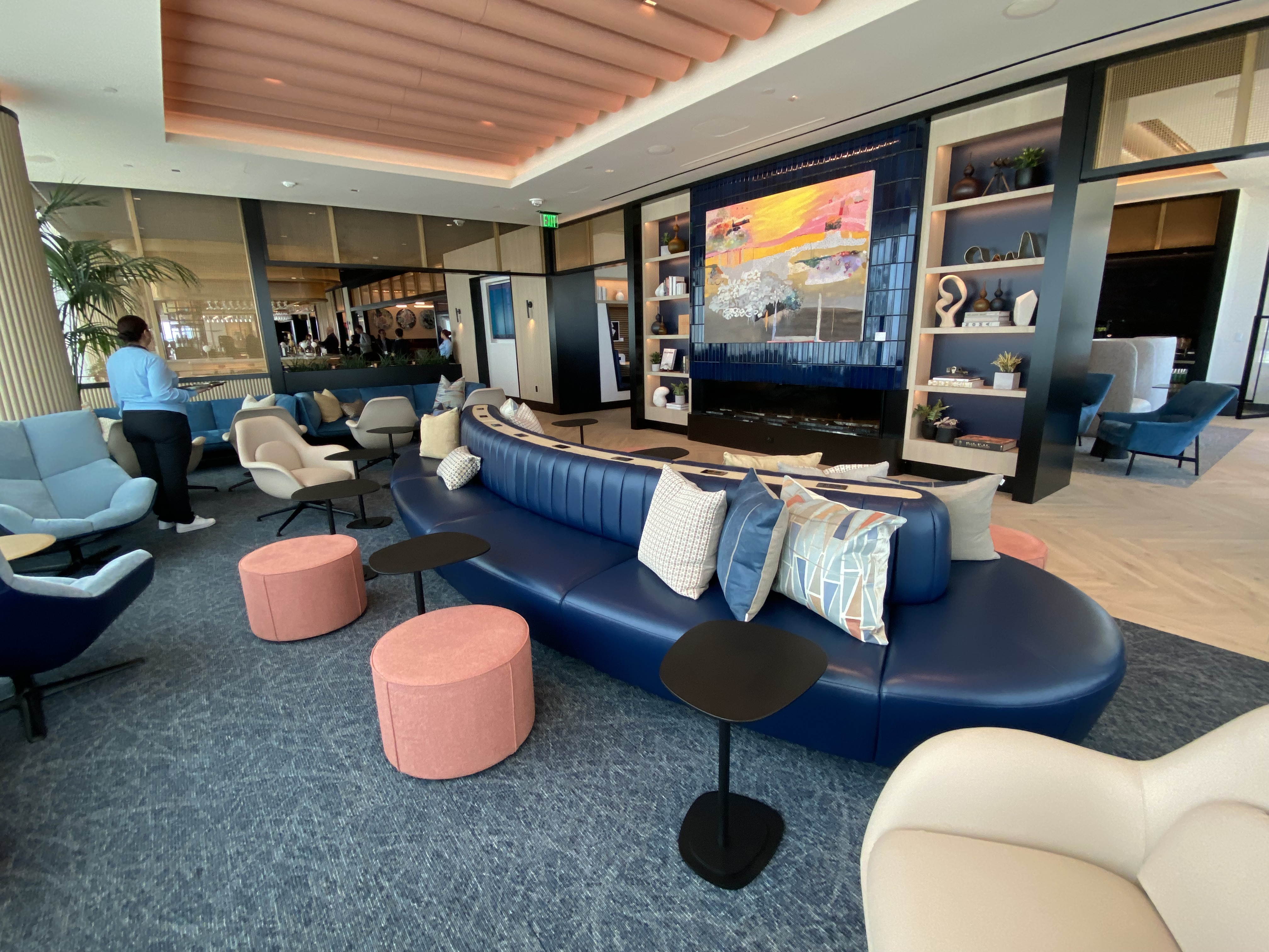 It’s very well designed — and seems pretty big without feeling like you’re in a big hall. Granted, I visited during a preview when there weren’t many people (and their luggage) in the club. But parts of it felt homey — and almost like an apartment.