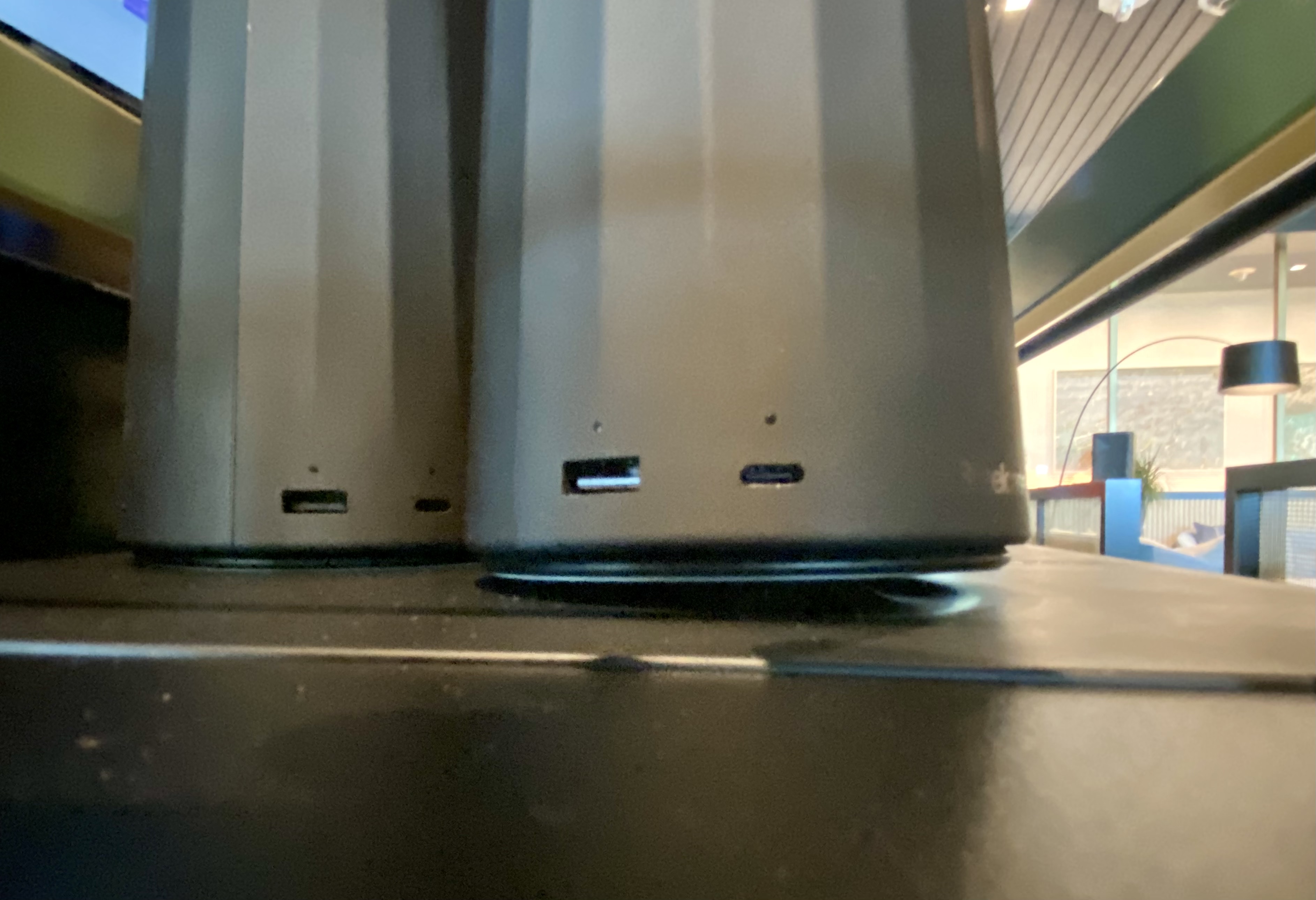 You’ll find plenty of power and USB power ports near most couches, lounge chairs, and bar seats. The “stand-alone” cafe seats don’t seem to offer that feature.