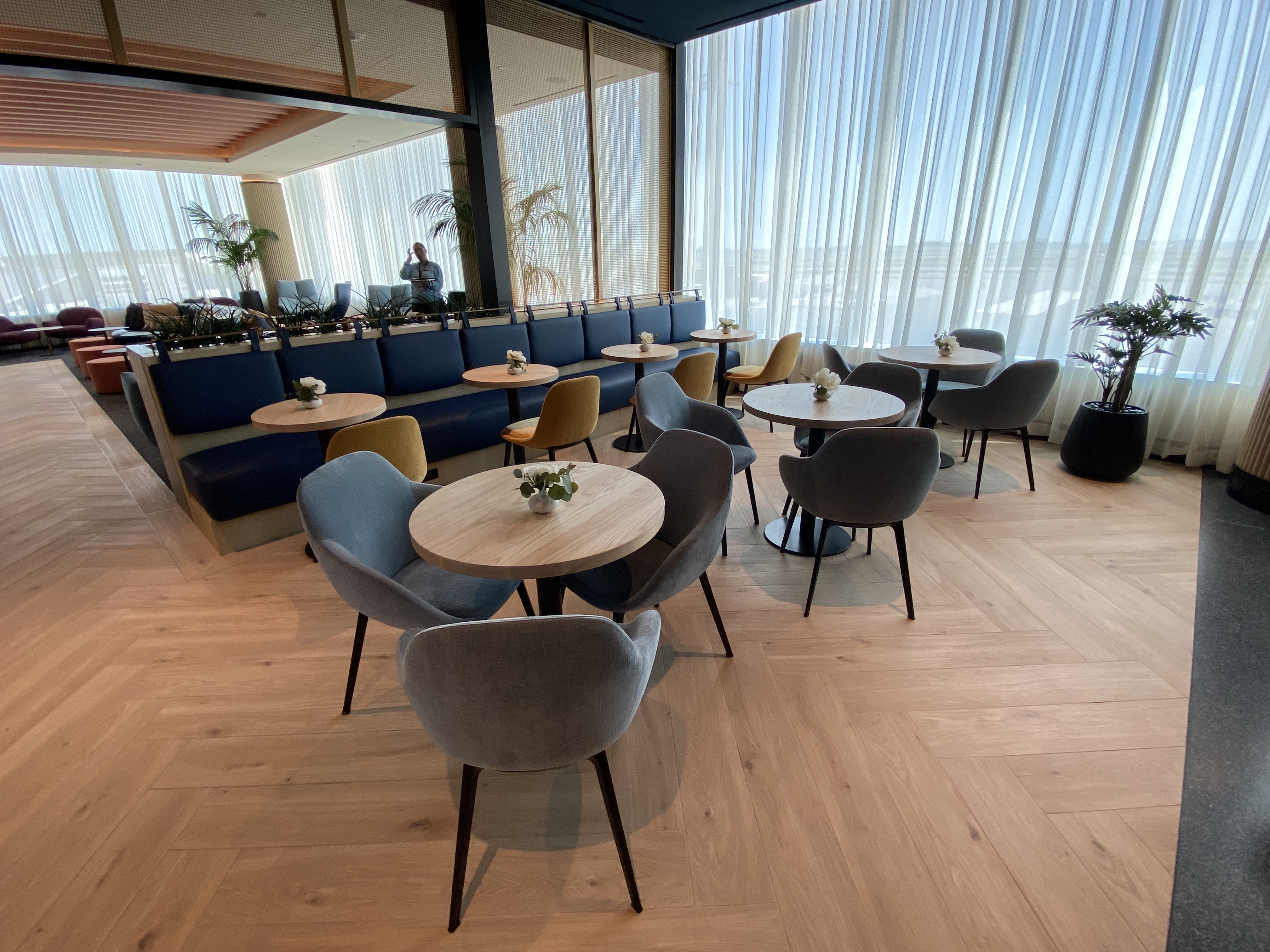 Like the newer Delta Sky Clubs, the windows automatically adjust their shade to the sunlight outside.