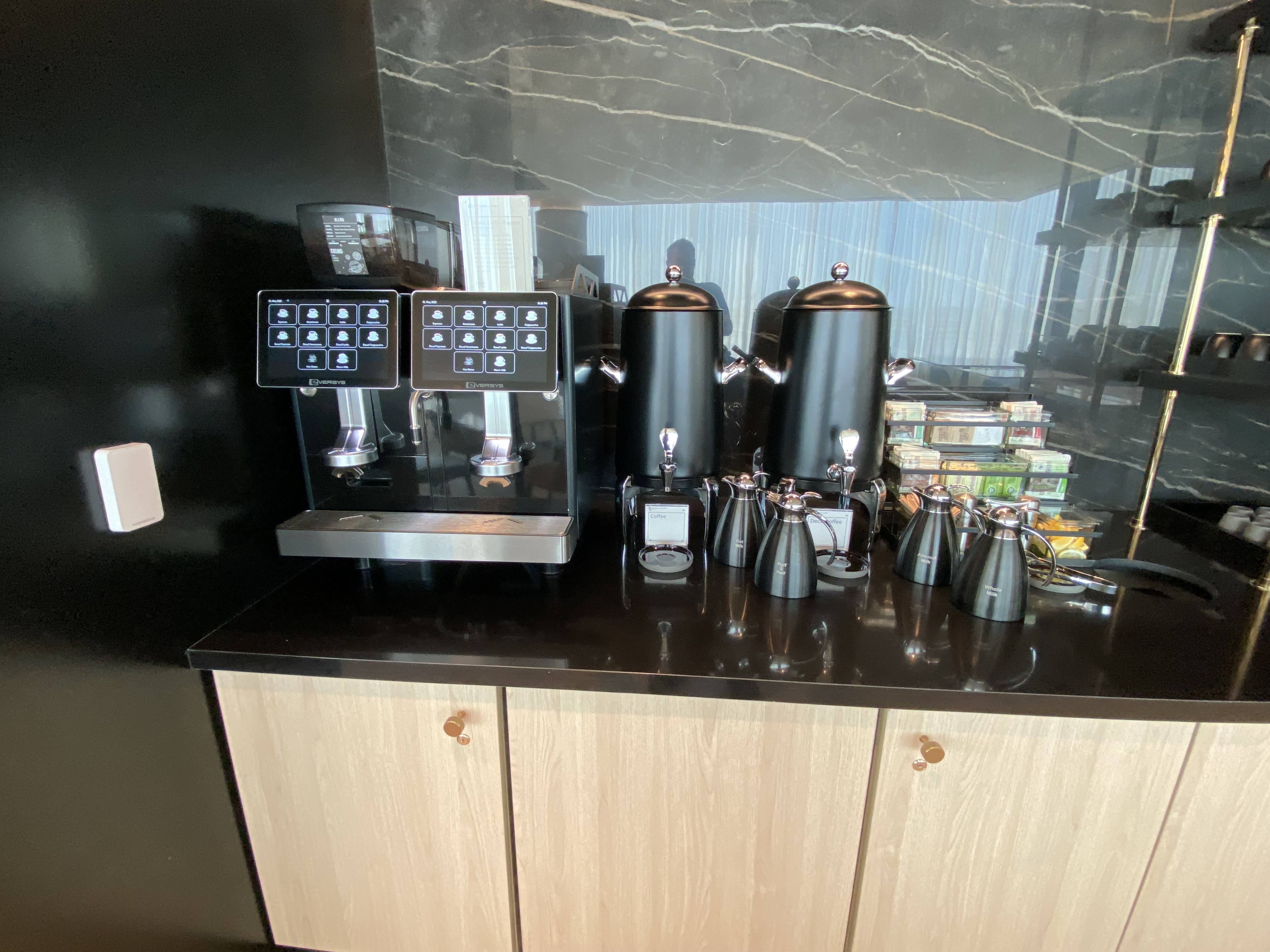 You’ll also find buffets offering Chase Signature self-serve options that will also be available at the other Sapphire Lounges when those open.