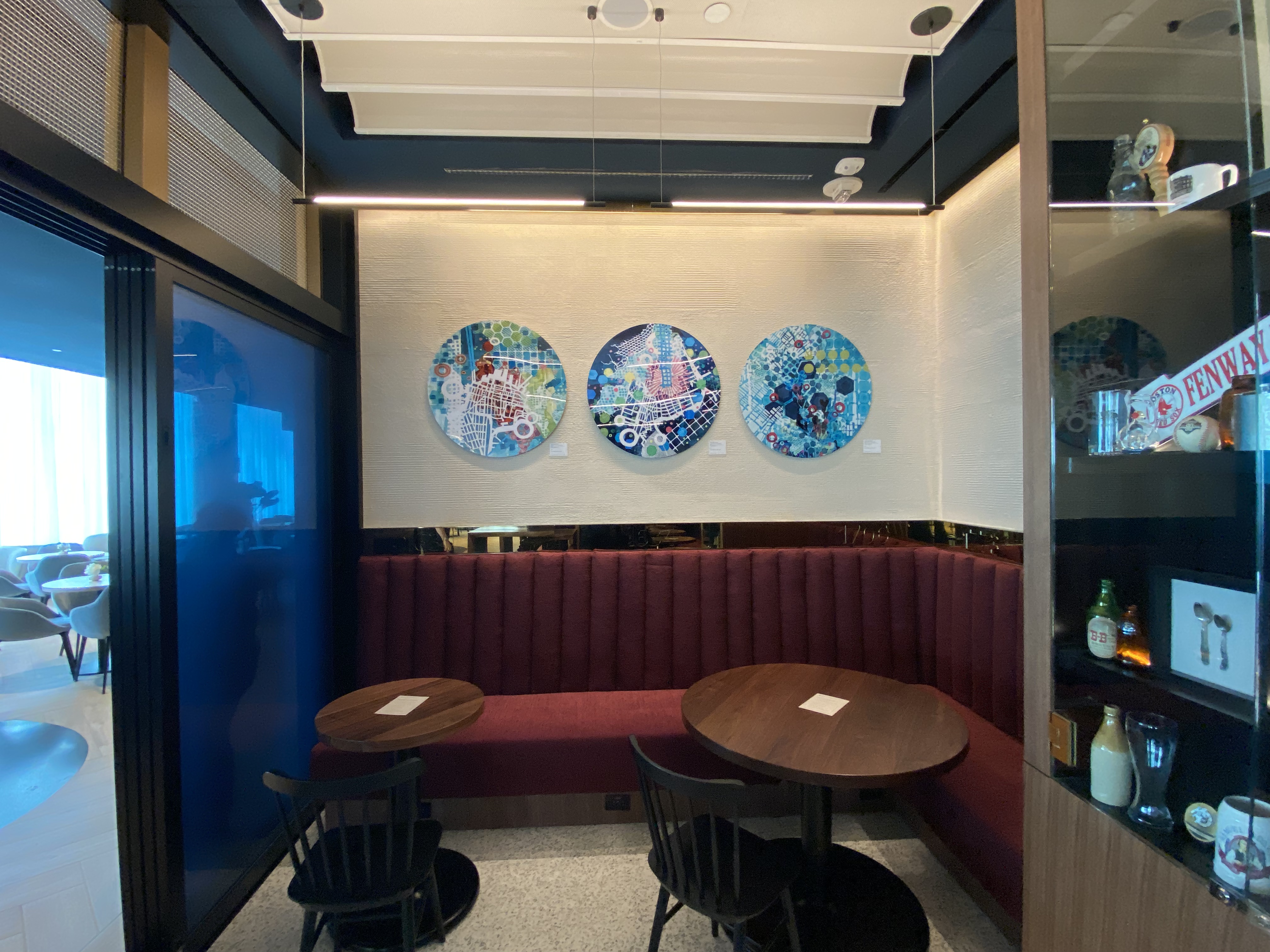 The Boston Chase Sapphire Lounge displays some artwork from local artist Silvia López Chavez.