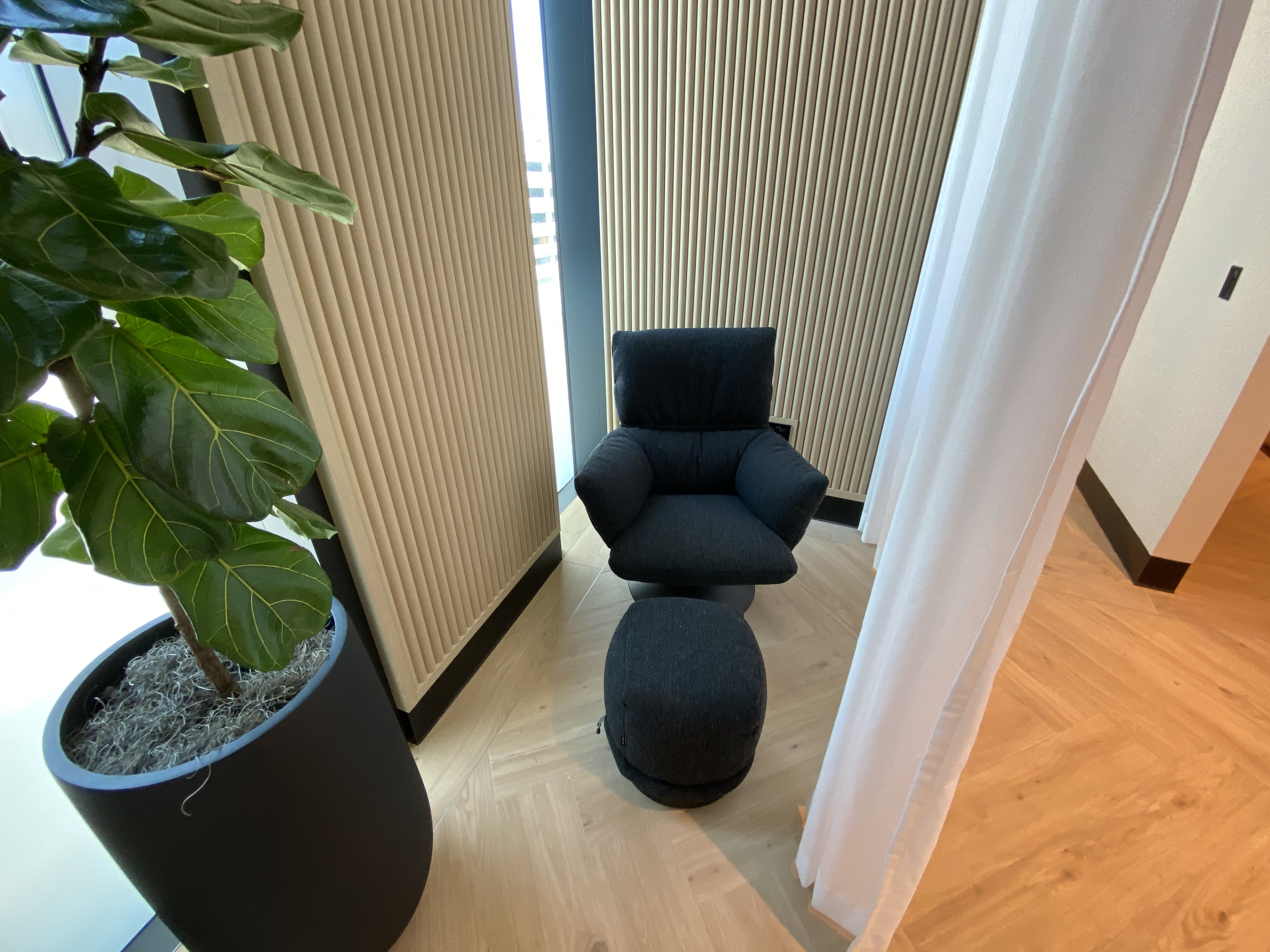 The rest pods are available on demand. The massage chairs can be booked in 30-minute increments. Those may be reserved at the lounge’s check-in desk, at the Wellness Room check-in, or via QR codes available throughout the lounge.