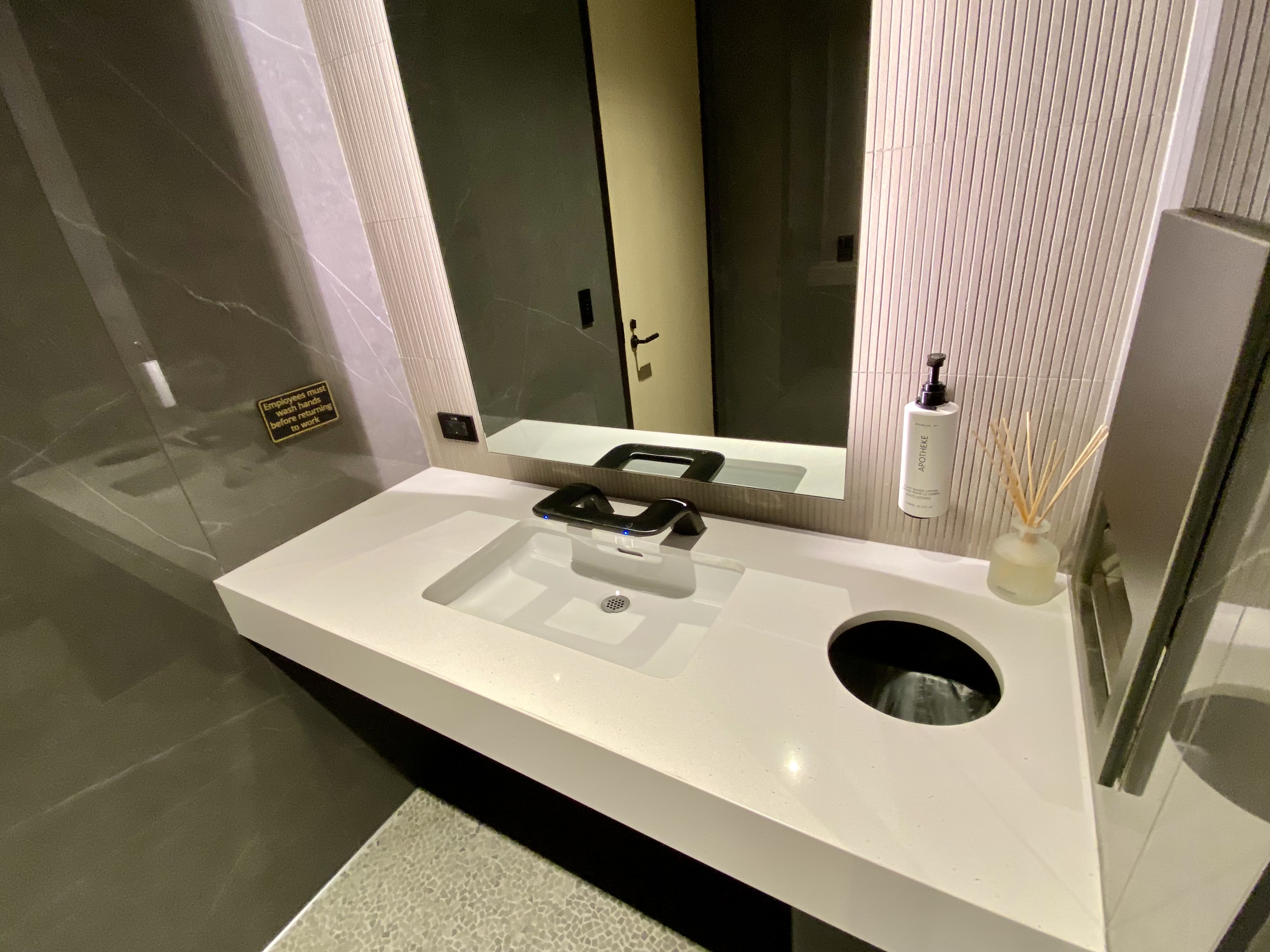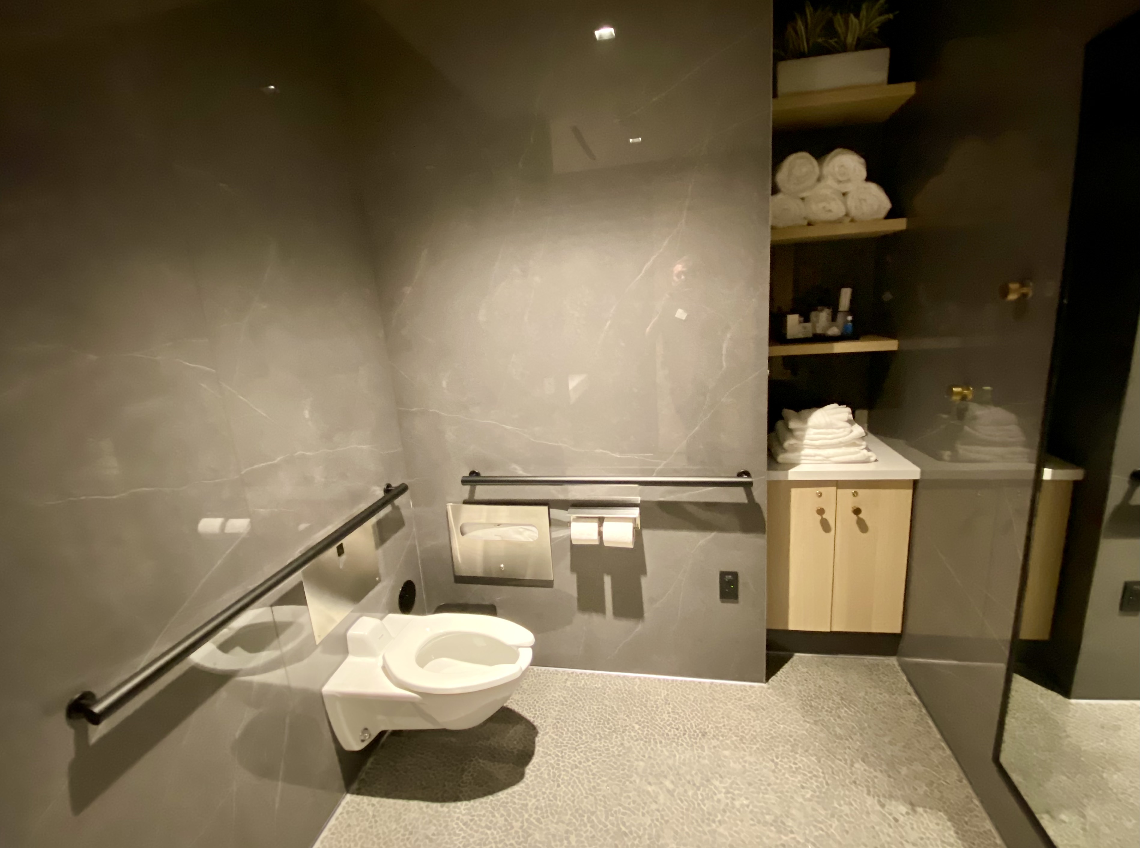 Something I didn’t notice inside or outside the men’s room: motion-activated door openers. Those are available at all the new Delta Sky Clubs I’ve visited in the past four or five years. Perhaps they will be installed before the lounge’s official opening.