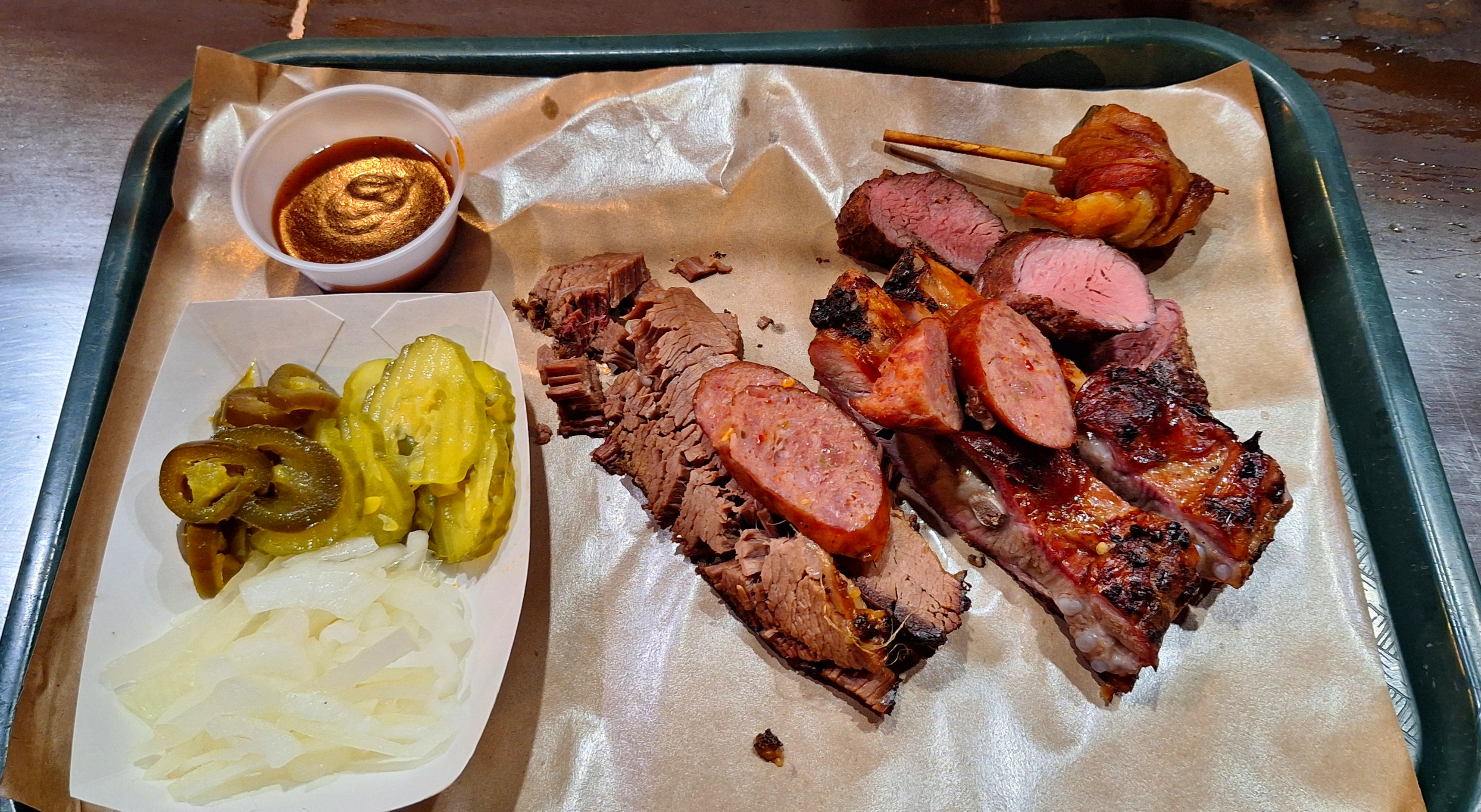 While service has picked up, the food offerings have been scaled back and were meh, including a surprise chicken bone in my jerk chicken roll. At least we had a place to sit (upstairs) away from the crowds. Our AA return flight made the ride down look opulent by comparison.