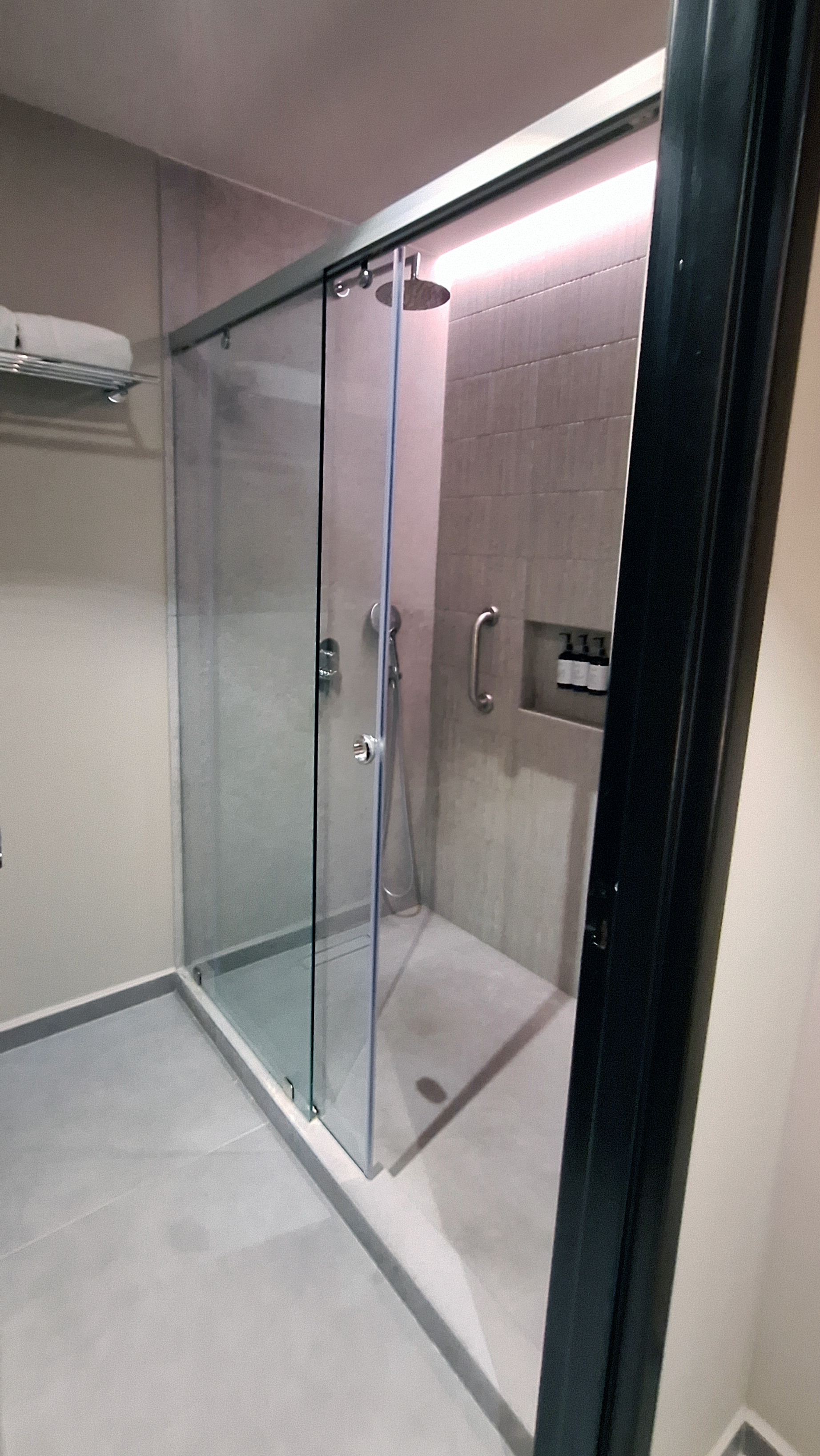 After the stress of the day, that is, just making our first flight by literally 1 minute, I wanted to take a shower before bed and got to enjoy this result:
