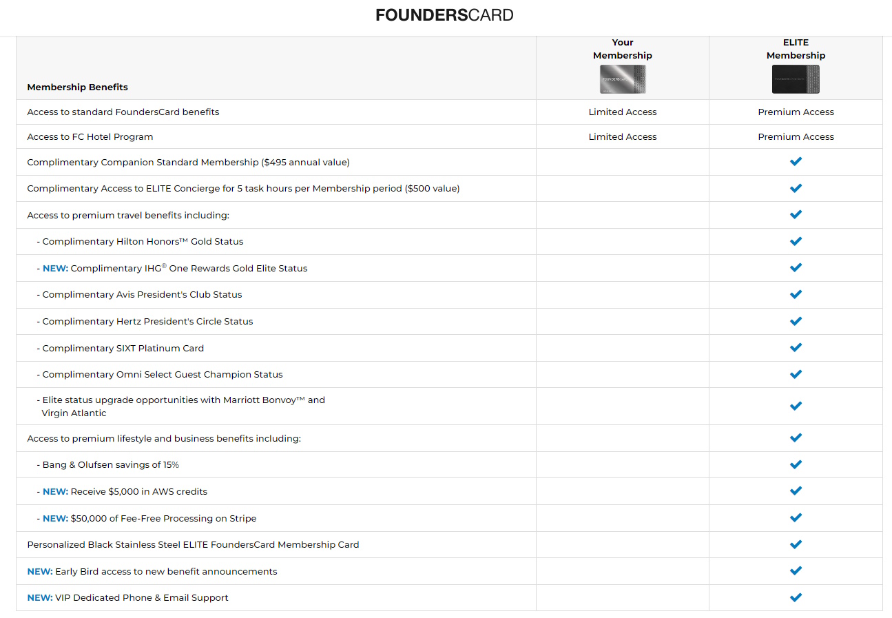 I had the Founders Card for a few years. *Some* might find the business discounts of value — I didn’t. *Some* might find the travel discounts of value — I didn’t. For the most part, I was able to secure these by other means. So, for me, that left the various tier statuses granted. For an infrequent traveler, that might be nice, but I earn them organically. In the end, I found no meaningful value and cancelled my card.