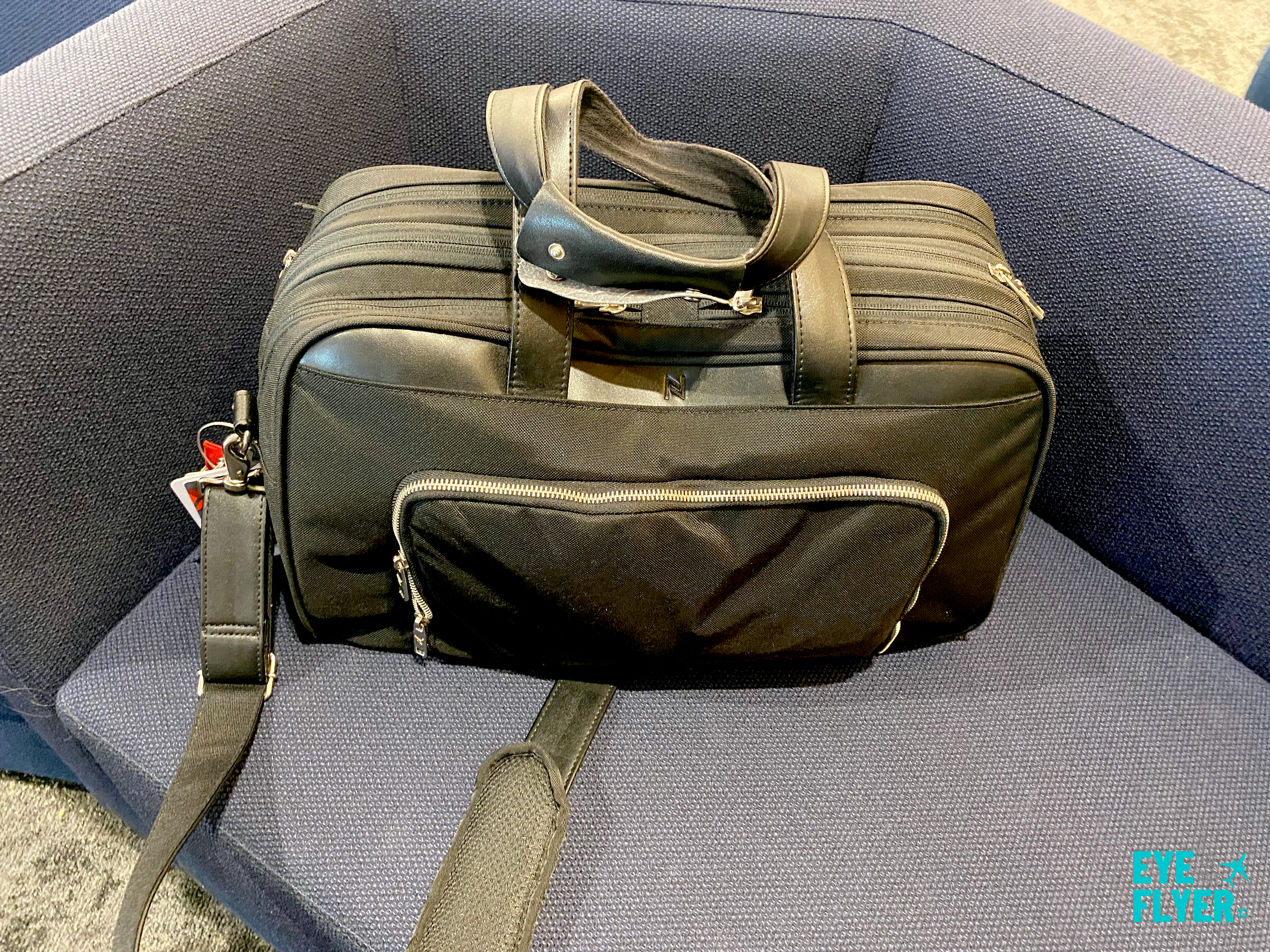 Unless I know I’ll be away from my seat for an extended period of time (changing clothes, maybe needing extra time in the restroom, etc.), I generally leave my Nomad Lane Bento Bag at my seat — but lock it. I also have AirTags in my bag that can help me track if it’s stolen or misplaced.