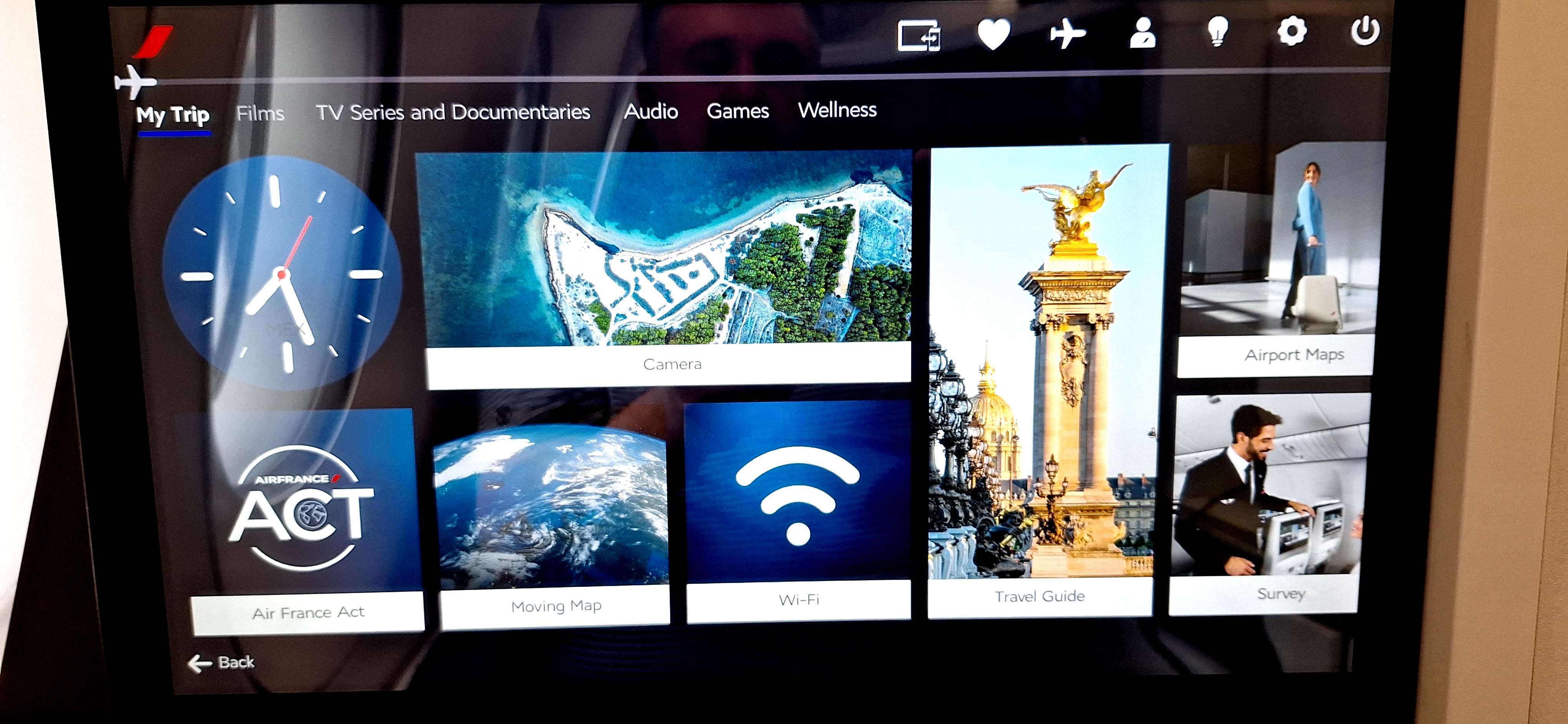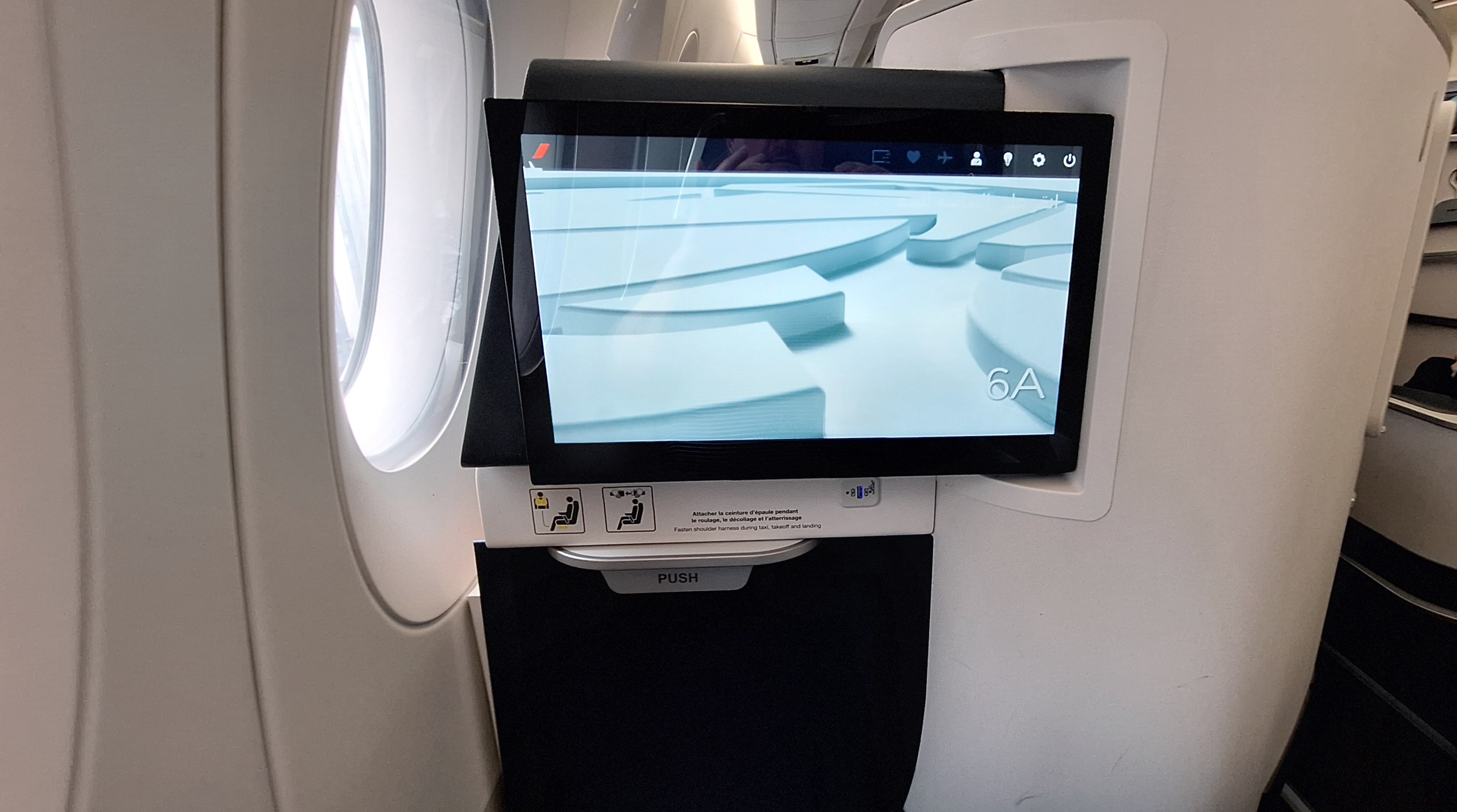 I very much appreciated the large and responsive video screen with a large selection of movies to watch.