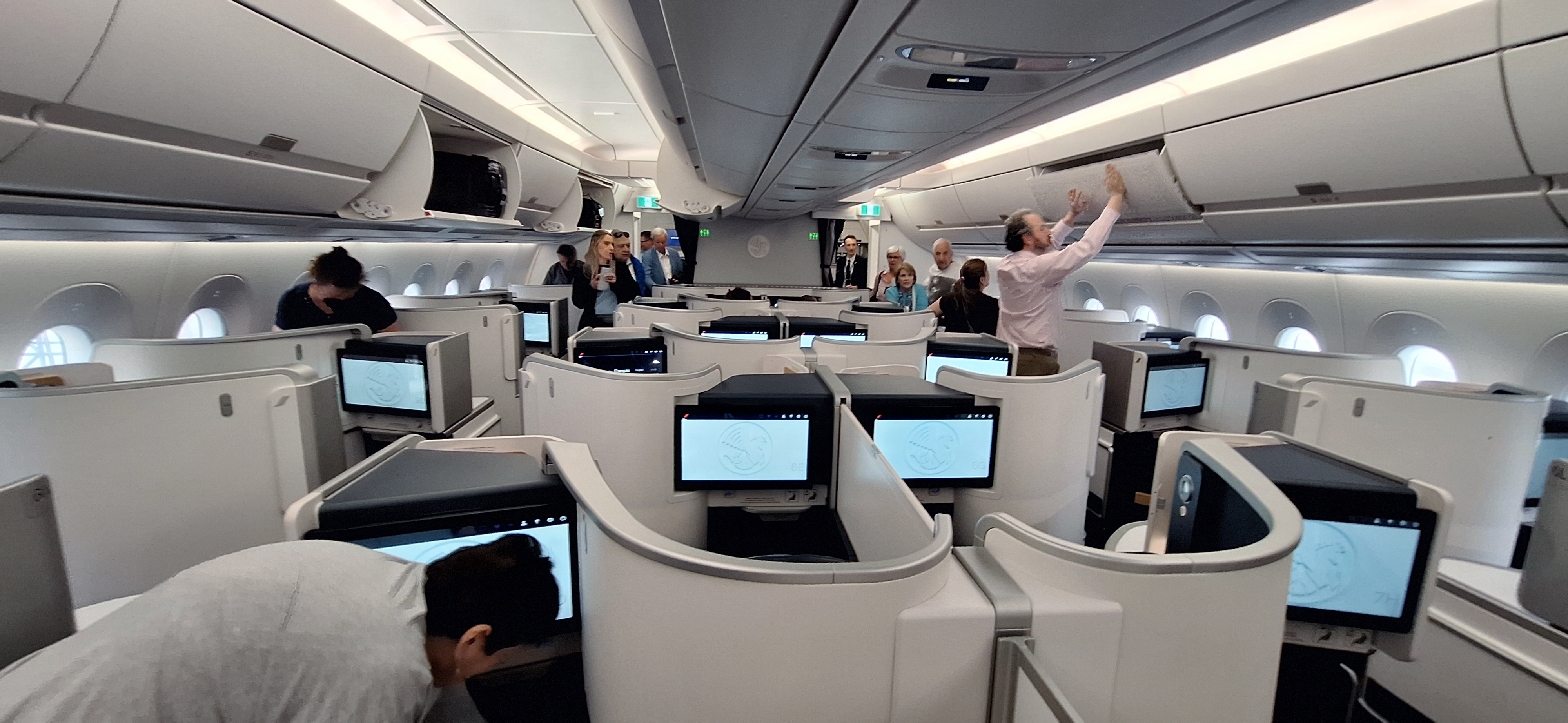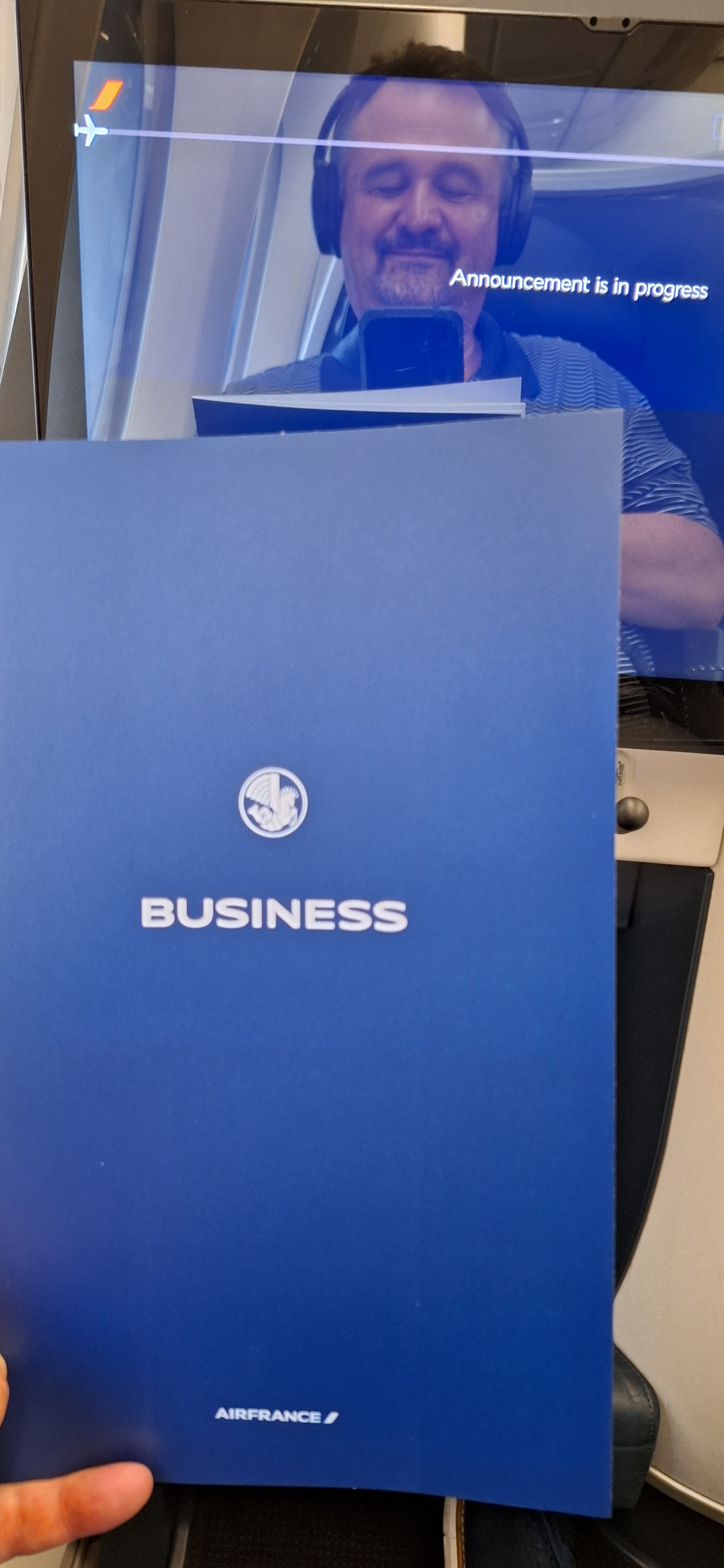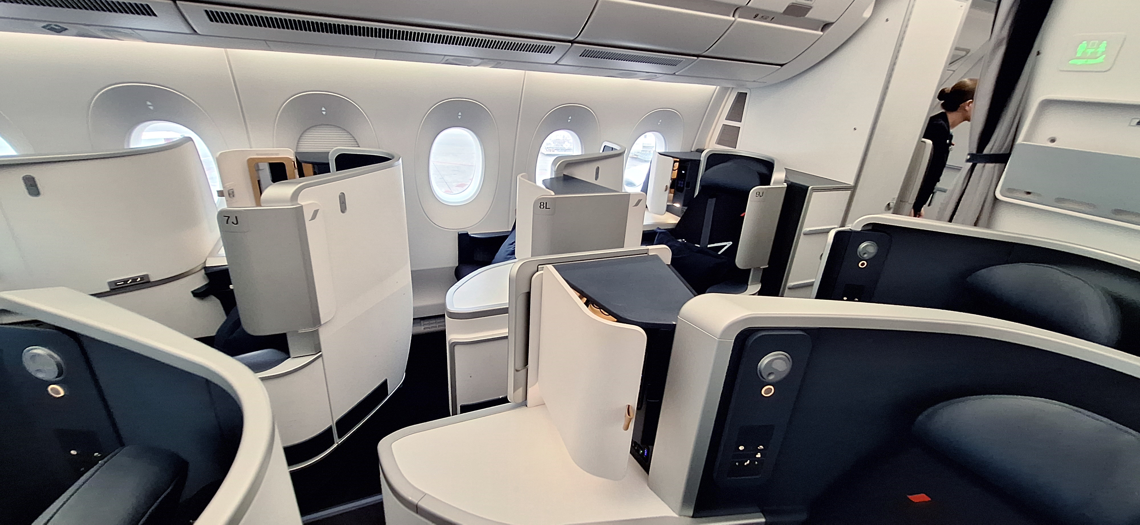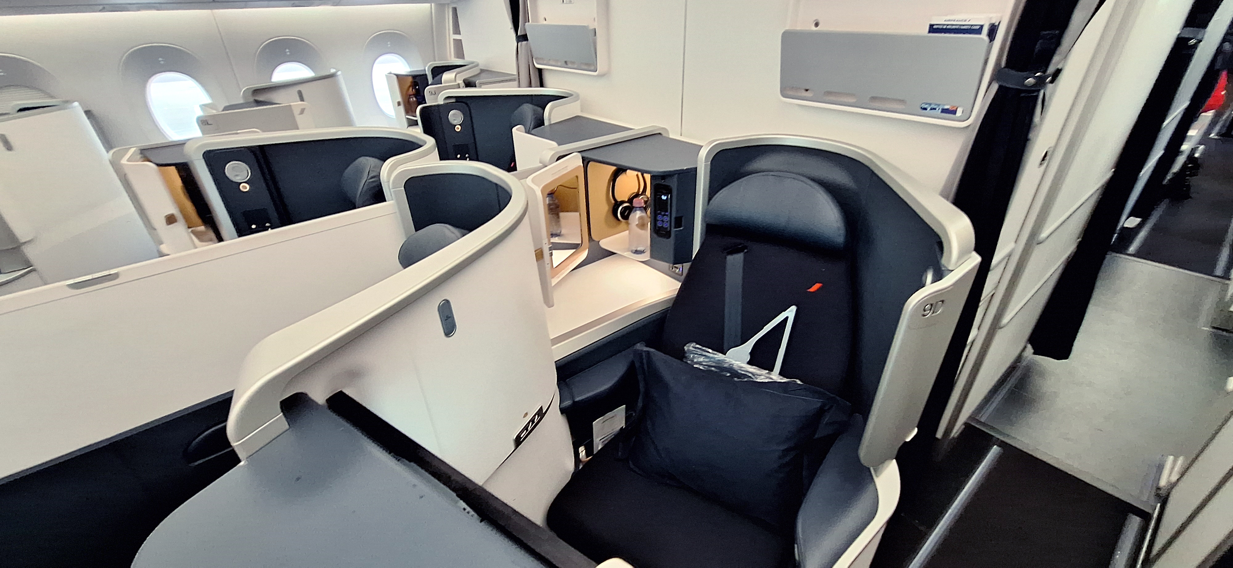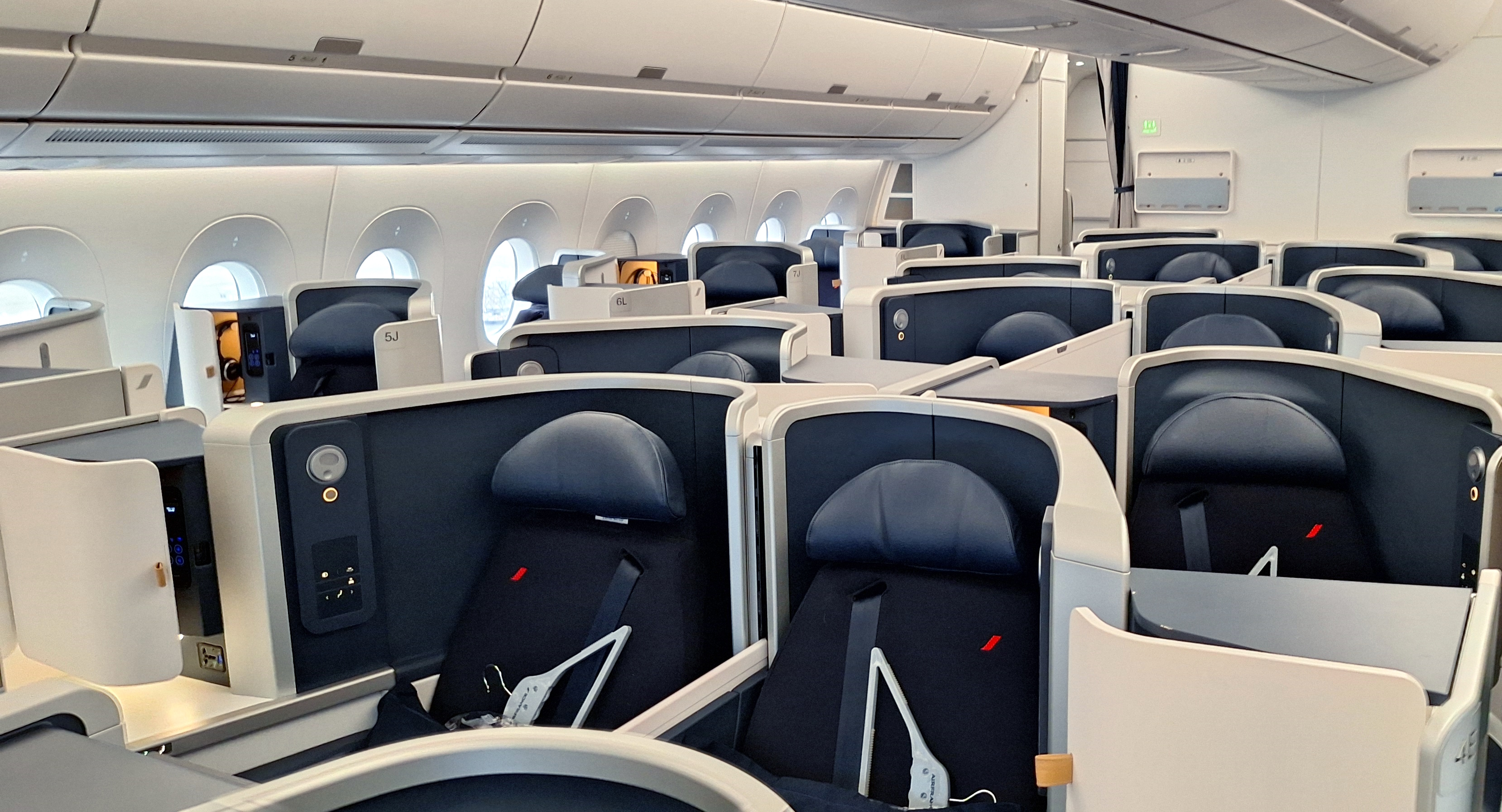 When I first booked this way back in May 2023, the route was set to have an Air France 777 that has the brand new business class seats with doors but it was a few months later switched to an A350 with what you see above.