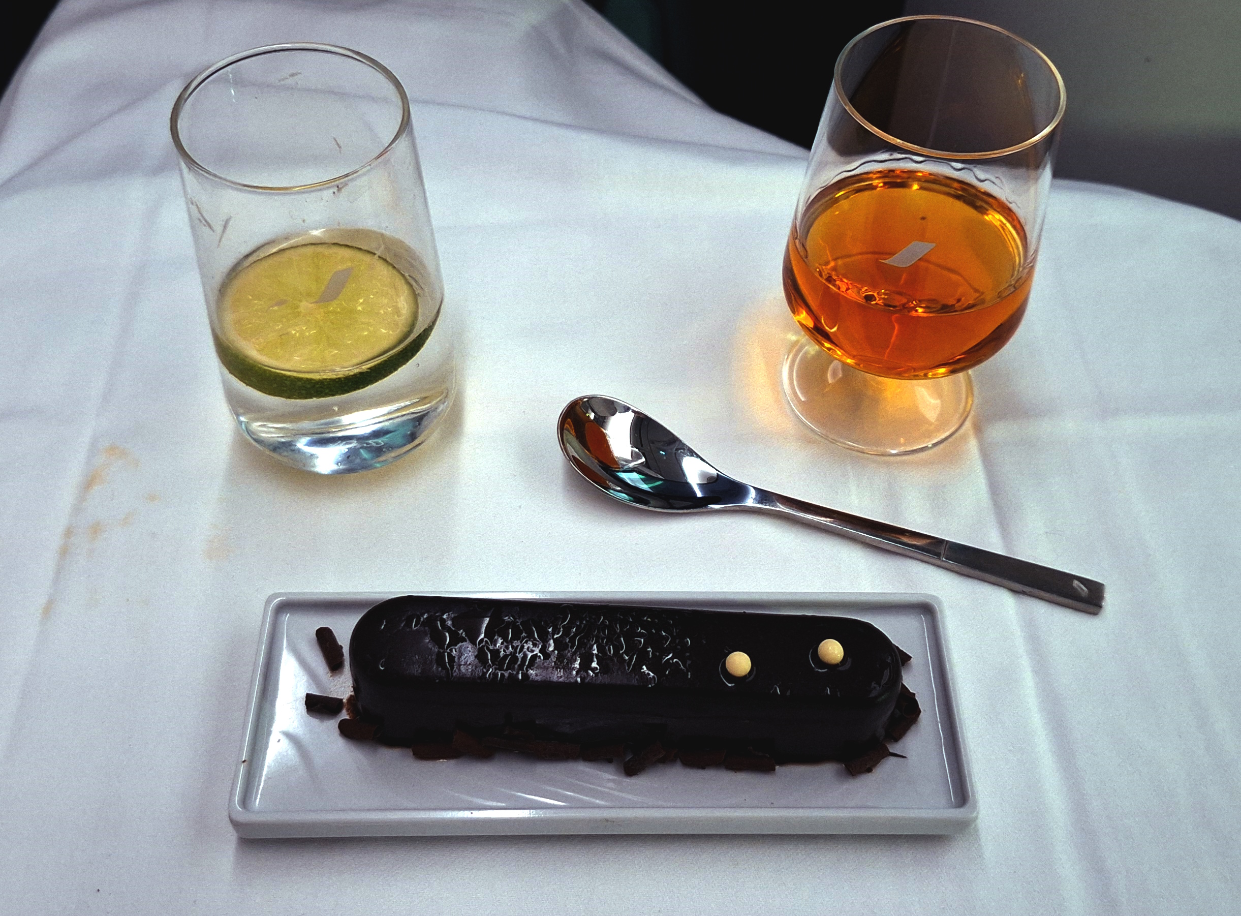 I will say the service was simply outstanding on this flight. The purser taking care of me was constantly up and down the aisle and quickly removing my service items when done and providing drink refills throughout the flight. I could not have been more pleased.