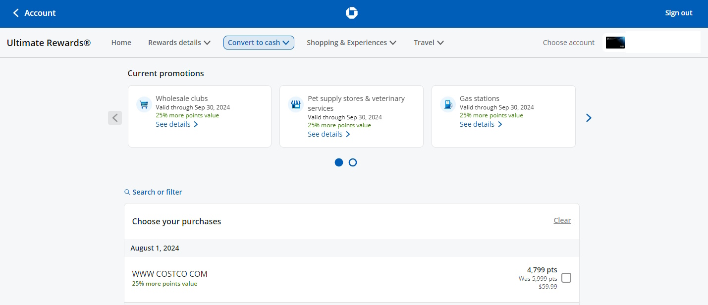 Currently warehouse stores, like Costco, are allowing those of us with Chase Sapphire Reserve® cards to “pay yourself back” for charges. While not getting 1.5 cents value like when booking travel and cruises and such I am still happy to knock out this buy at 1.25 cents.